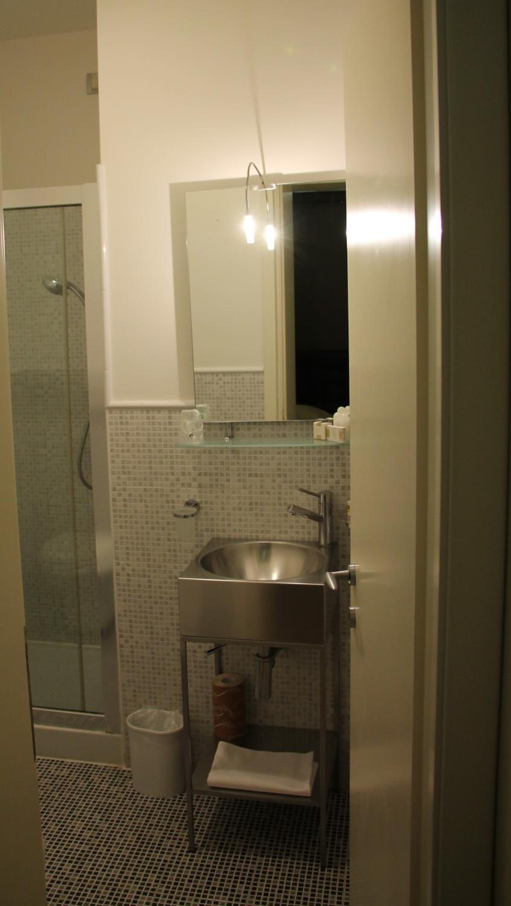 Stanza troppo piccola e buia, quasi uno sgabuzzino, finestra affacciata su un interno molto degradato, scarsità di asciugamani ( un solo asciugamano per il viso e le mani per due persone) e di sapone, cuscini scomodi. Interni comuni claustrofobici.