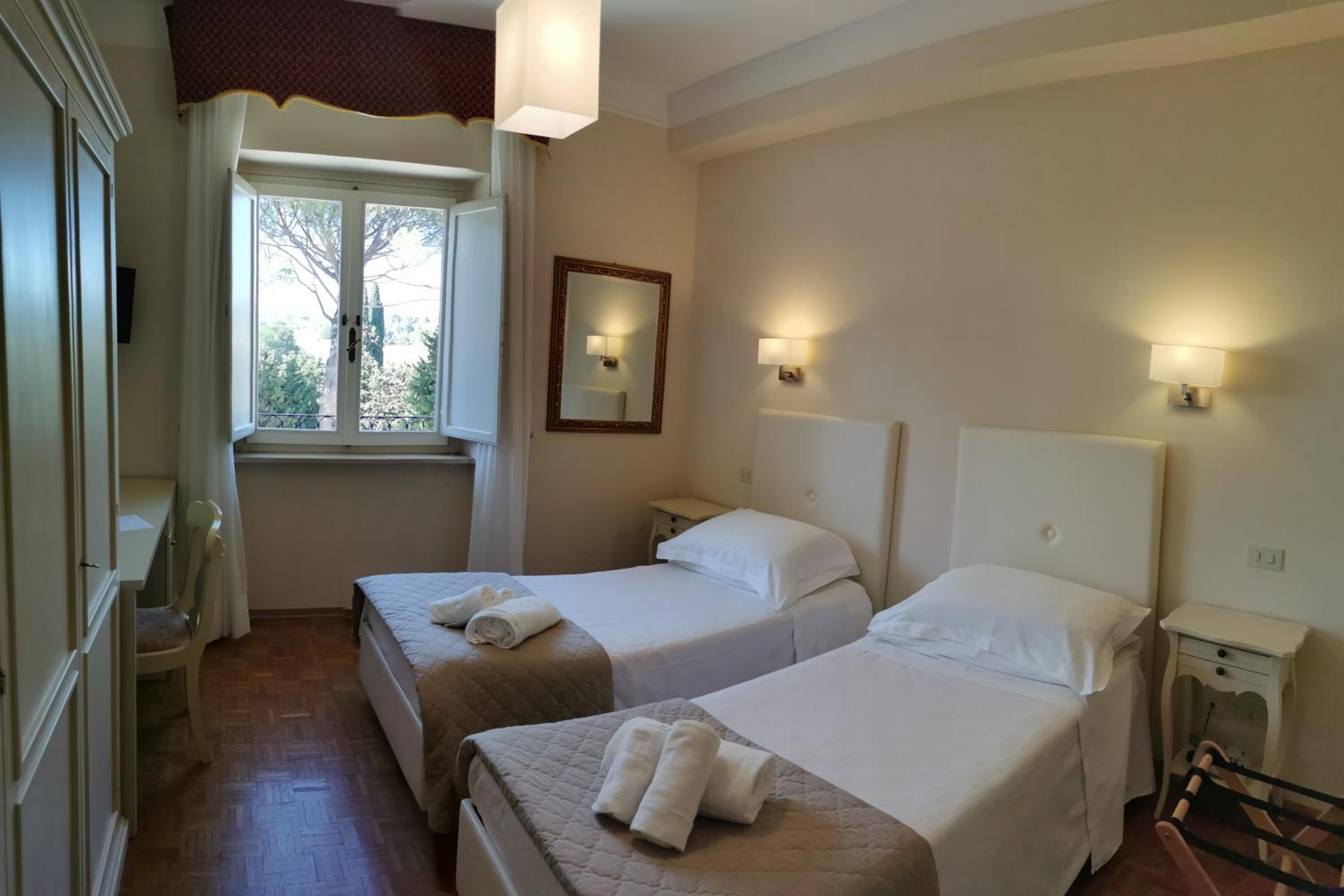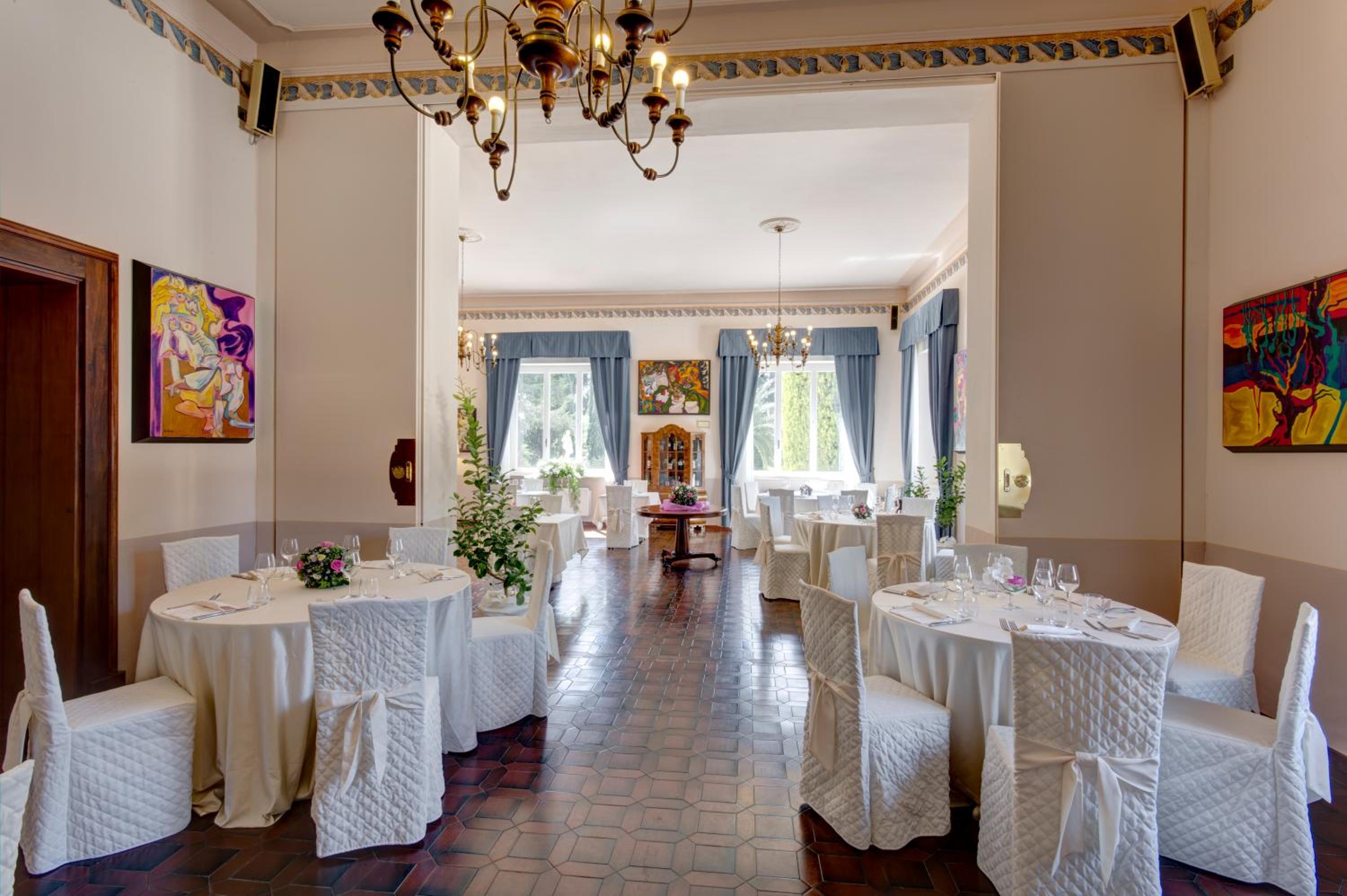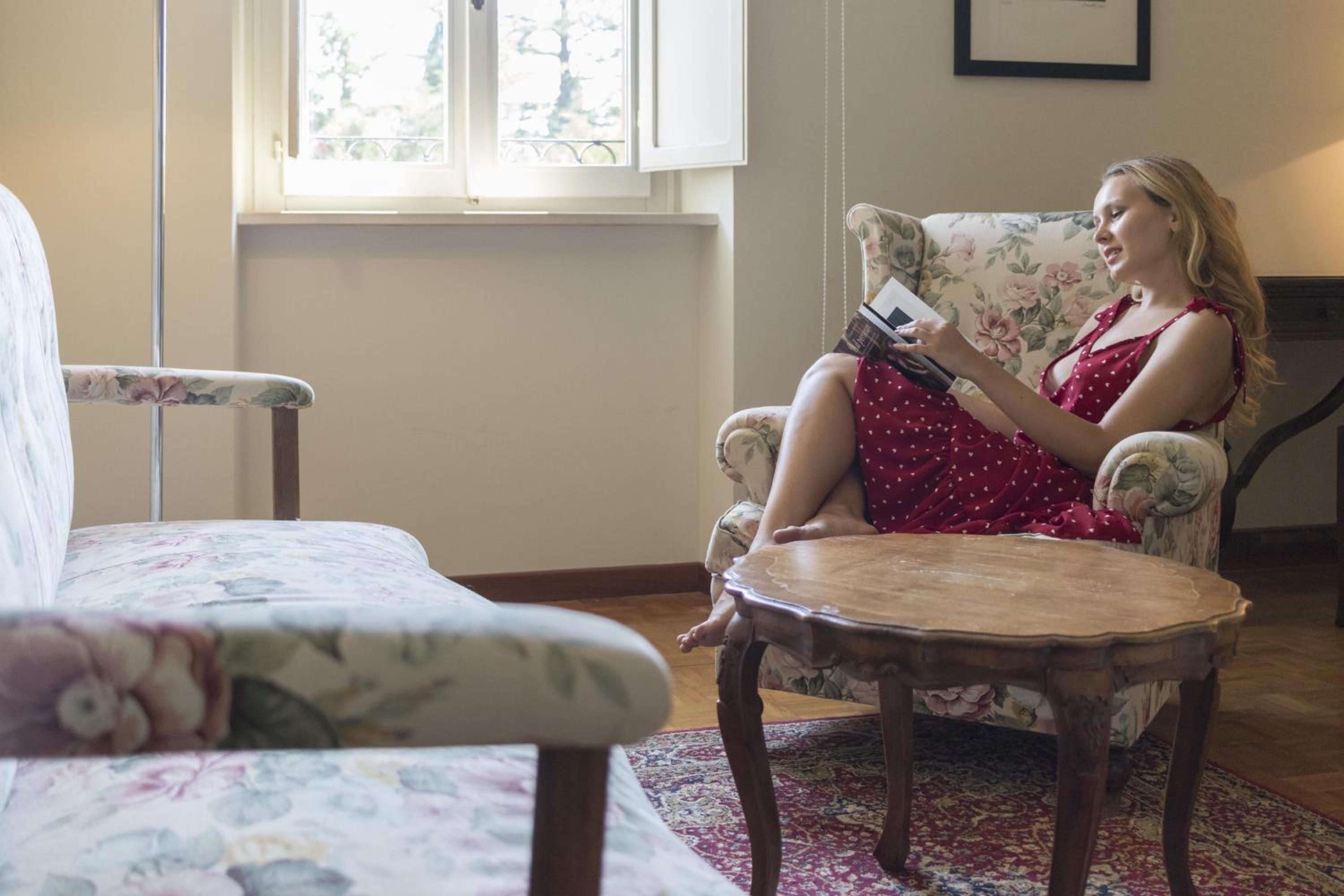 La villa è antica e caratteristica , piena di dettagli di una volta , molto bella. Il parco è davvero bello, pieno di alberi e curati e ci sono diverse zone relax. Il vecchio laghetto adibito a piscina è adorabile. Le camere sono moderne come tecnologia ed anche l'ascensore pur mantenendo un tocco d'epoca. La colazione dolce è molto varia e fatta di prodotti molto buoni. Gli orari della colazione sono ampi. Lo spazio all'aperto della colazione è molto bello è rilassante, all'interno del parco della villa. Le poltrone e sdraio nel parco e nella zona piscina sono comode e messe nei punti giusti. C'è anche una mini cappella nel parco della villa. La tv funziona molto bene, gli ambienti sono puliti e luminosi. C'è la spa con la possibilità di massaggi. Ogni necessità viene risolta in fretta.