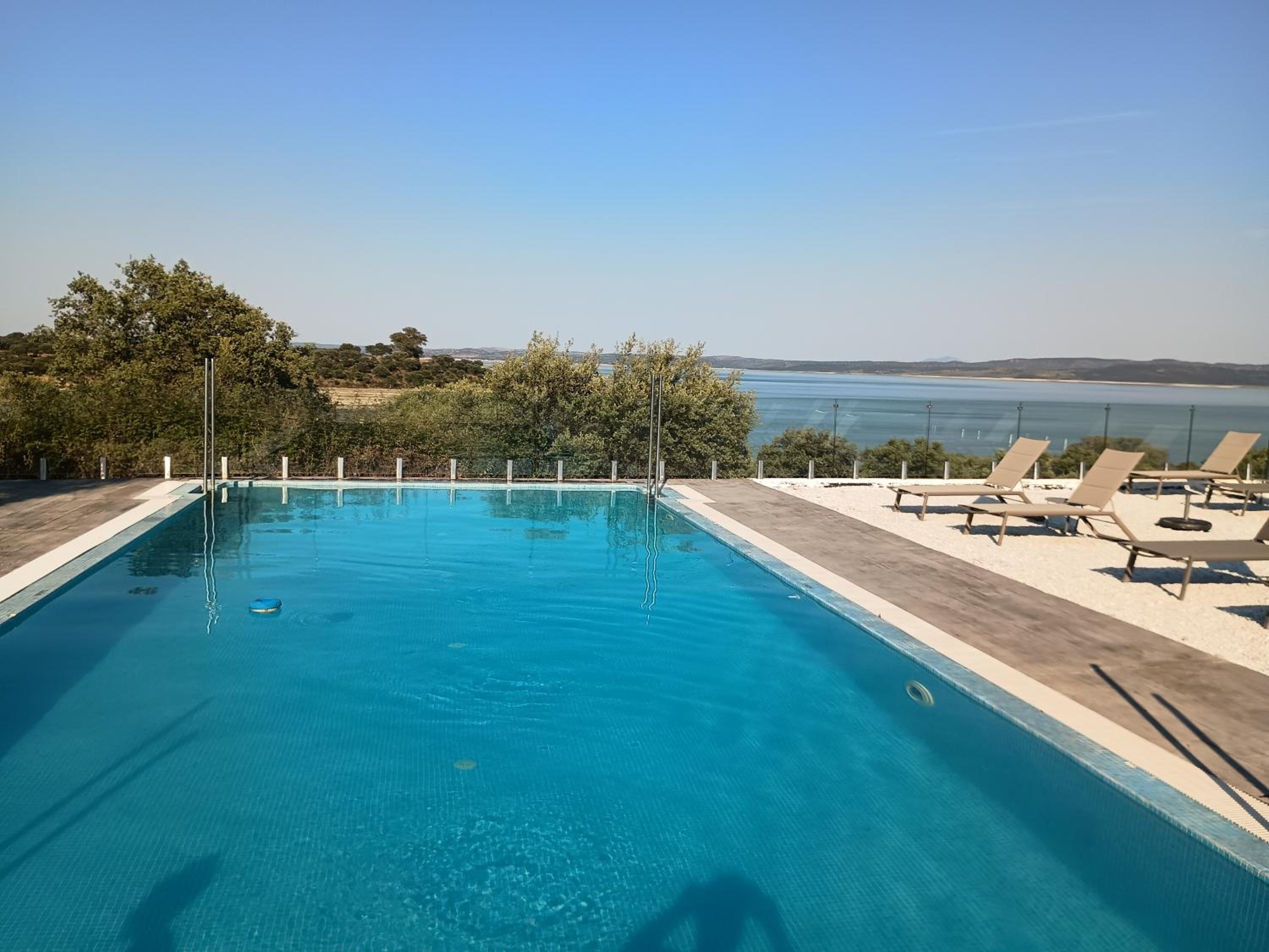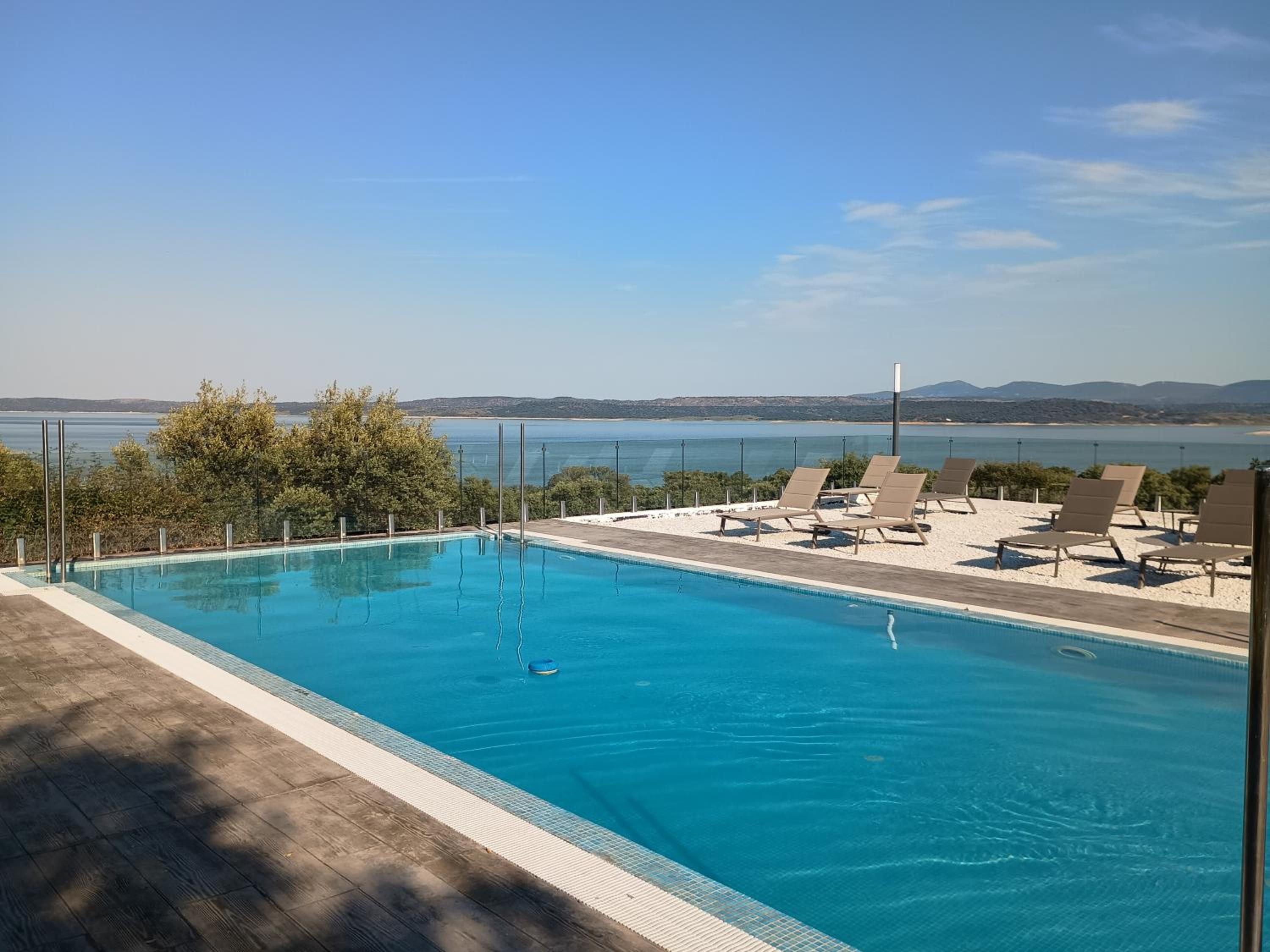 El lugar en el que está es ideal para ir a descansar unos días y el personal es muy amable. La piscina es genial y las vistas al pantano muy buenas, puedes ver a los ciervos beber agua en la orilla.