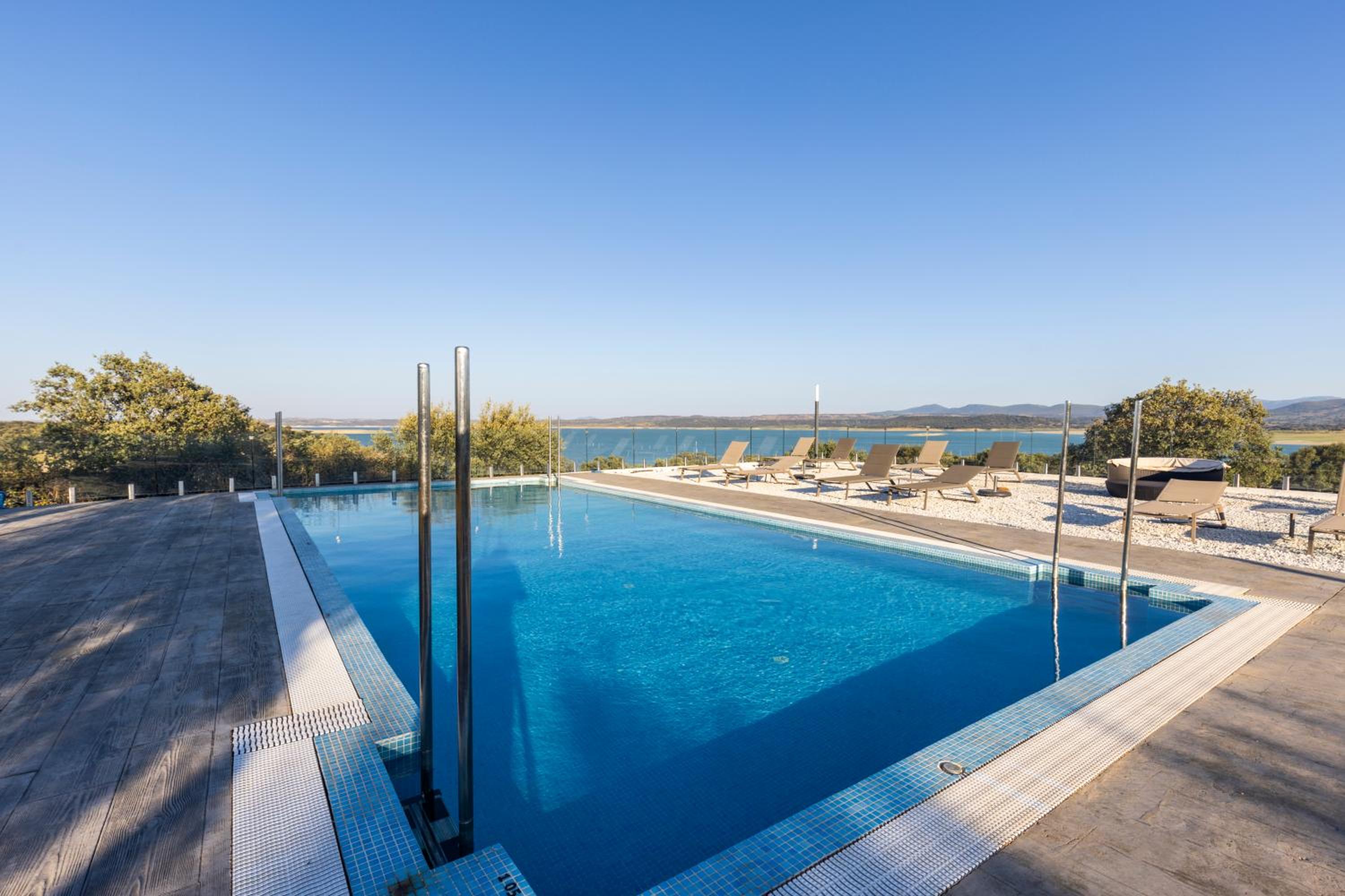 Fácil aparcamiento, muy cerca de la entrada. Las vistas al embalse de Valdecañas, son espectaculares. Piscina exterior con hamacas y vistas al pantano. El silencio y la paz que se respira hacen la estancia muy agradable. Salones cómodos y habitaciones muy acogedoras, con agua mineral de bienvenida. Muy buen desayuno y muy buena comida. El personal es muy cordial, se esfuerza en dar un trato personalizado y hacen que te sientas más como un huésped que como un cliente.