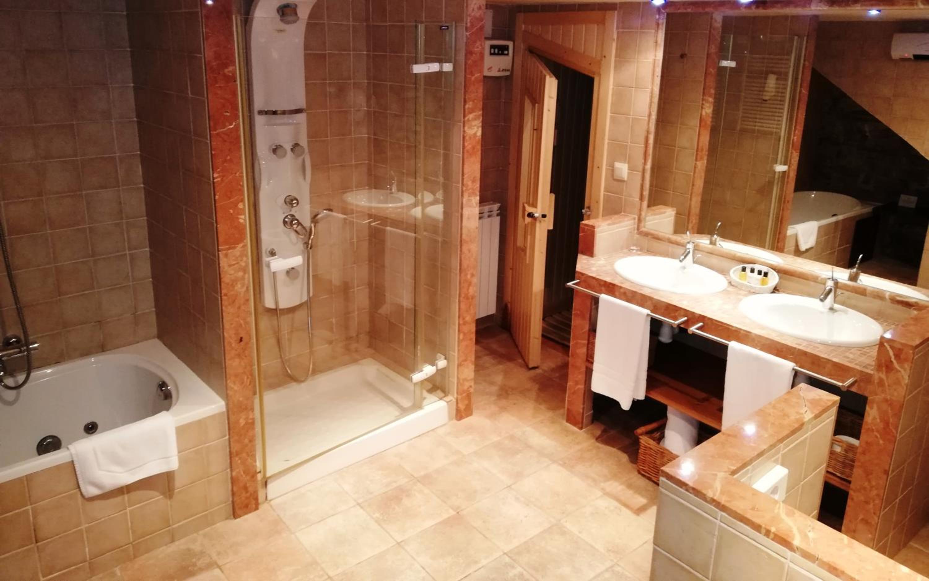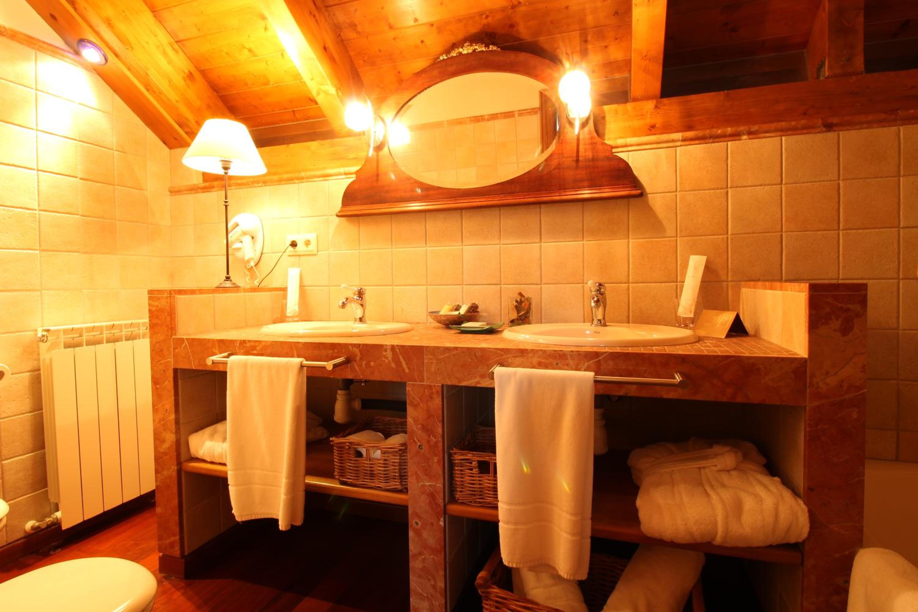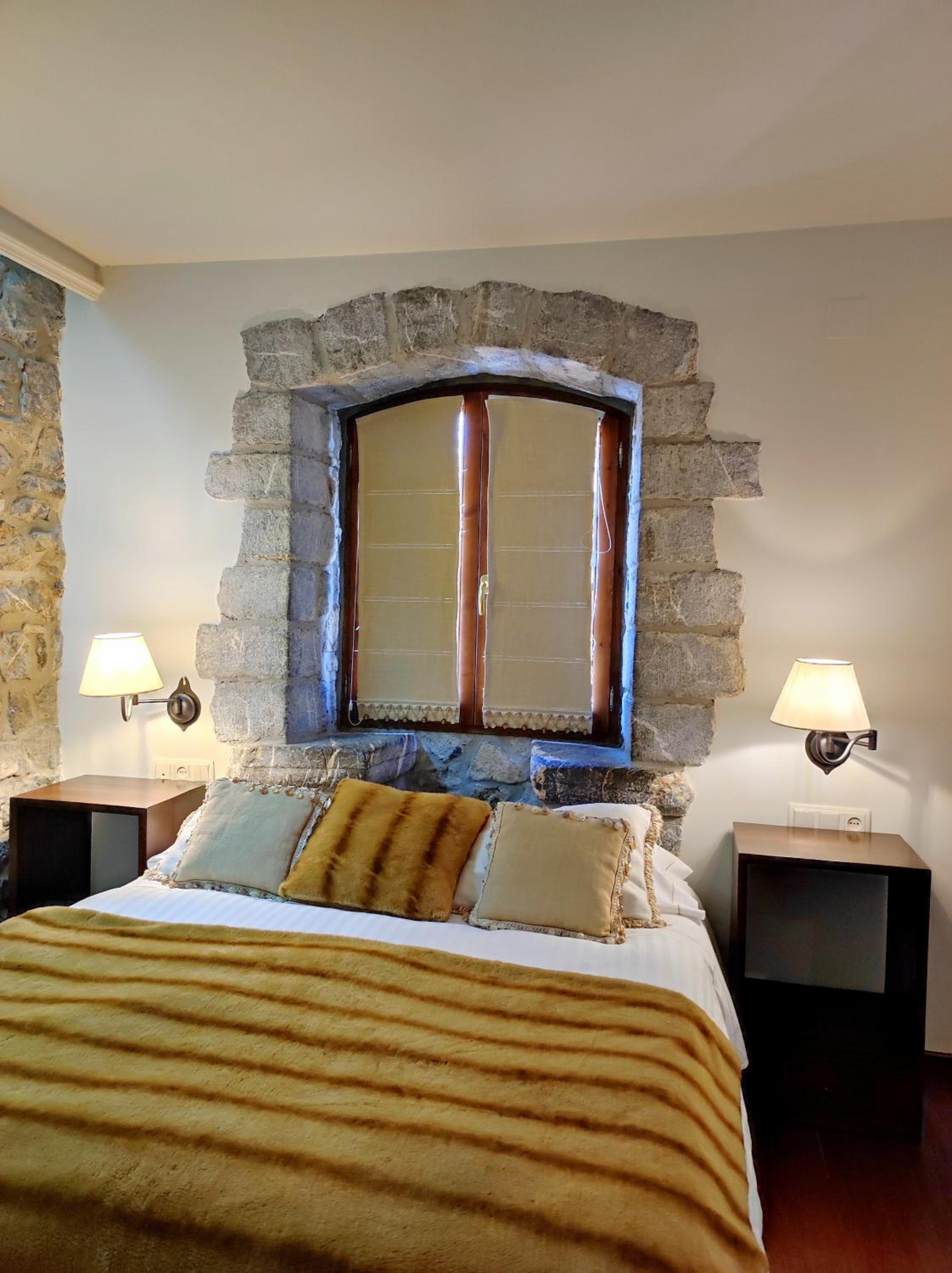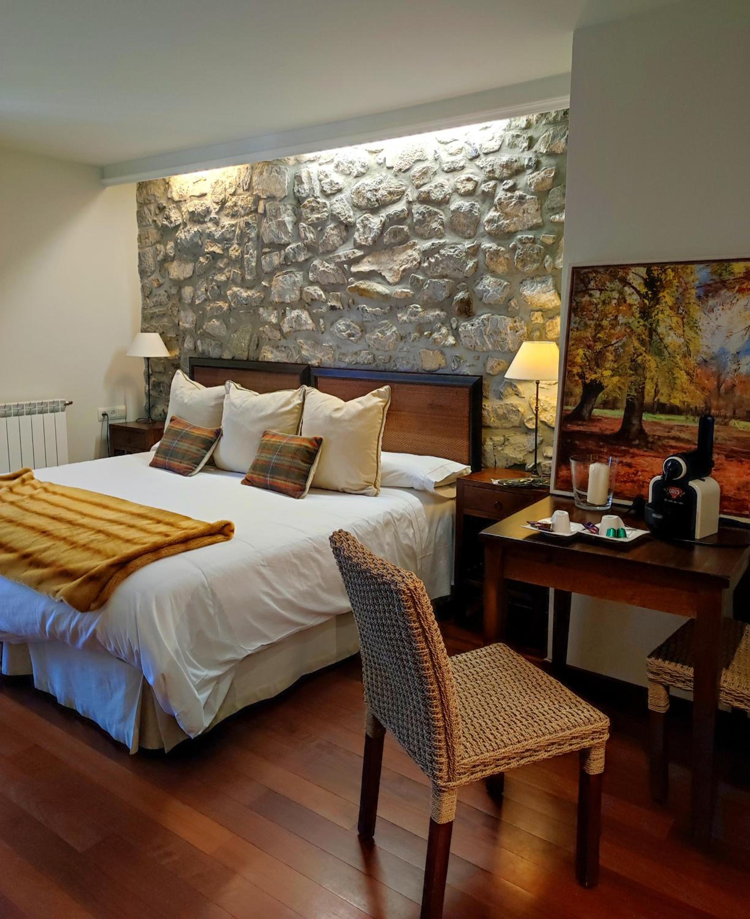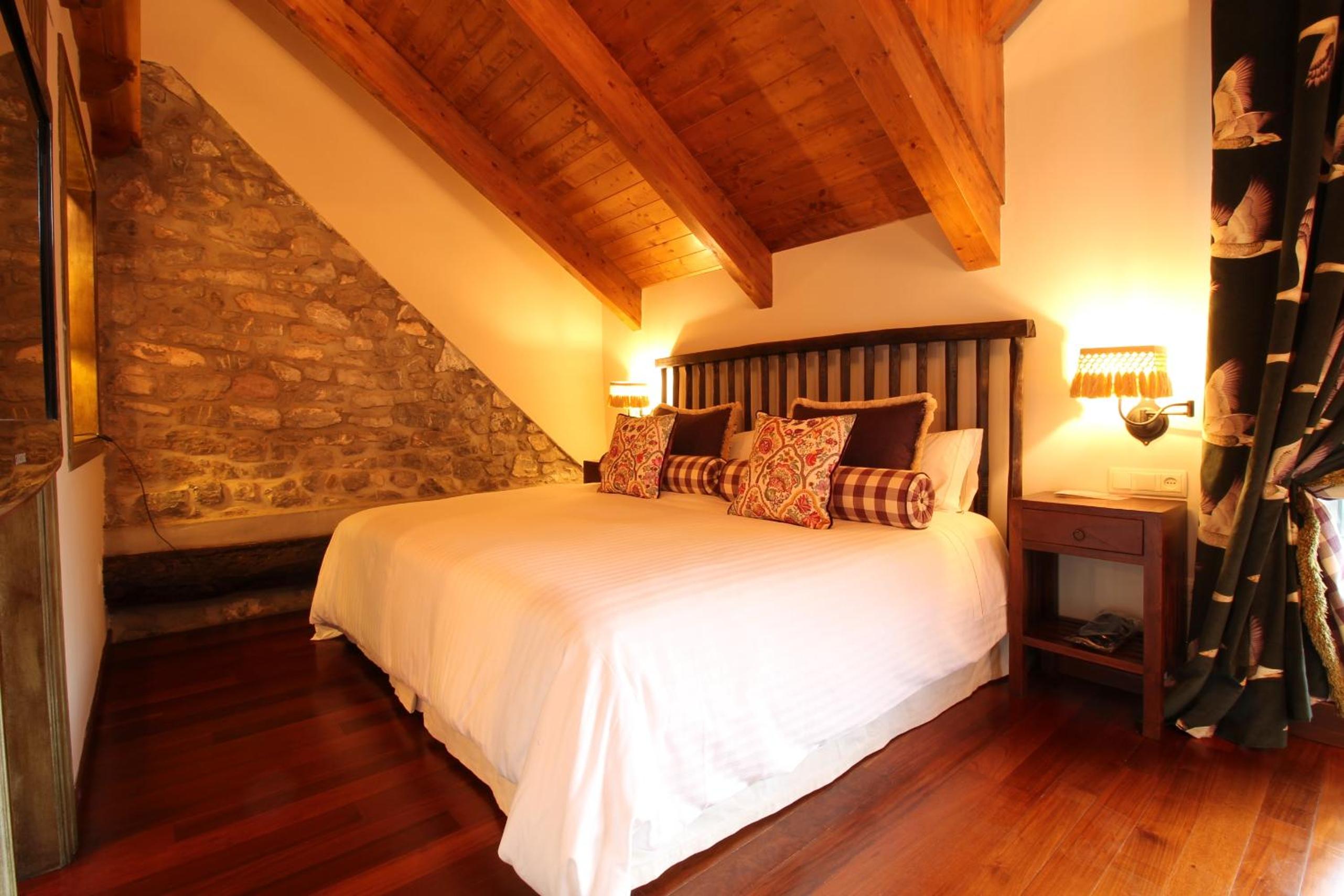 Experience the perfect blend of traditional mountain aesthetics and contemporary design at Abadia del Pirineo. The cozy rooms feature delightful stone walls, wooden ceilings, and ample natural light, creating a warm and inviting atmosphere.