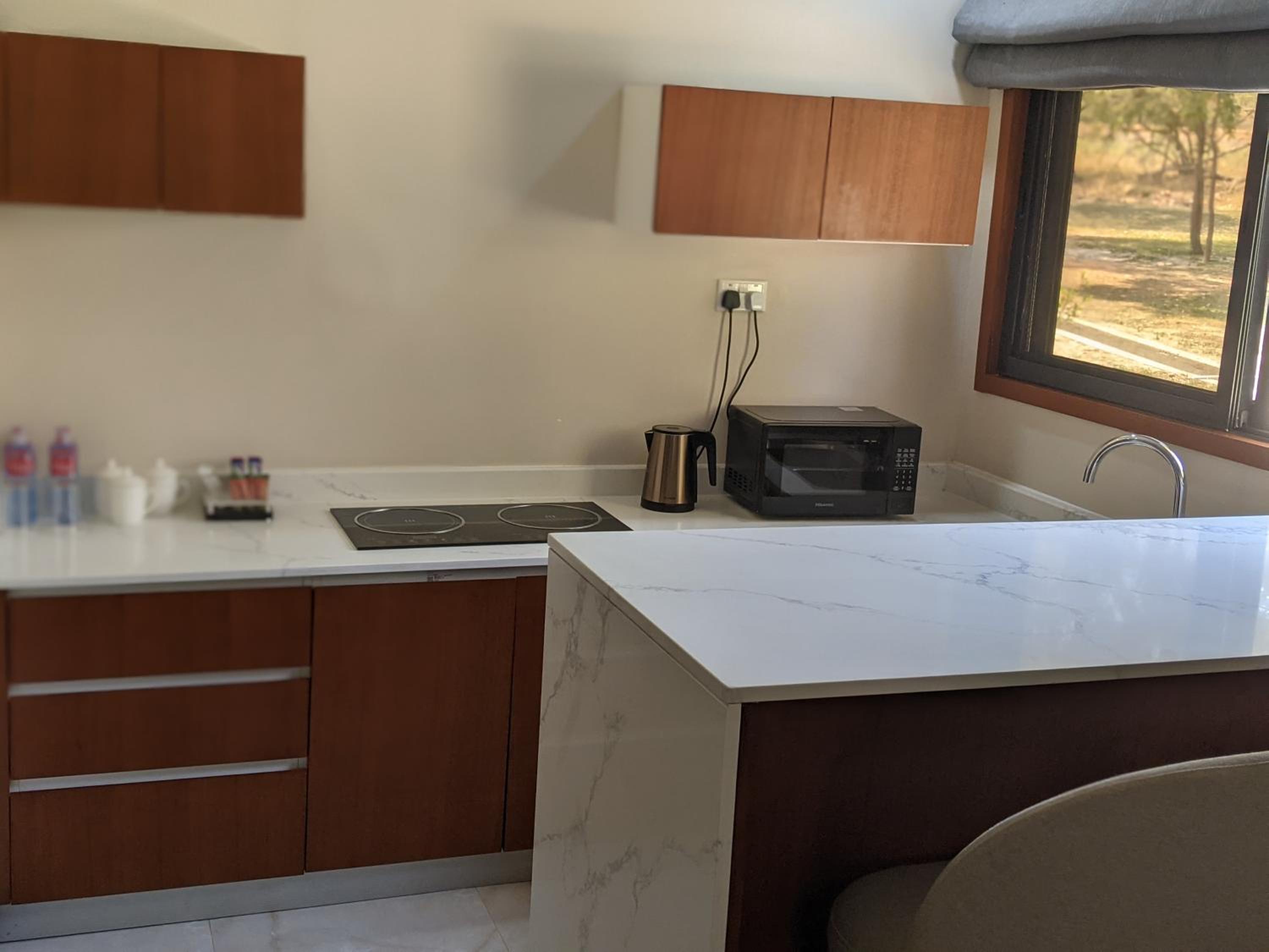 Experience 5-star comfort at Baluba Game Resort, with spacious rooms featuring elegant decor, free WiFi, and impeccable room service. Each room is equipped with a desk, TV, and a private bathroom with modern amenities.