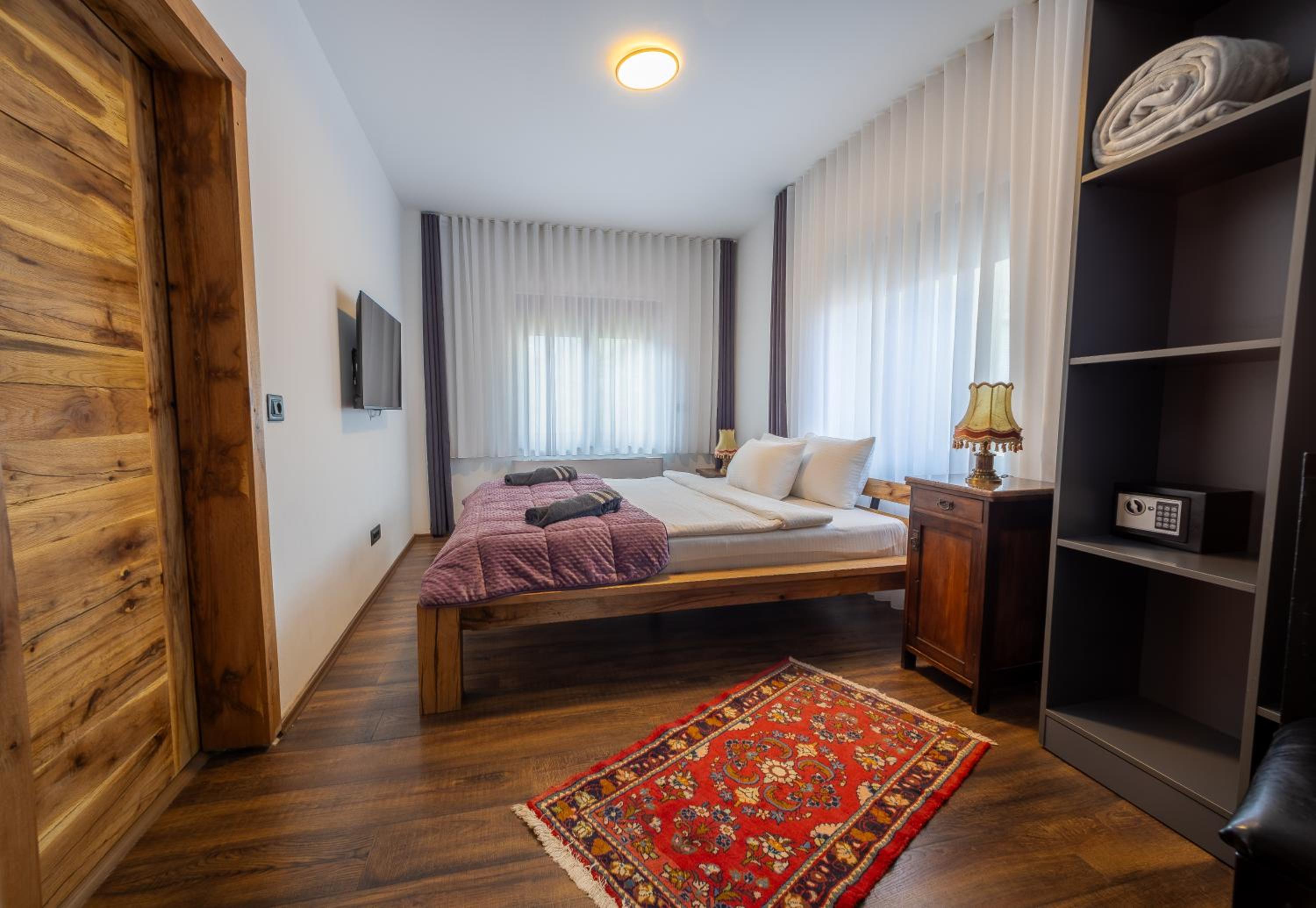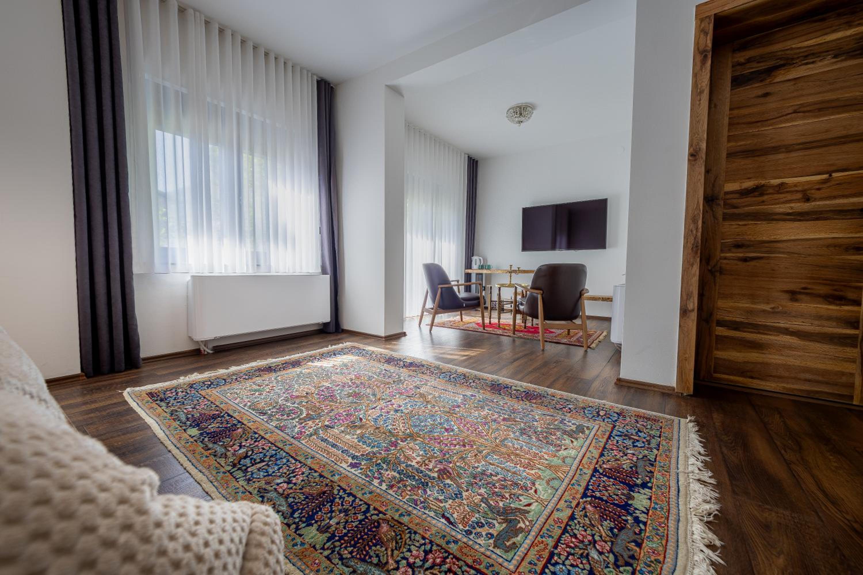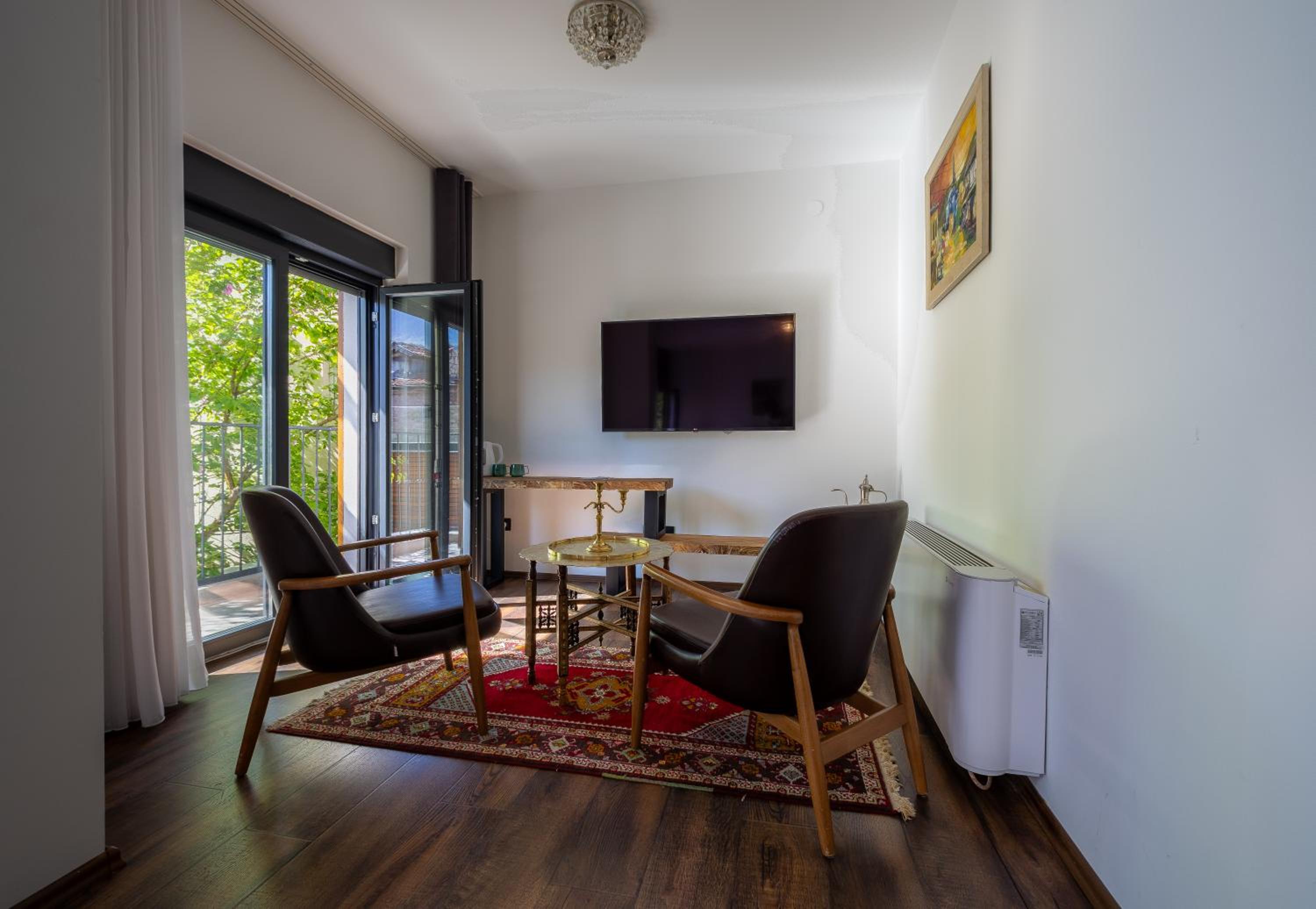 The room is beautifully decorated and has a wonderful vibe. It’s spacious, featuring a charming French balcony. The room is spotless and comes with all the necessary amenities. The owners are friendly, and the location within Pec is simply 🤩