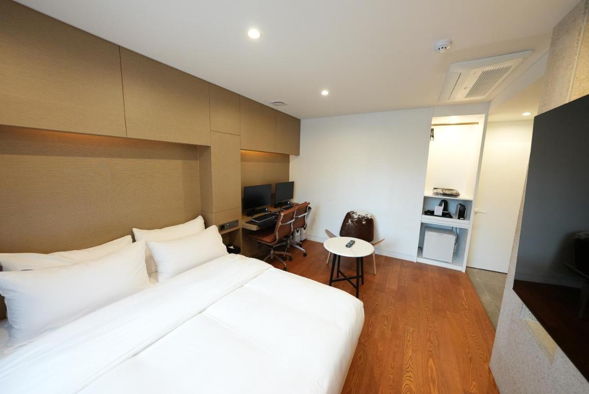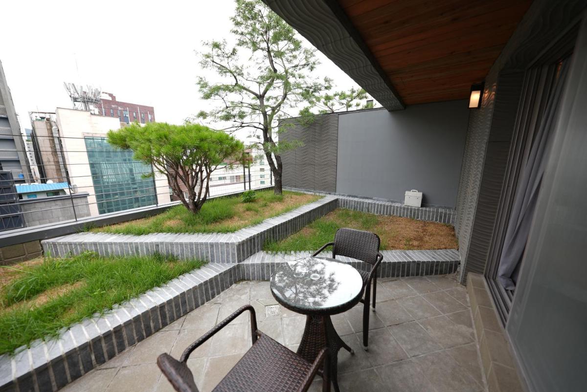 Explore the vibrant neighborhoods of Insadong and the majestic Geyongbokgung Palace, located a stone's throw away from the hotel. With Myeongdong and Namdaemun Market a short distance of 2 km, immerse yourself in the bustling city life of Seoul. Additionally, Gimpo International Airport is easily accessible within a 45-minute drive.