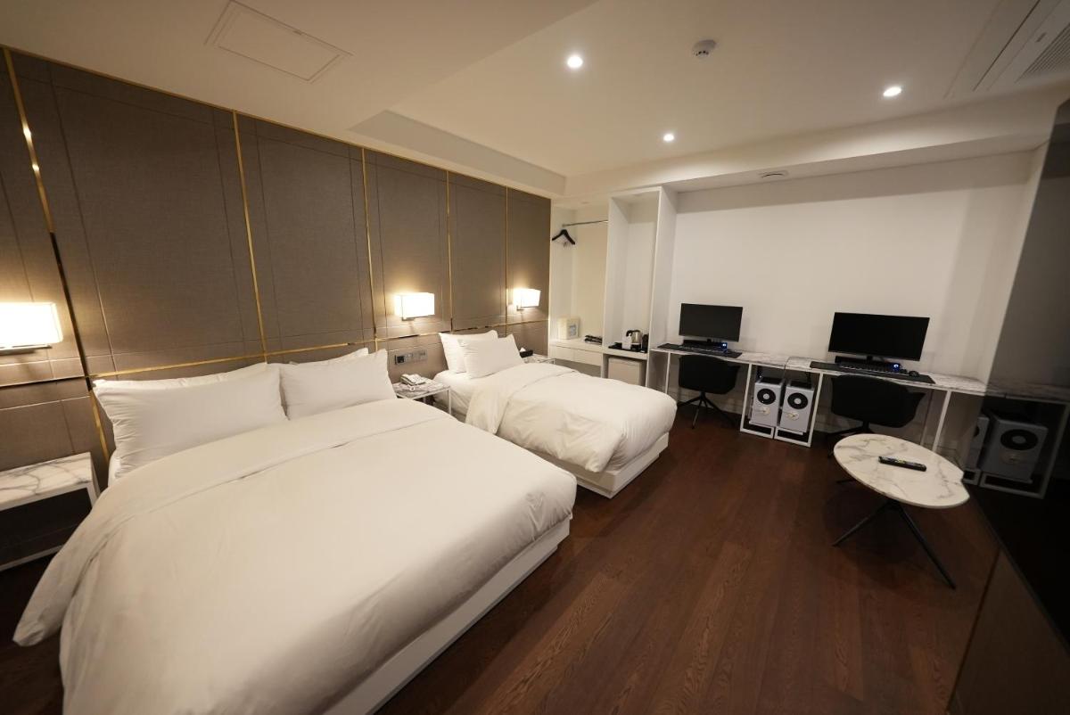 Experience luxury at its finest at Amare Hotel, just steps away from Jongno 3-Ga Subway Station. Indulge in spacious rooms featuring spa bathtubs, flat-screen TVs, and complimentary internet access on 2 PCs. The modern royal style decor and plush furnishings create a lavish retreat for guests to unwind in comfort.