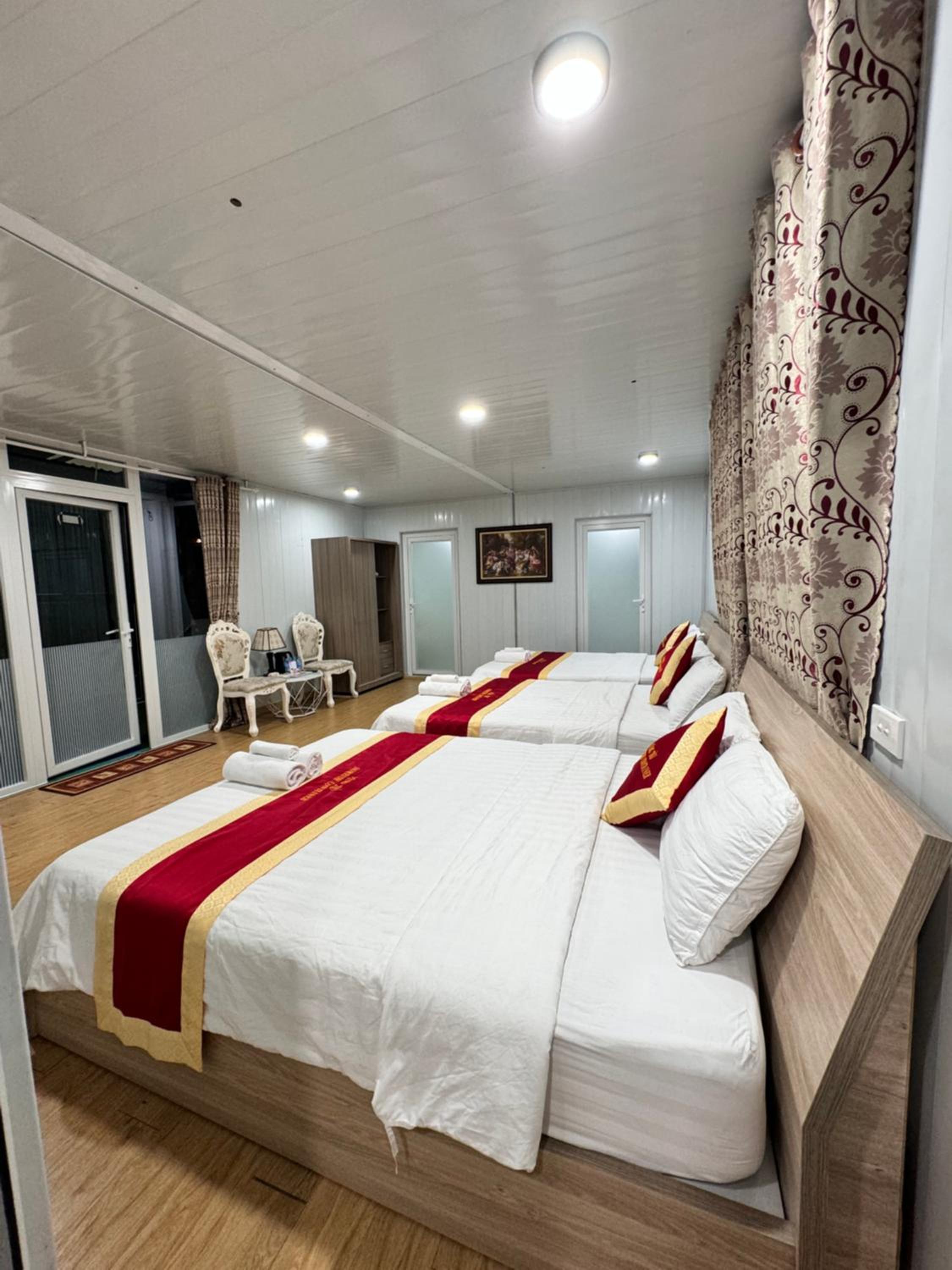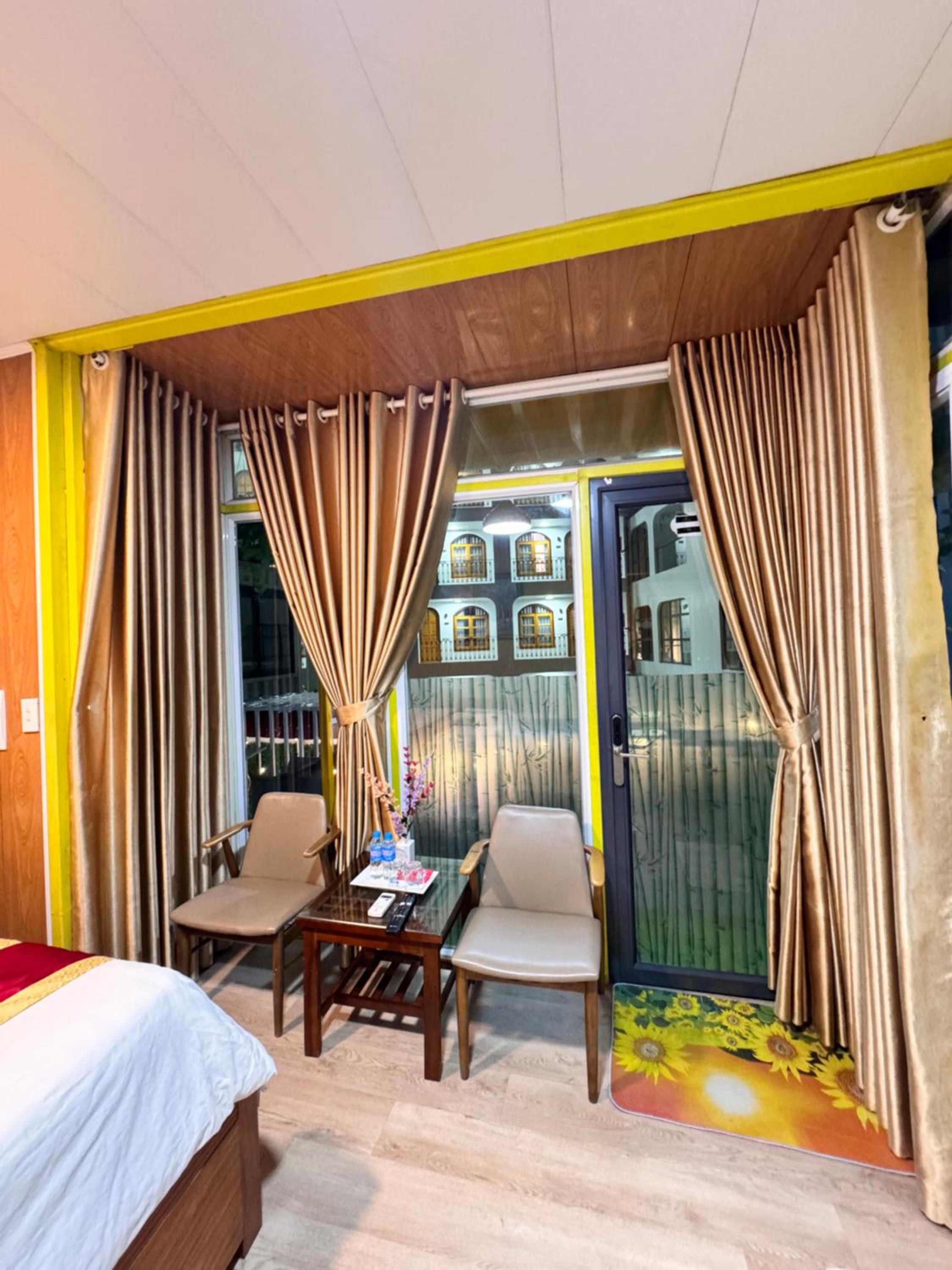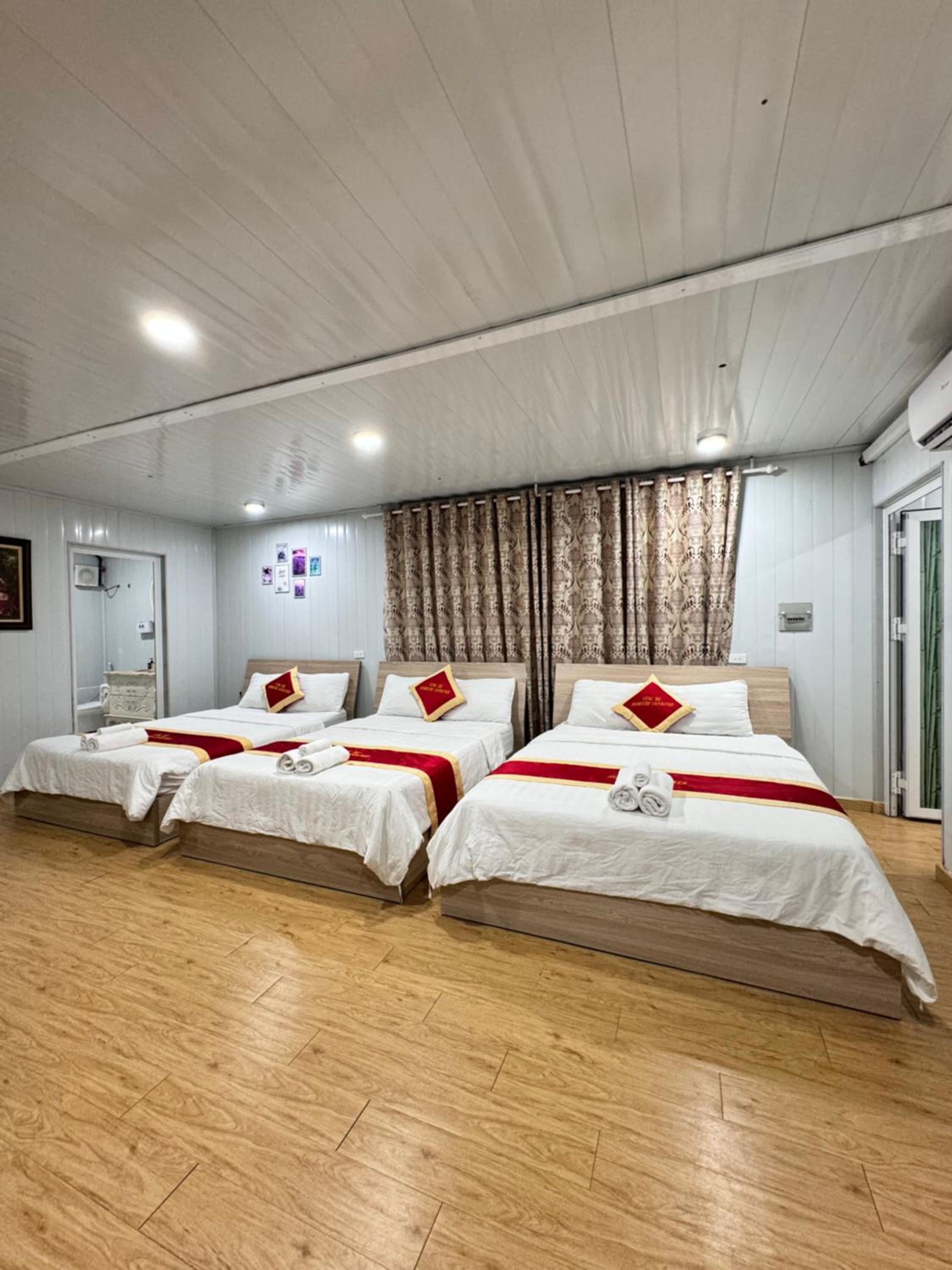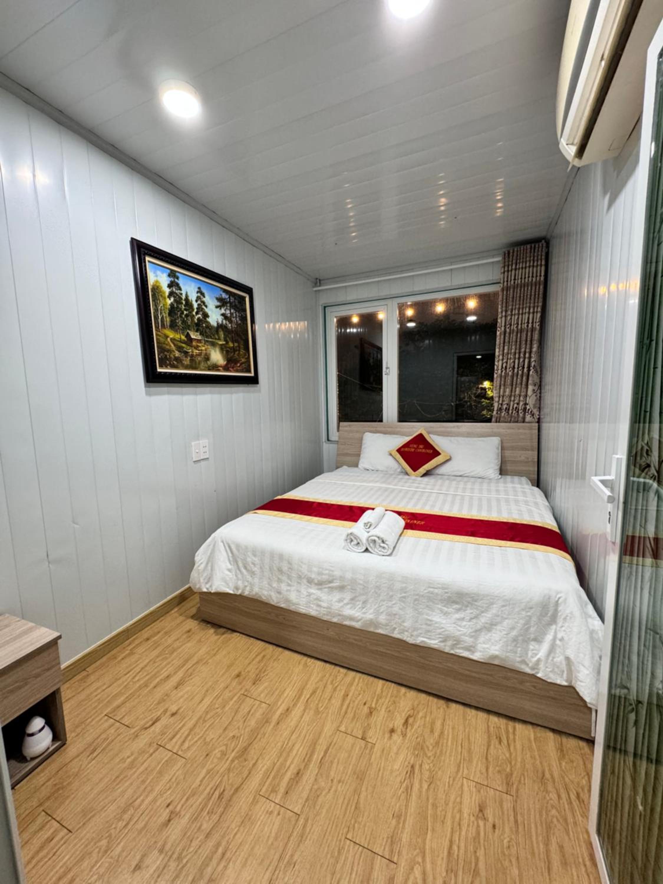 Chắc có lẽ do phòng làm từ thùng container nên đôi khi sàn phòng hơi gập ghềnh, nhưng không ảnh hưởng gì đến sinh hoạt trong phòng.
