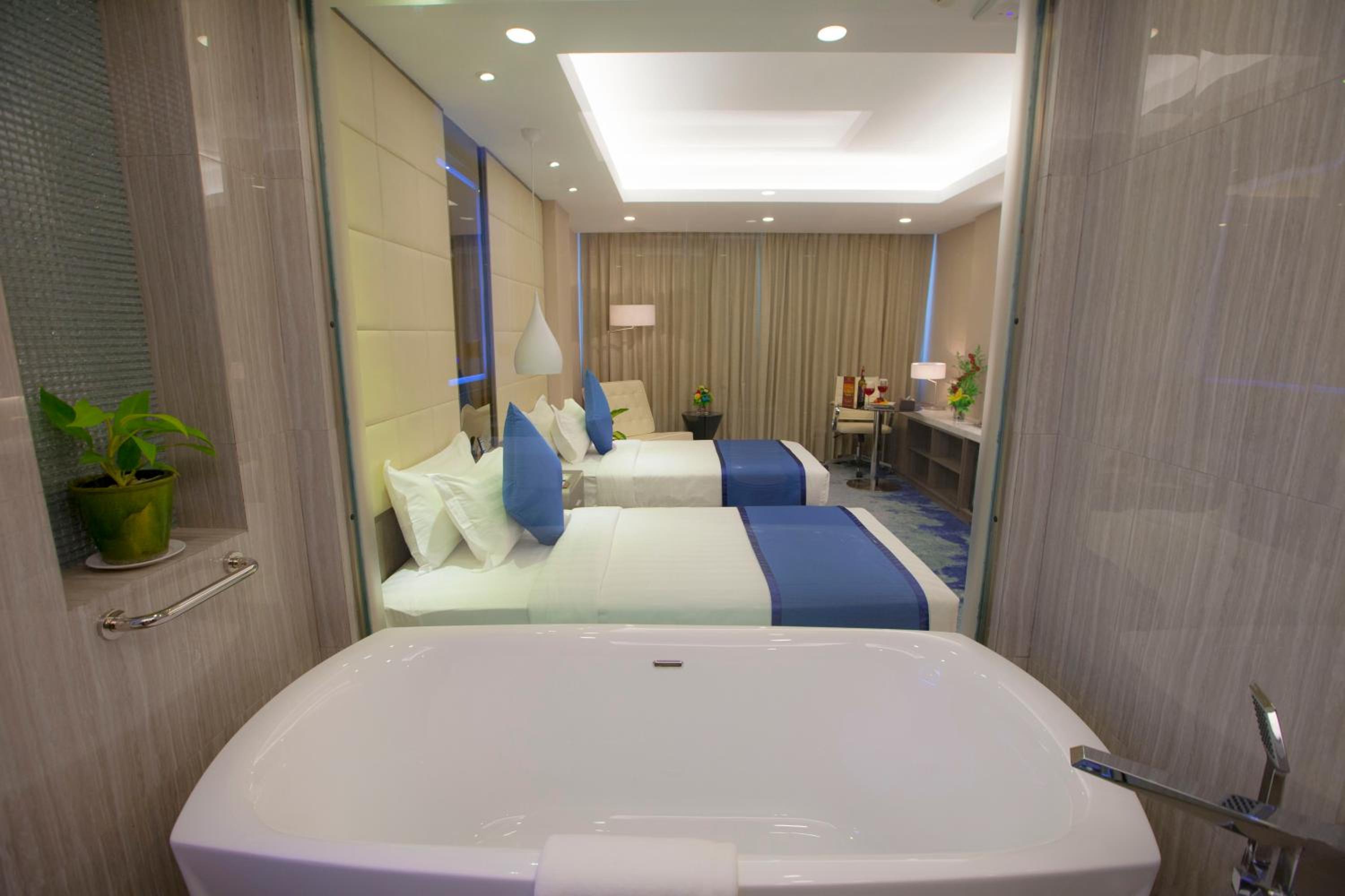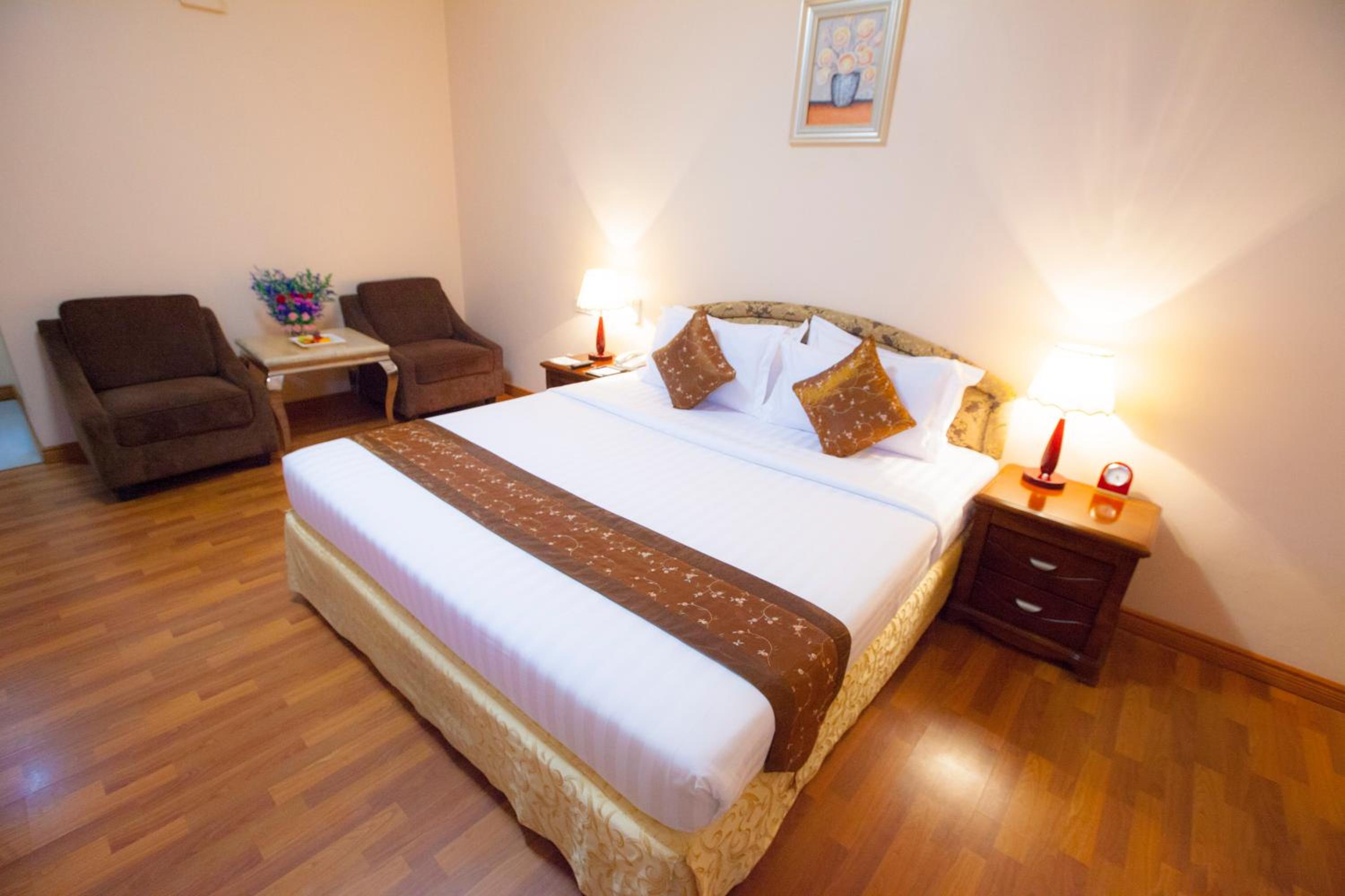 Experience comfort and style at Grand Palace Hotel in Yangon. Each air-conditioned room is equipped with modern amenities including a flat-screen TV, electric kettle, and fridge. Relax in the well-appointed bathroom with a luxurious bath and shower.
