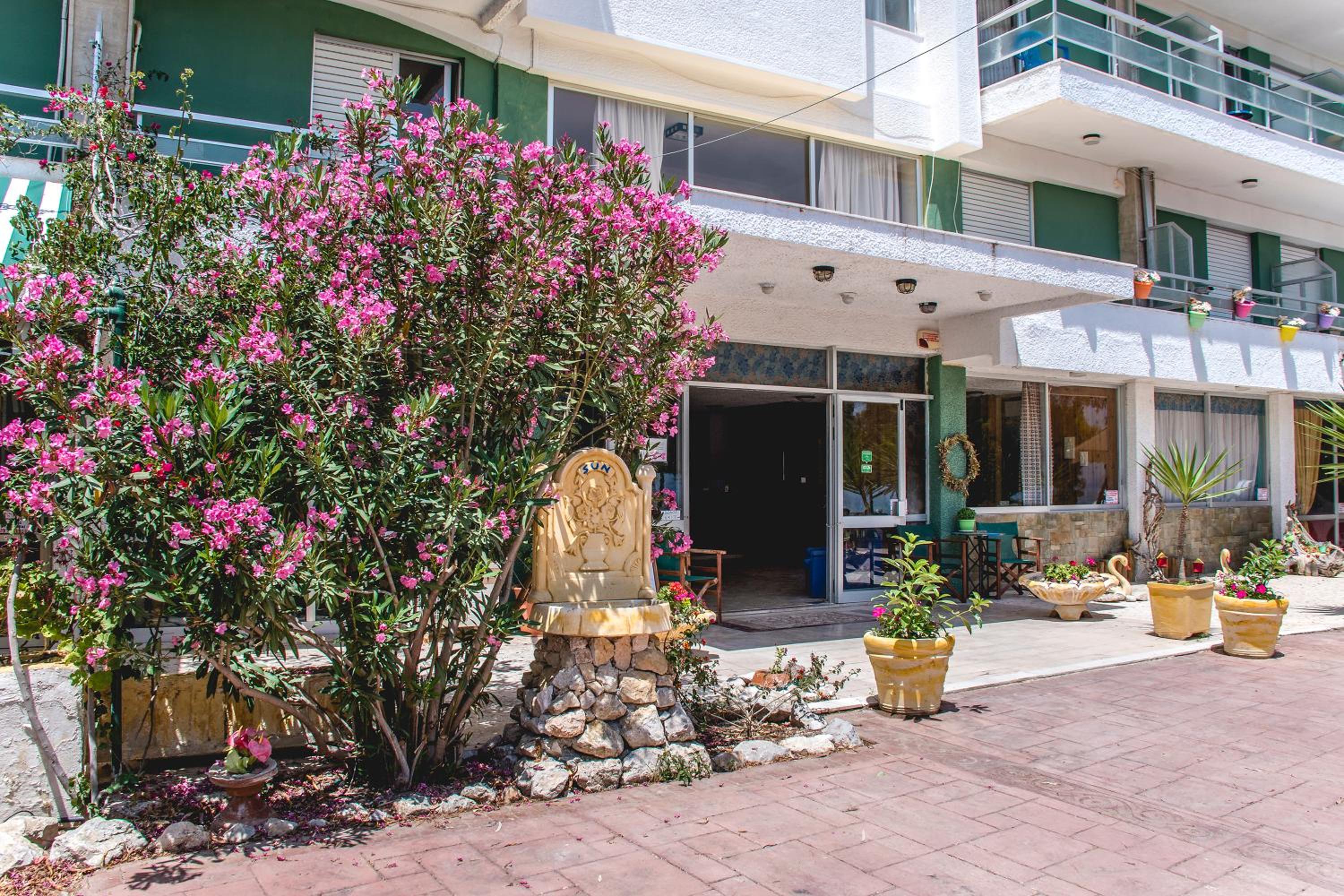 Located steps away from a private beach in Kinetta, the seafront Sun Hotel offers a tranquil retreat surrounded by lush gardens.