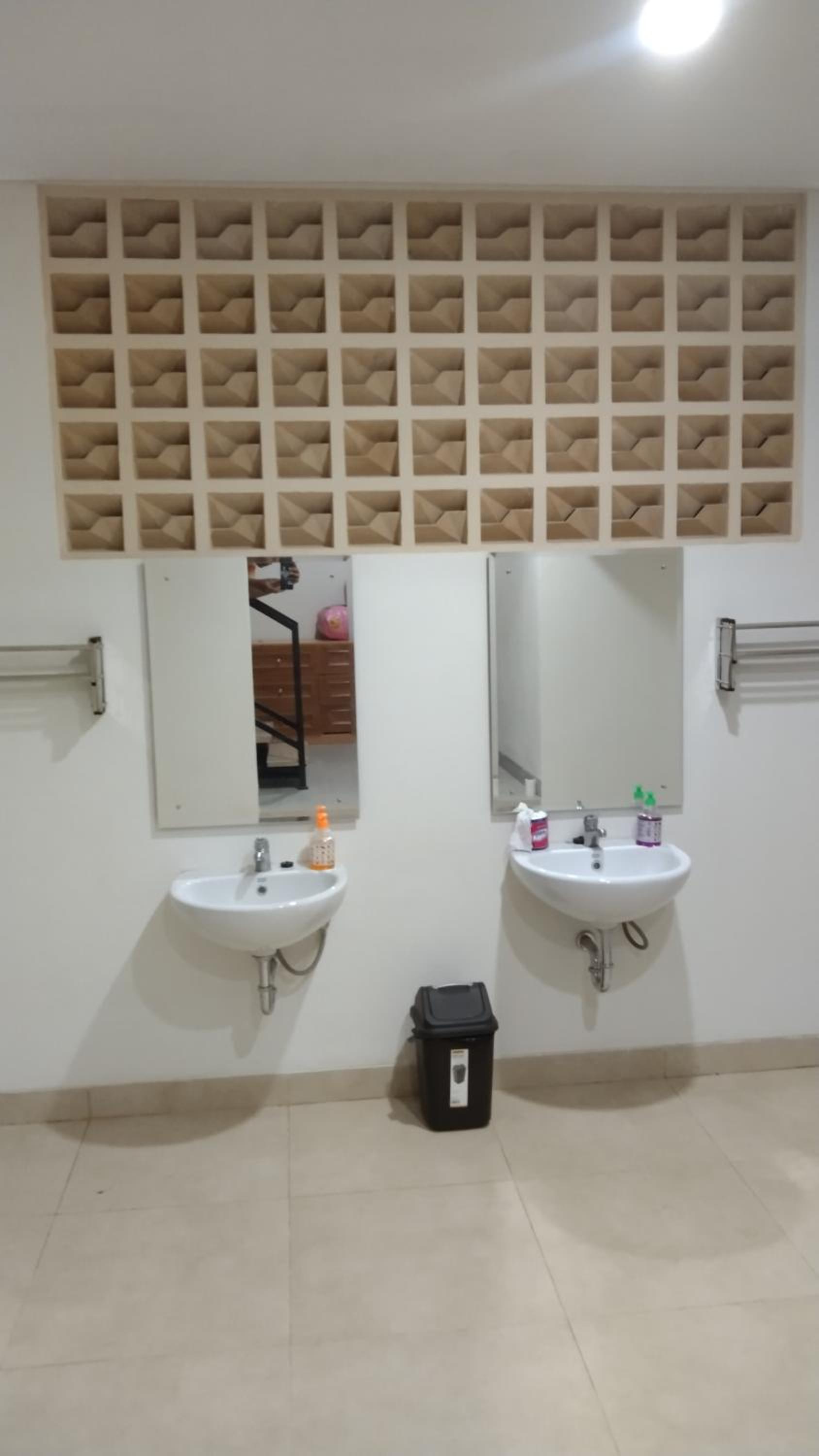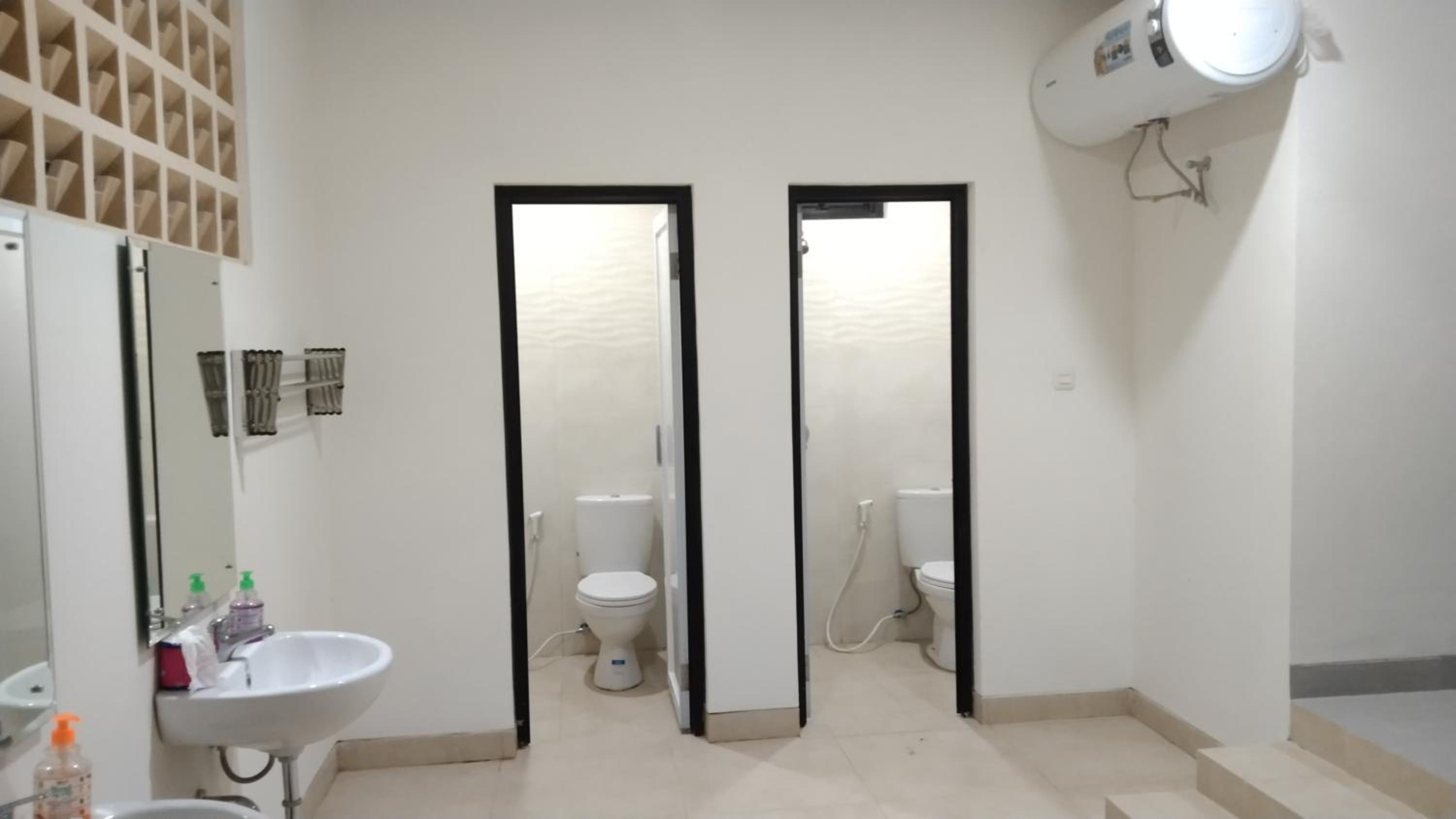 A clean three-floor building with a beautiful architecture. A spacious bedroom on the second floor with a good working AC, tissue paper, a table with a chair, a good clothes hanger, and used pairs of slippers. The bathroom had a sink with hand wash liquid soap, a used soap bar, very good hot water for shower, and a Western style toilet with a toilet shower jet and toilet paper. Friendly and helpful service. A spacious parking yard for motorbikes and cars.