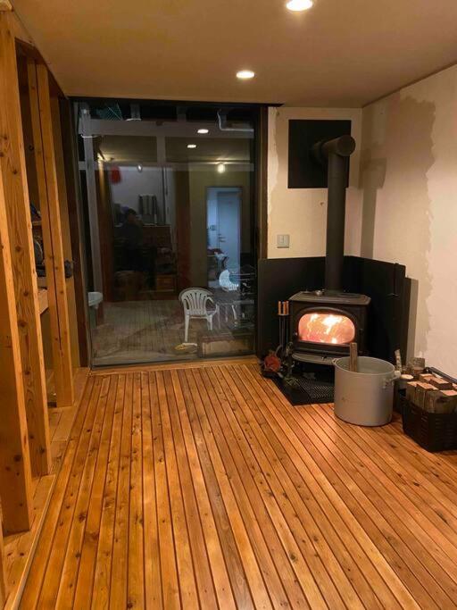 The holiday home boasts a hot tub, fireplace, and a fully equipped kitchen for a comfortable stay.