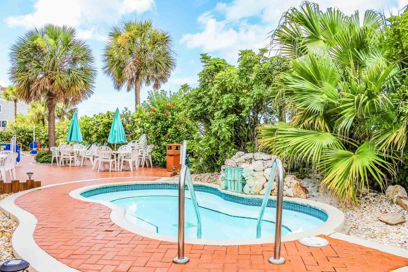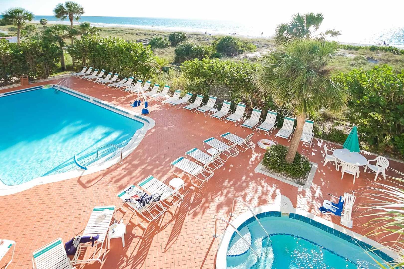Rght on the beach, with a pool and hot tub. Just what we were looking for.