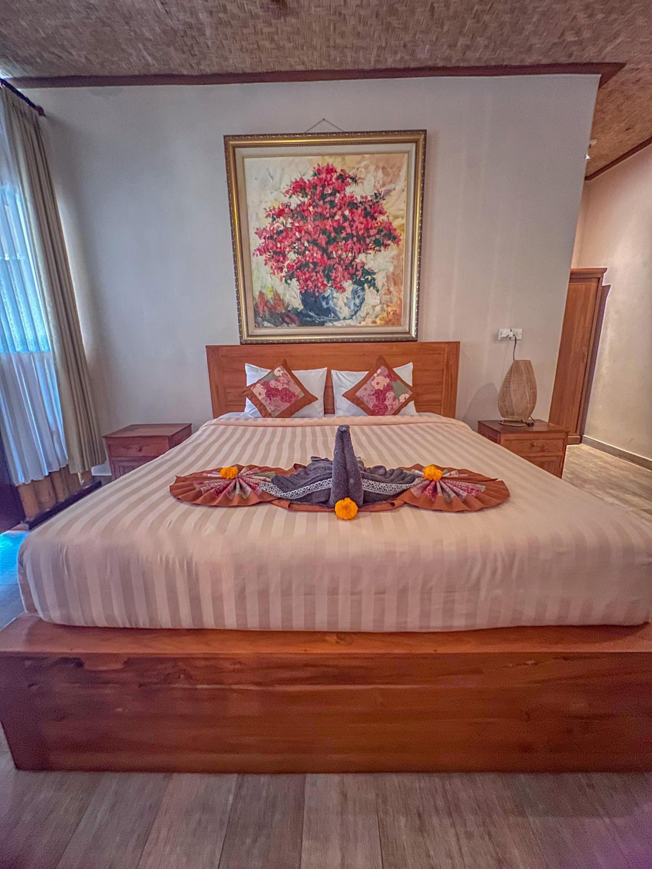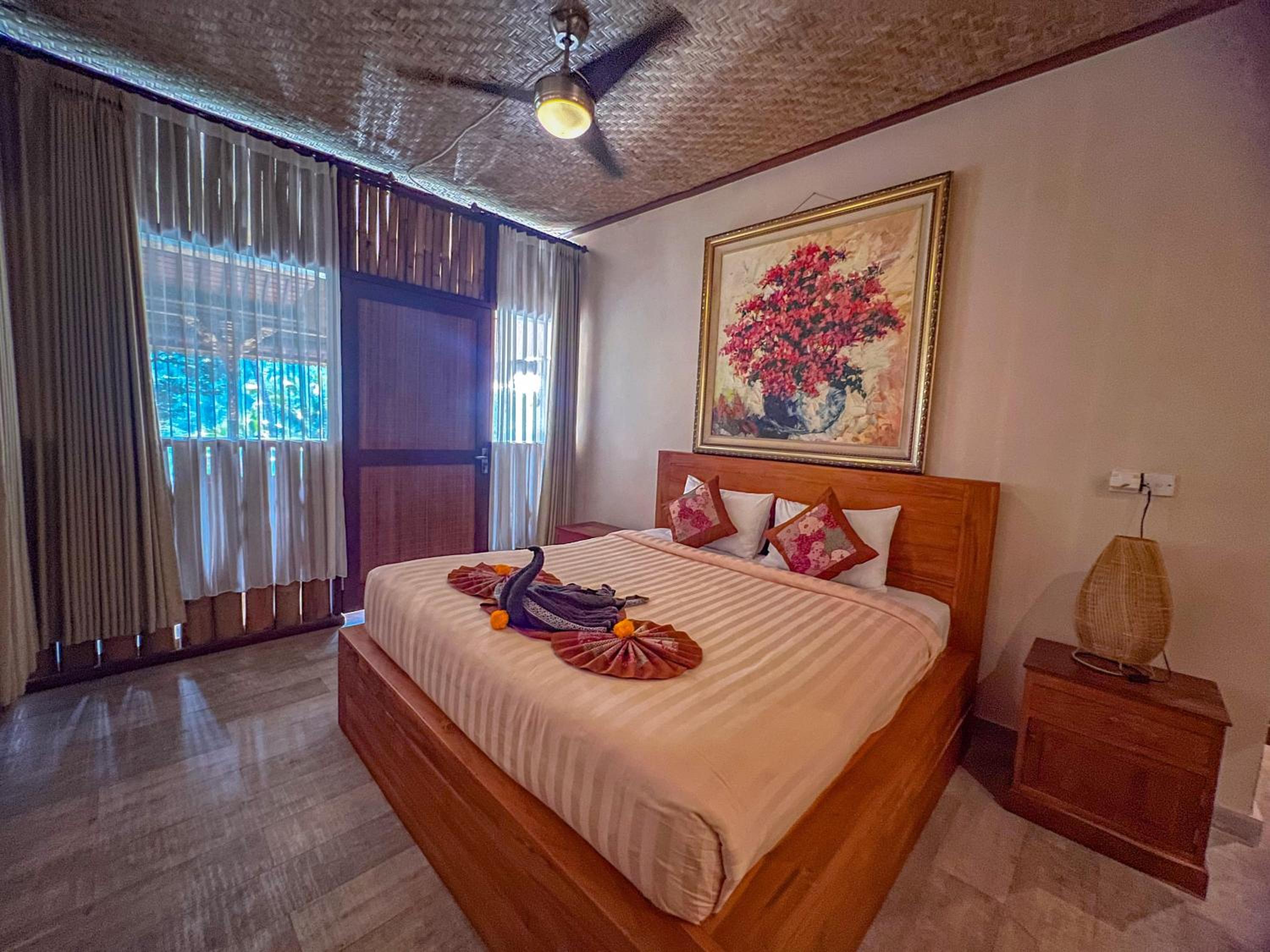 It’s poorly built with years of adding on rooms, to navigate to my room or the pool or reception is tricky with steep staircases. Like a labyrinth. Broken window , power kept going out so it was very hot . It was pitch black in the hallway and difficult to open the door. Not very safe. No fan or mosquito netting . Dirty bedsheet as shown. No tea or coffee making facilities. Swimming pool was filthy. They cleaned it the next day.
