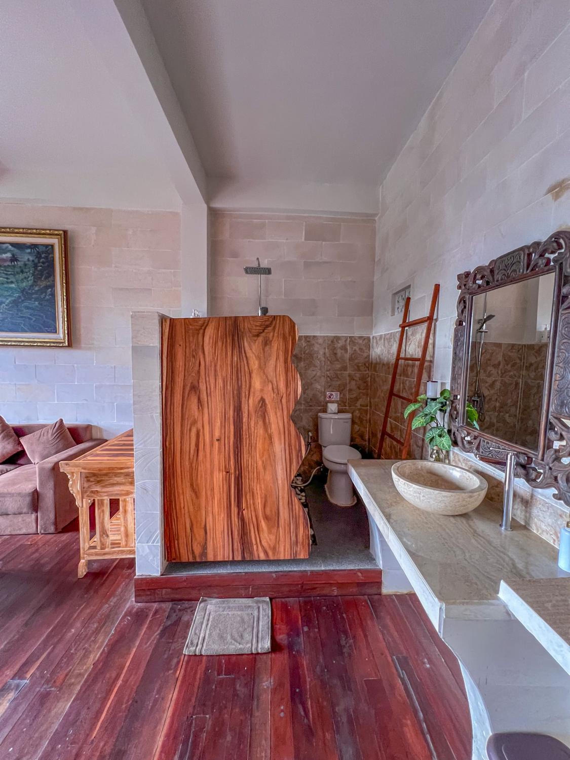 When booking we were not advised that there is construction happening next to the villa from 6:00am until 22:00pm in the evening which really interfered with our stay. The beds were not comfortable, the floors very squeaky. The shower pressure was good but half was through a shower the water would get cold. When contacting Made Punias Jungle number that is situated on bookings.com (during our stay) we would just get blue ticked and no response leading my guests to walk down the numerous number of stairs to go and fetch what we needed. Upon approaching the manager (on the bookings.com number) we were simply responded with “there is another number on the menu to use” but when asking the assistants upon arrive they said they number we had was correct and can be used for any communication.