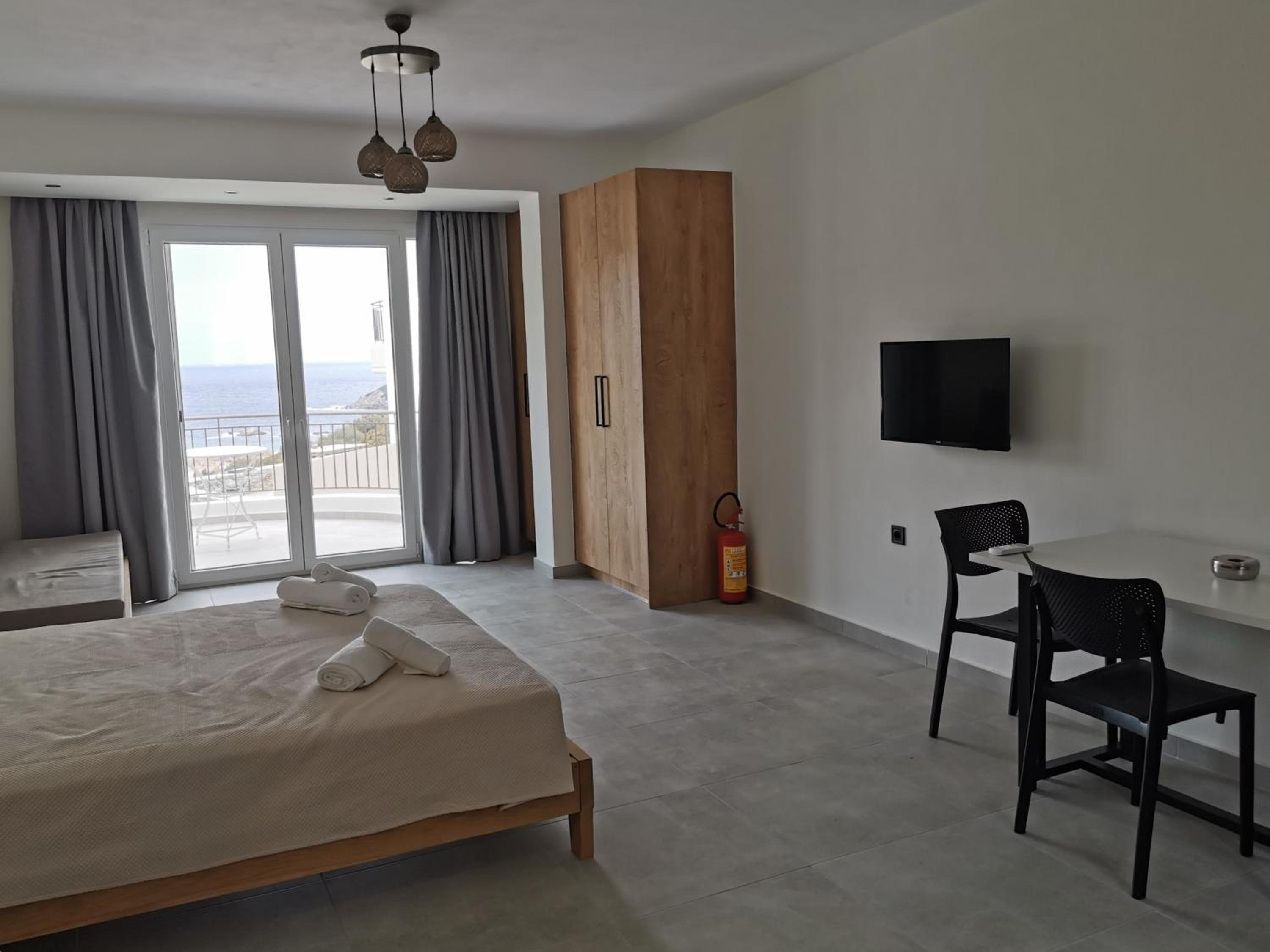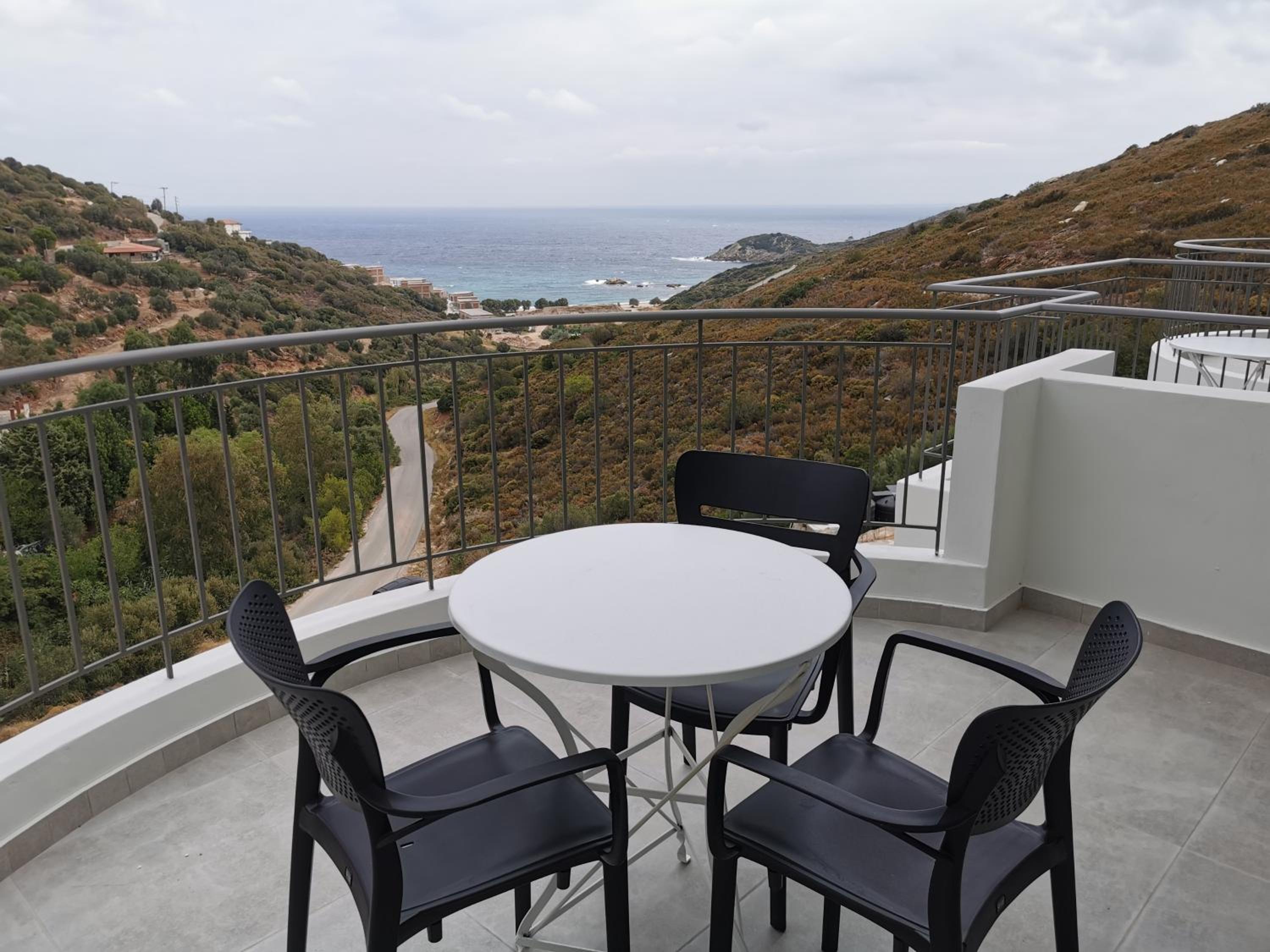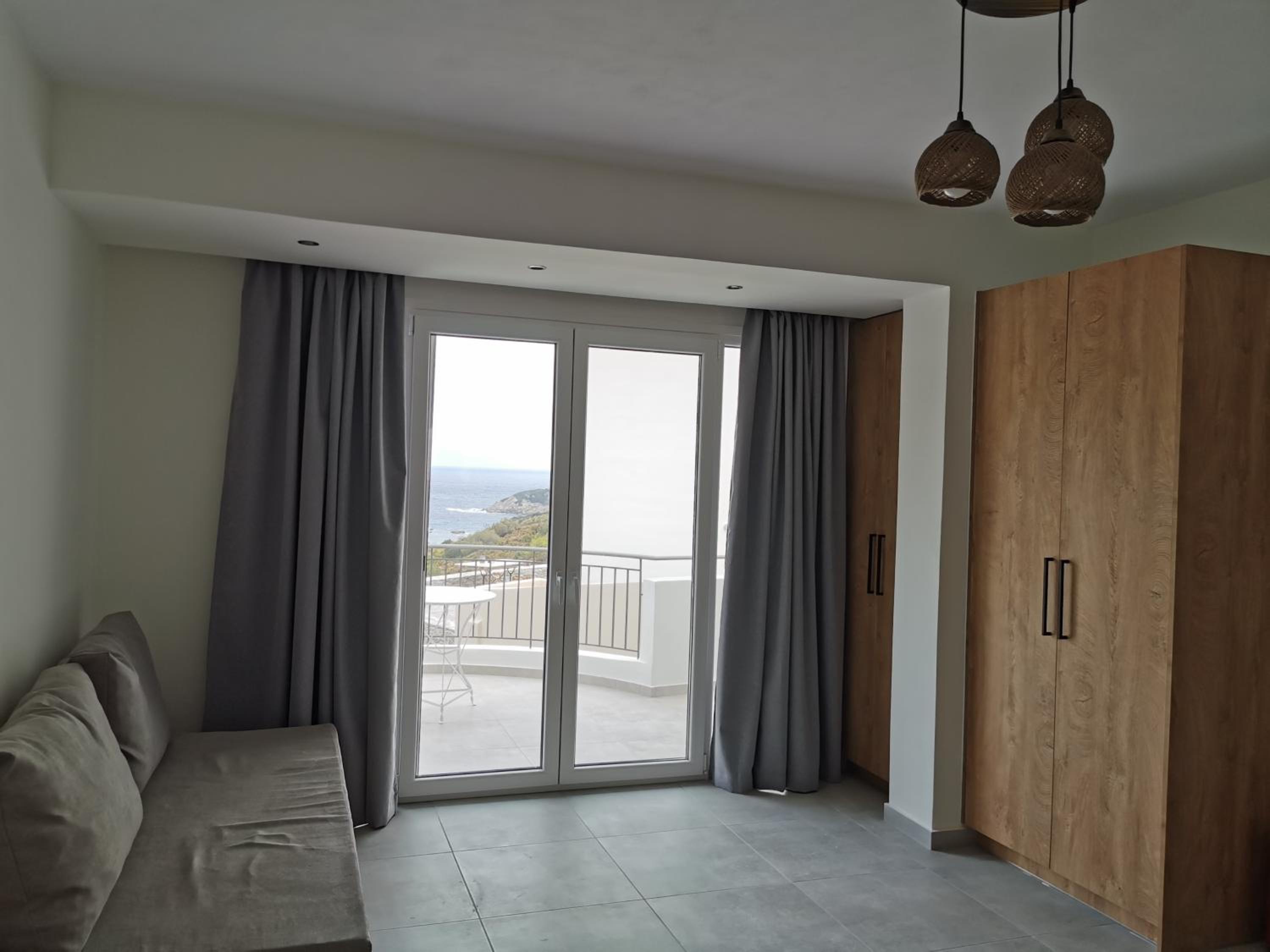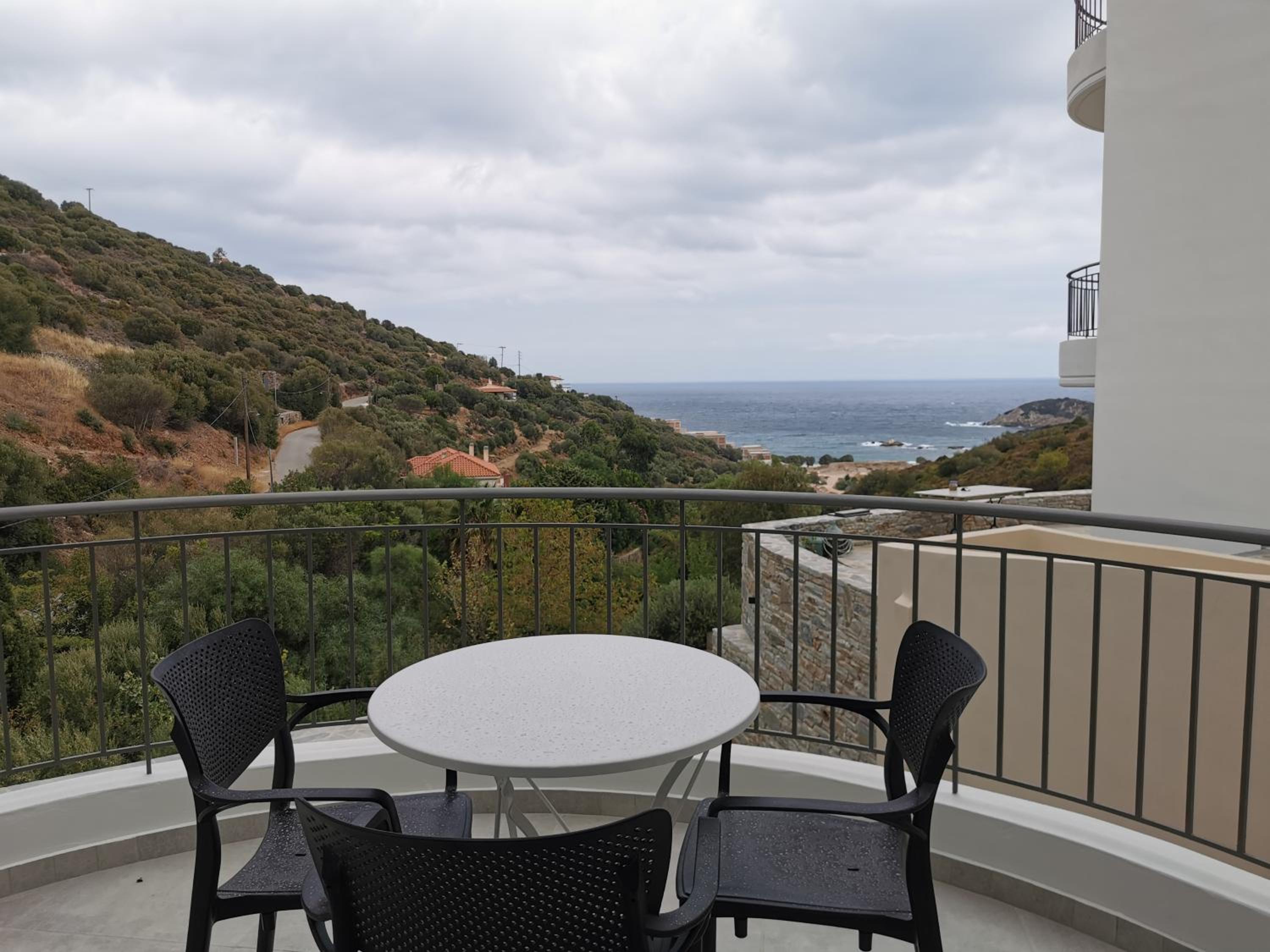 The rooms are large and comfortable with a balcony looking over the sea. The view is relaxing and fantastic, especially in the early morning. The nearest tavern is 3 minutes by car. There is a nice seashore there as well. So we spent the mornings there and had breakfast in the tavern. For lunch we moved to the nearest villarge Ag. Apostolos is less than 10 minutes by car. In the village there are several different taverns and supermarket. There is a seashore in the village too.