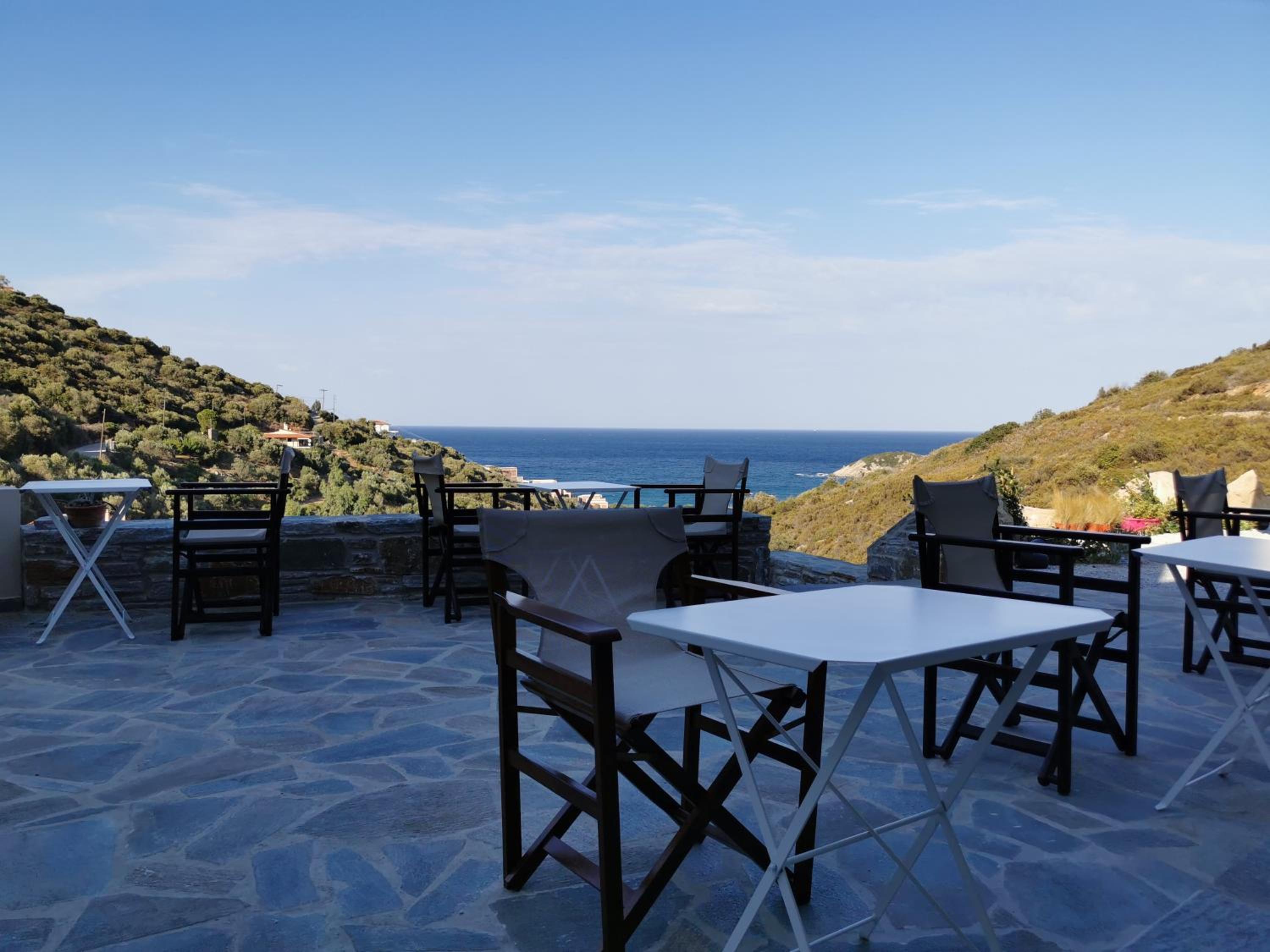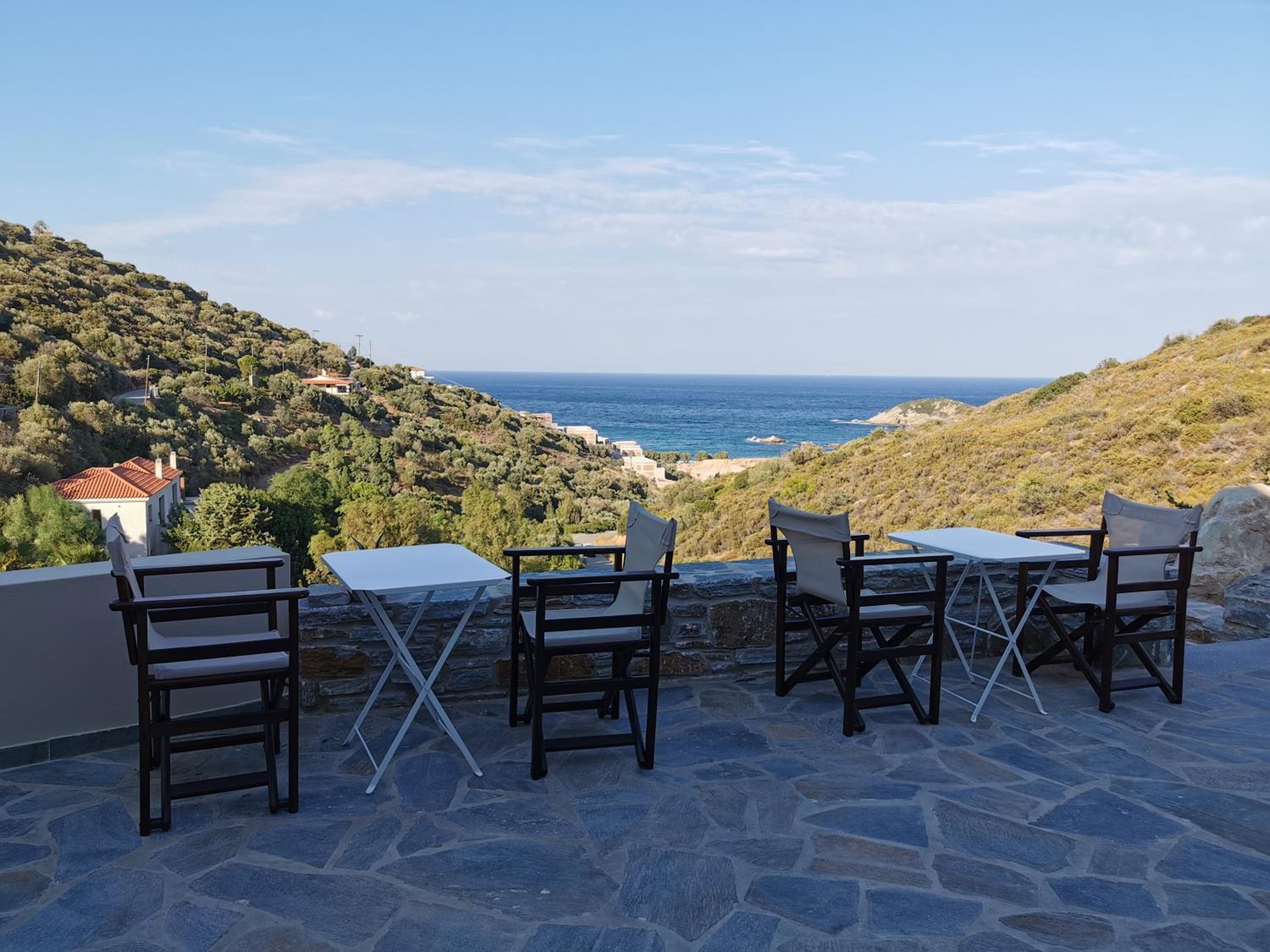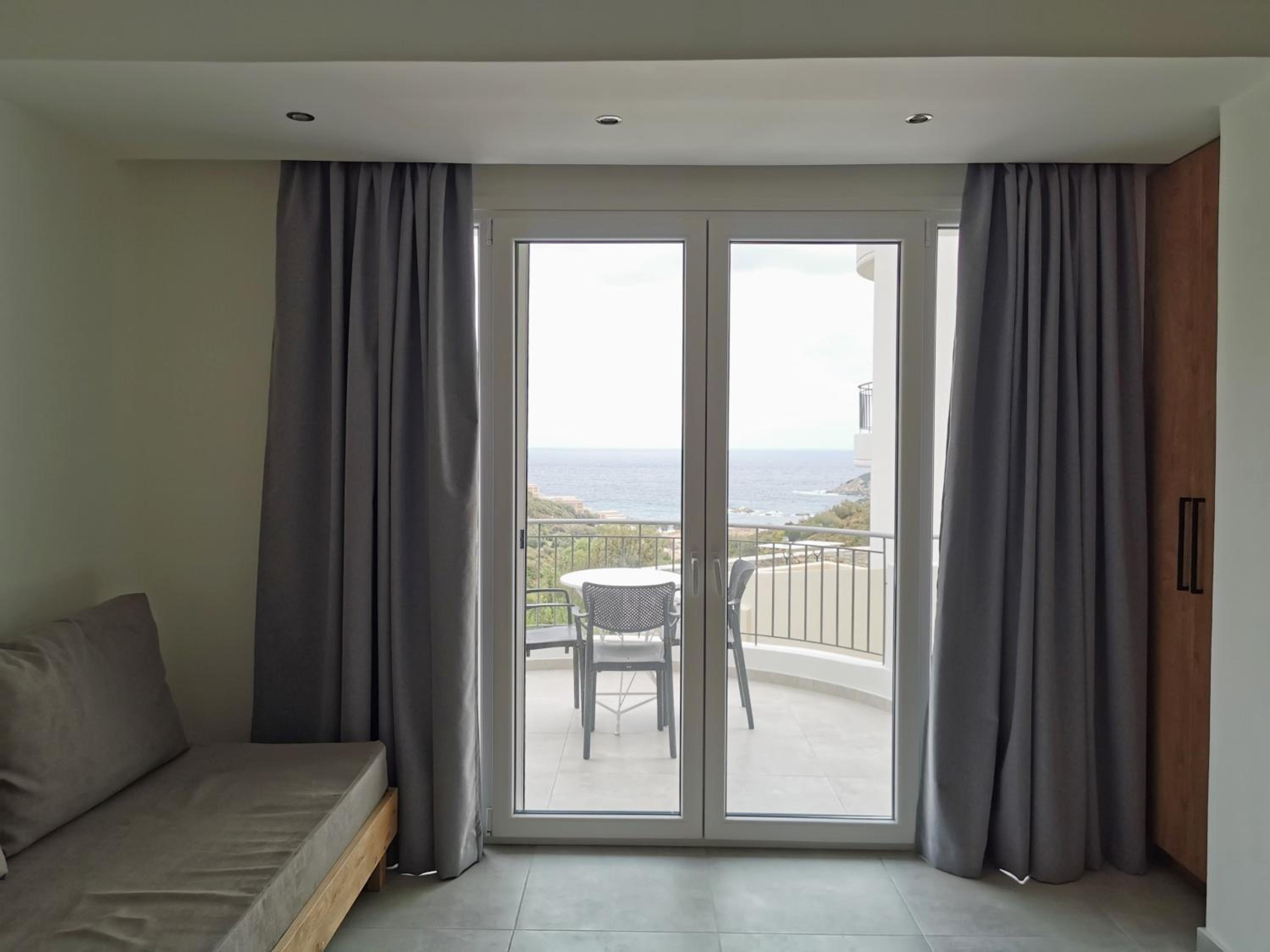 The rooms are large and comfortable with a balcony looking over the sea. The view is relaxing and fantastic, especially in the early morning. The nearest tavern is 3 minutes by car. There is a nice seashore there as well. So we spent the mornings there and had breakfast in the tavern. For lunch we moved to the nearest villarge Ag. Apostolos is less than 10 minutes by car. In the village there are several different taverns and supermarket. There is a seashore in the village too.