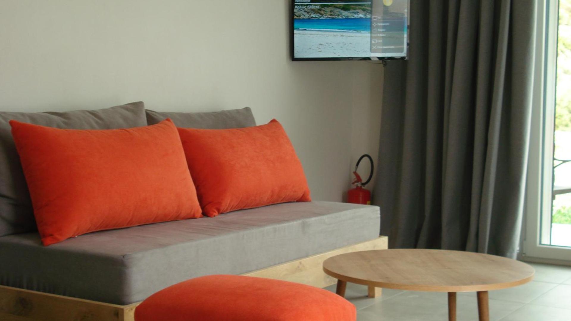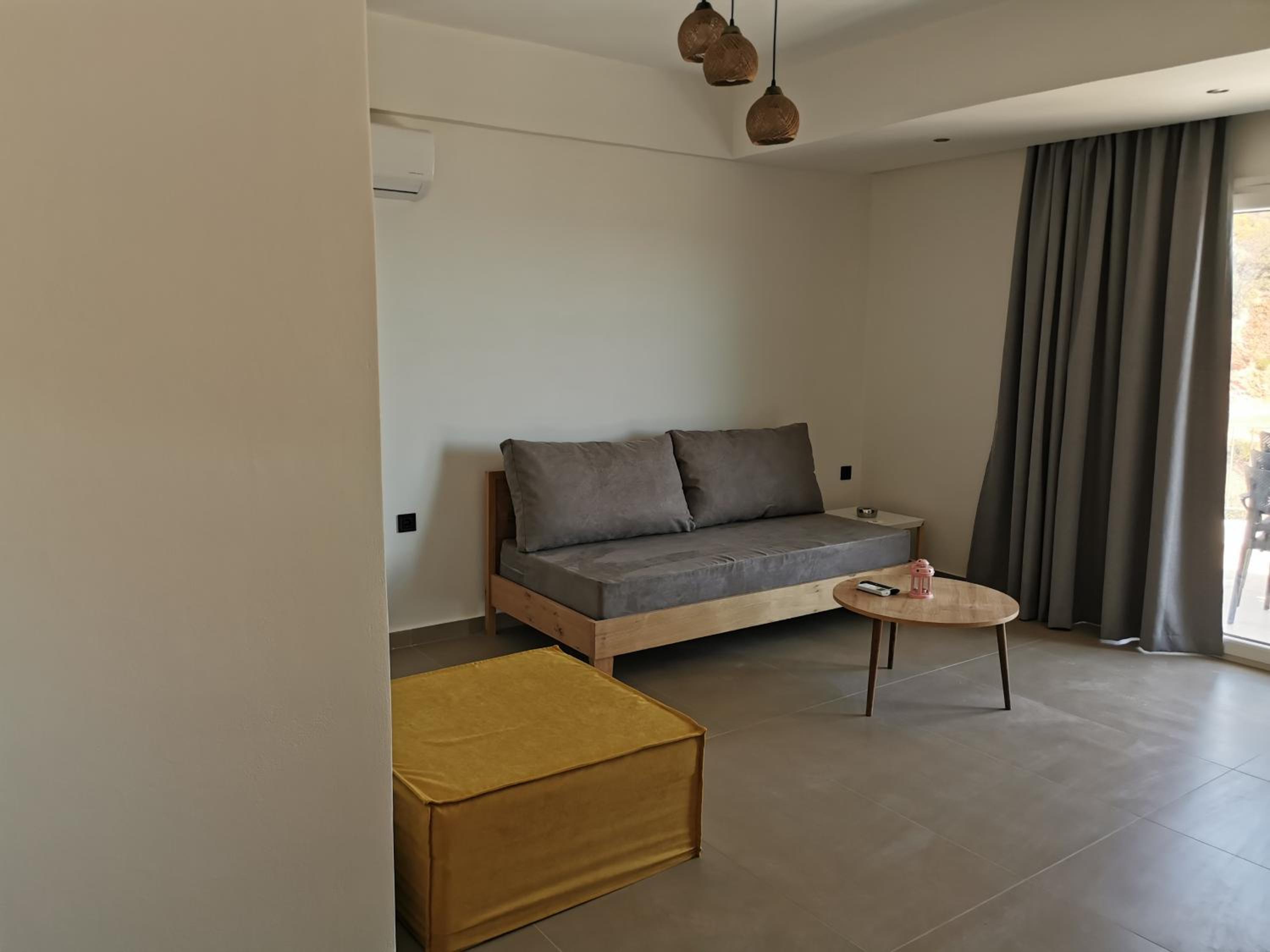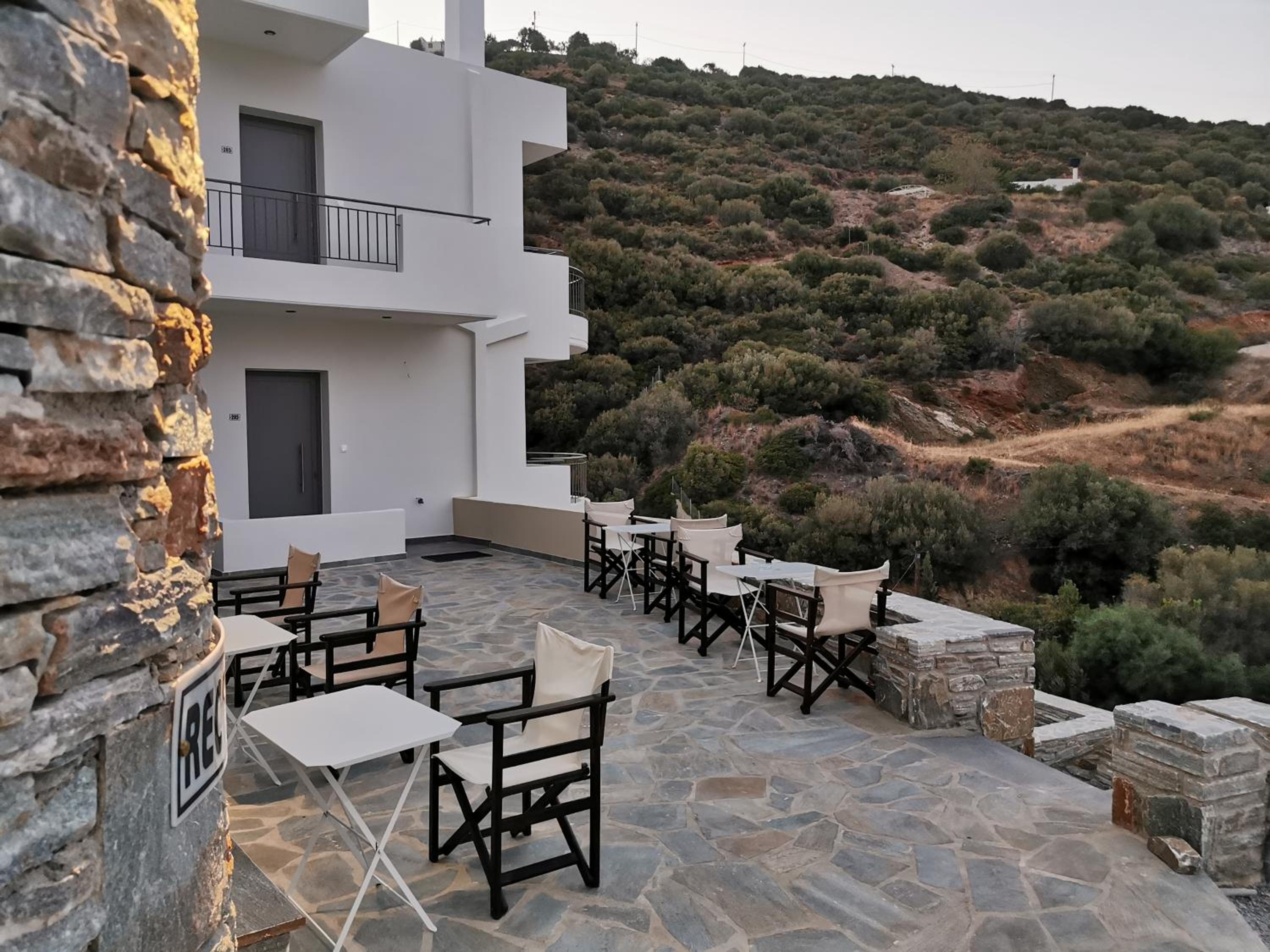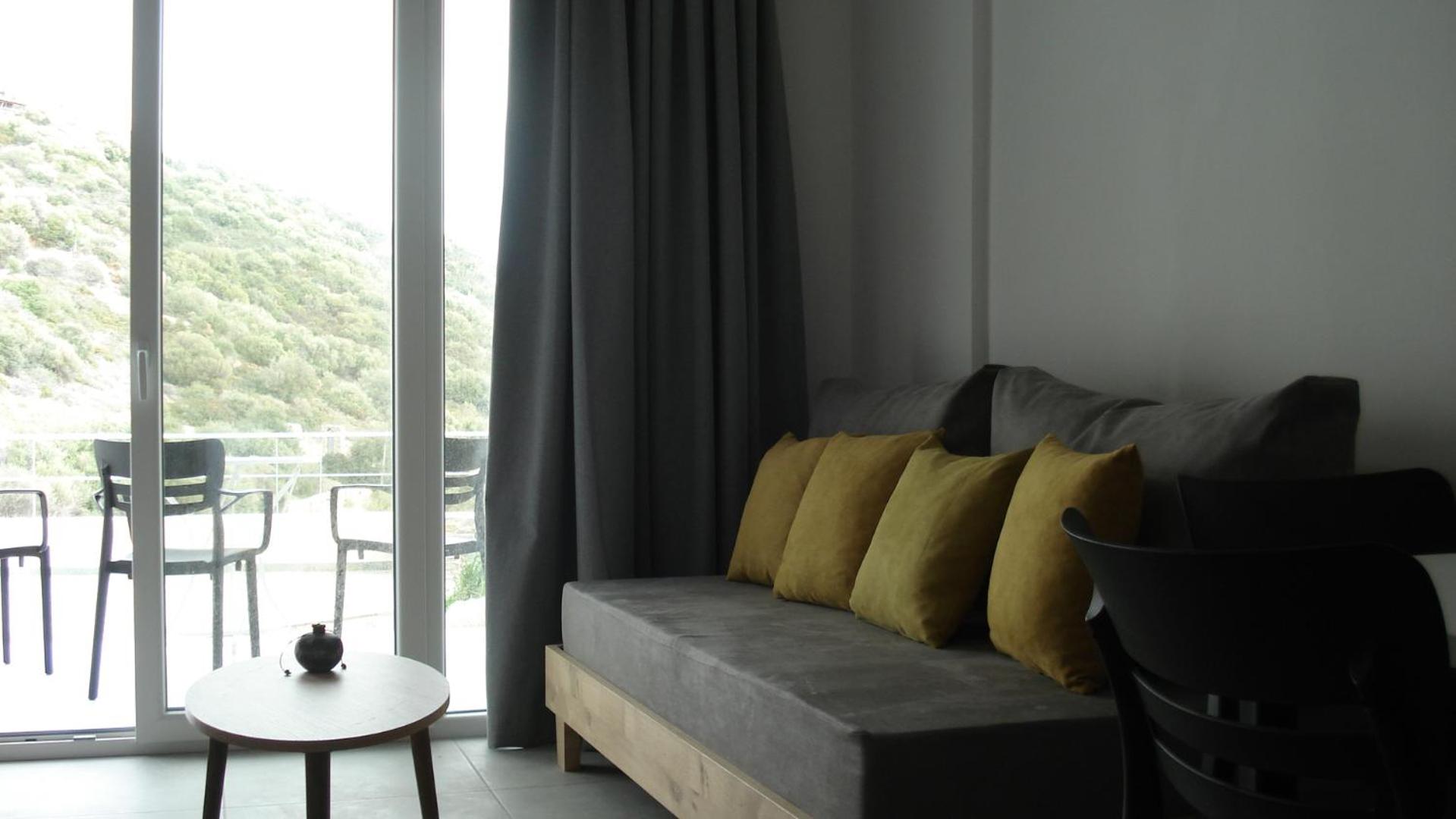 The rooms are large and comfortable with a balcony looking over the sea. The view is relaxing and fantastic, especially in the early morning. The nearest tavern is 3 minutes by car. There is a nice seashore there as well. So we spent the mornings there and had breakfast in the tavern. For lunch we moved to the nearest villarge Ag. Apostolos is less than 10 minutes by car. In the village there are several different taverns and supermarket. There is a seashore in the village too.