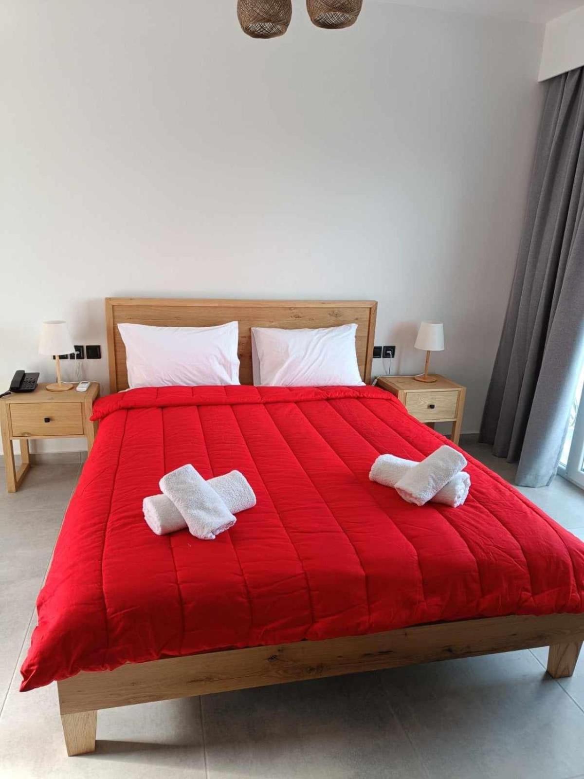 The hosts act like family with authentic Greek hospitality, added personal touches, and kindness that is impossible at any resort. The breakfast is delicious. The two beaches are an easy 5 minute walk down and the view from the hotel doesn’t get any better. Stars are gorgeous at night from the balcony!