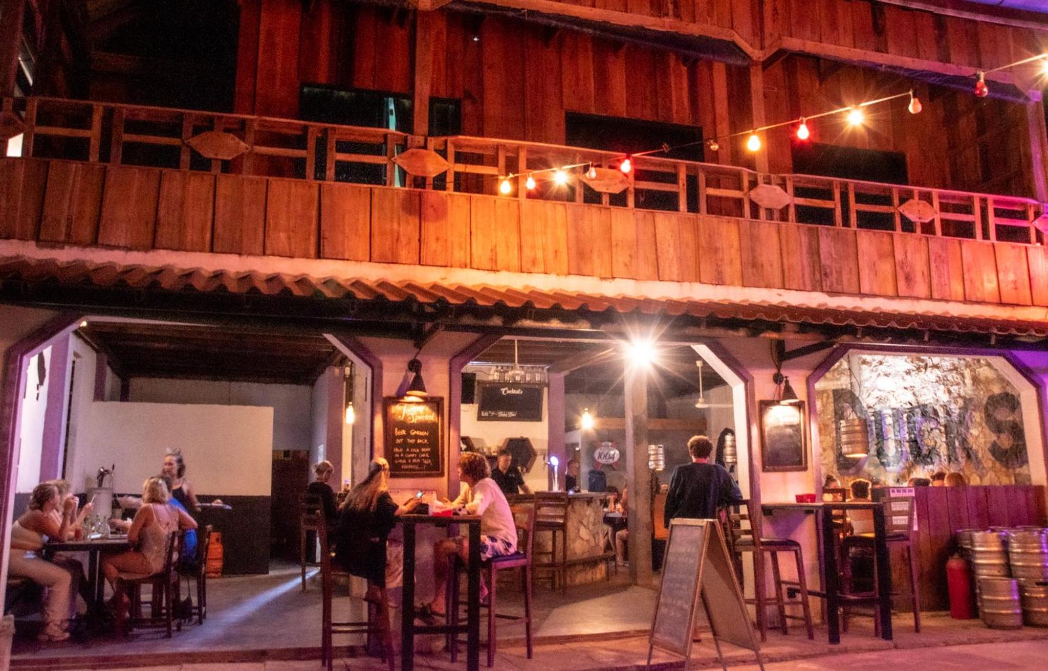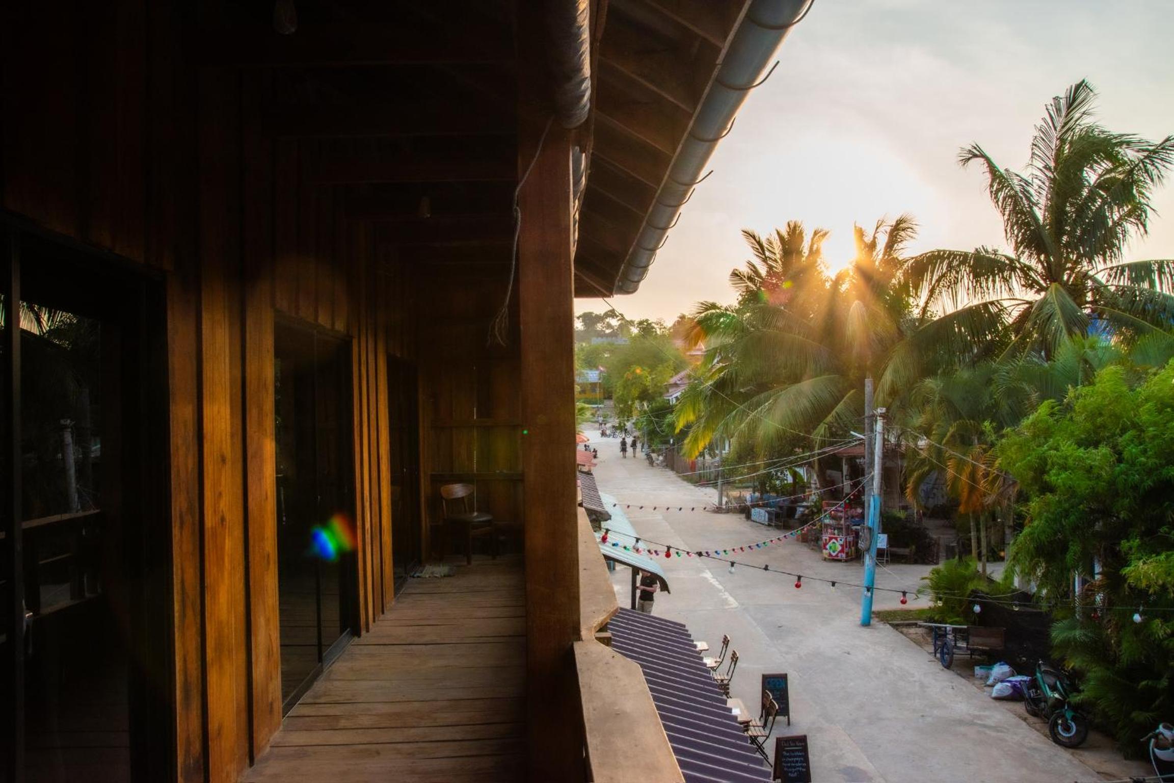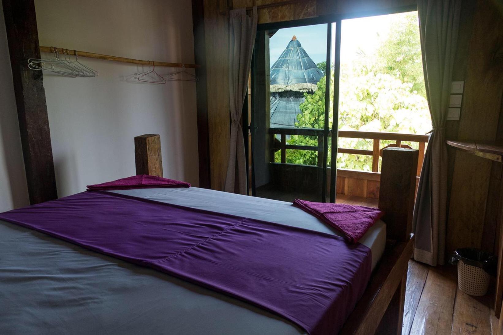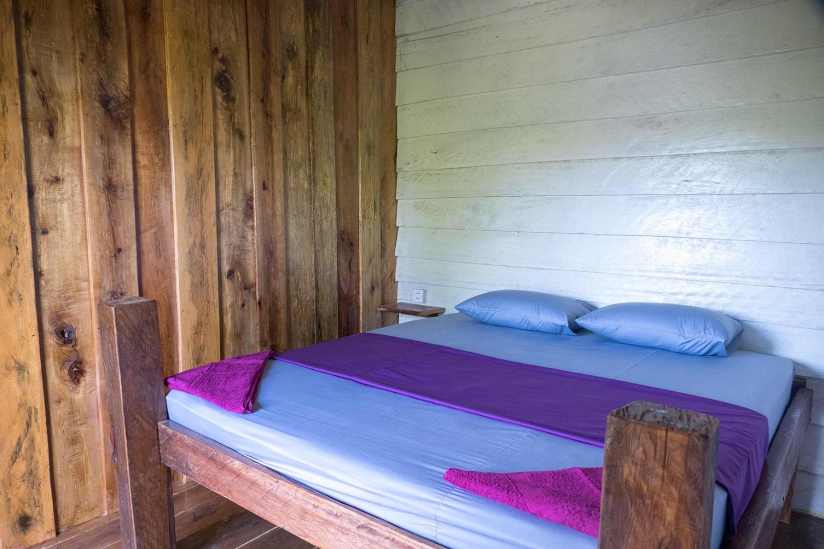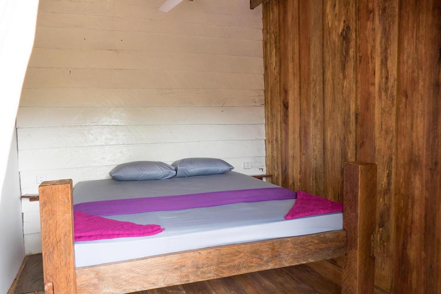 Il y a un bar séparé de quelques planches sous la chambre, la musique était très forte donc compliqué de dormir. Il n'y avait pas de climatisation mais seulement un ventilateur au plafond qui fait un bruit d'enfer, on se demande comment il tiens encore. Les murs en bois se font manger, il y a des trous et des bruits. La porte fenêtre de la chambre ne se fermait pas, elle était cassée.