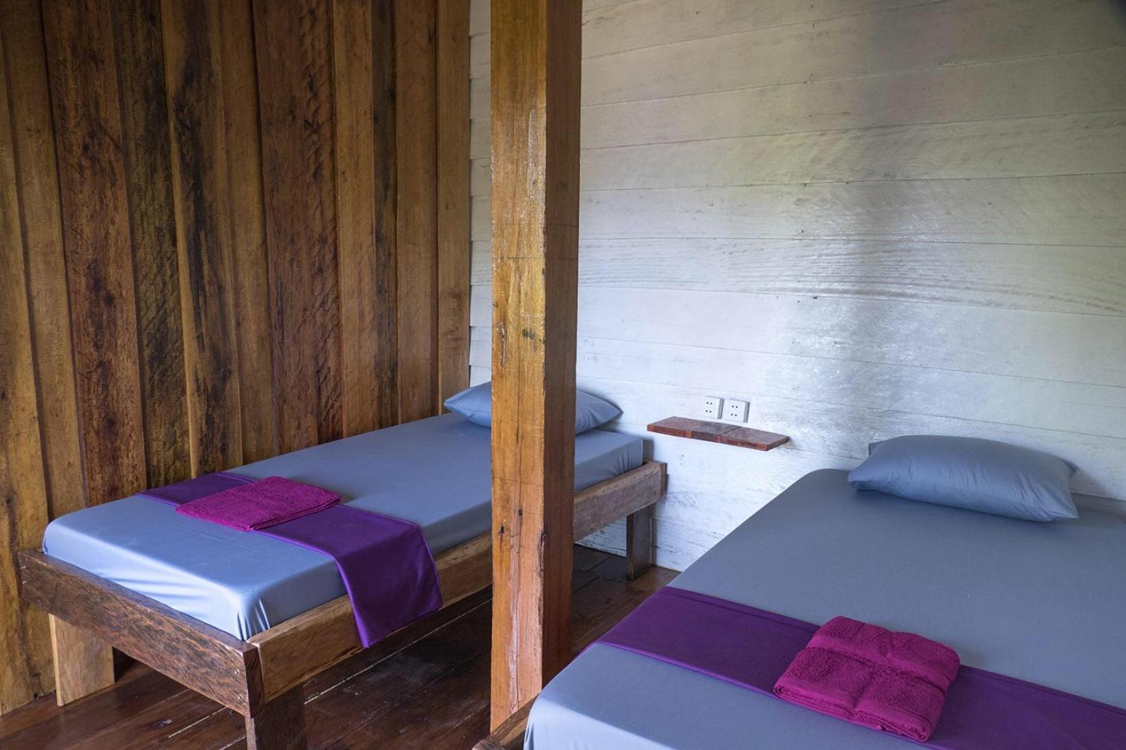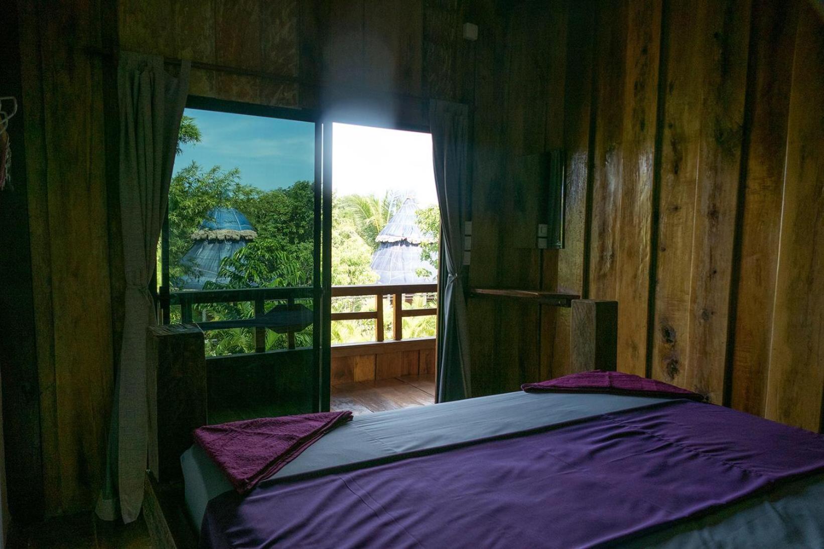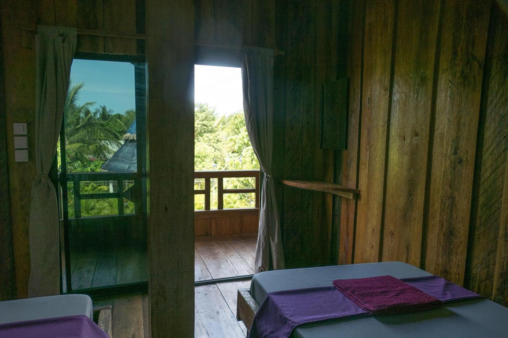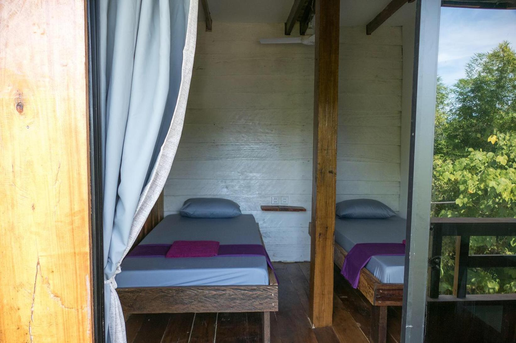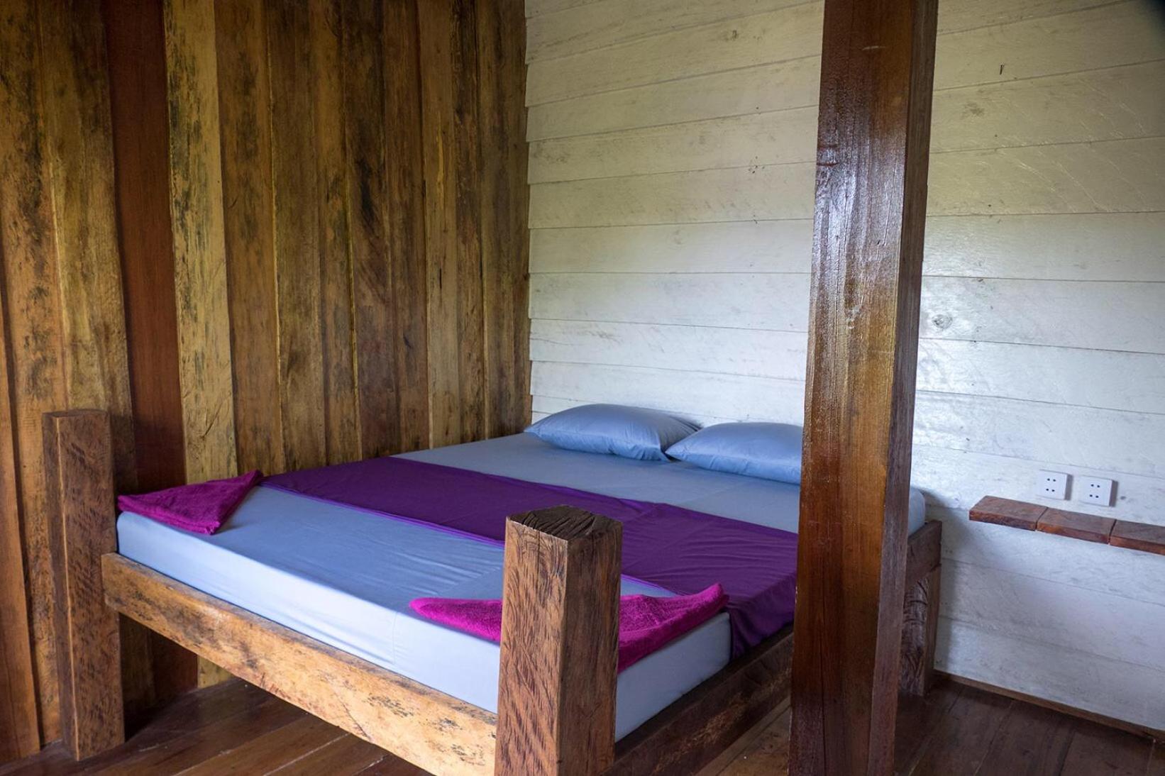 Il y a un bar séparé de quelques planches sous la chambre, la musique était très forte donc compliqué de dormir. Il n'y avait pas de climatisation mais seulement un ventilateur au plafond qui fait un bruit d'enfer, on se demande comment il tiens encore. Les murs en bois se font manger, il y a des trous et des bruits. La porte fenêtre de la chambre ne se fermait pas, elle était cassée.