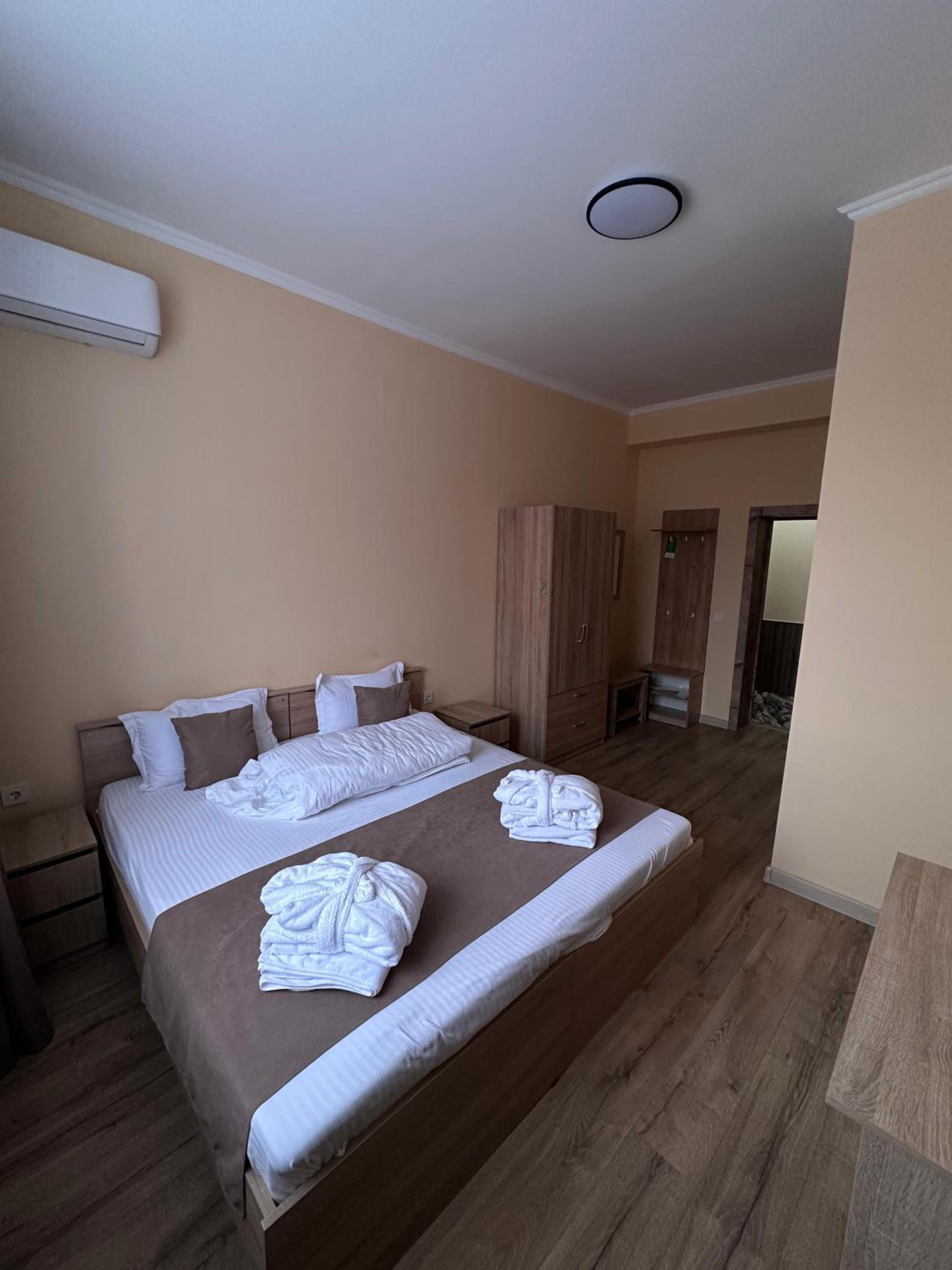1. На второй день отопление в номере было номинально. Горячей воды не было от слова совсем. На ресепшине дали совет включить кондиционер, который гонял воздух но не грел и через 10 минут перестал работать. 2. Завтрак - более чем скромный. Ждал персонал минут 15-20 (девушка (Диана кажется) ушла по своим личным делам), обслуживала с недовольным видом. 3. Спорт зал -есть но в соседнем здании чтобы попасть в которое нужно обходить ограждение отеля. 4. При въезде предупредил о дате отъезда и попросил приготовить документы заранее. Документы во время не подготовили. 5. Уборку номера не делали, пополнения воды и туалетных принадлежностей не было.