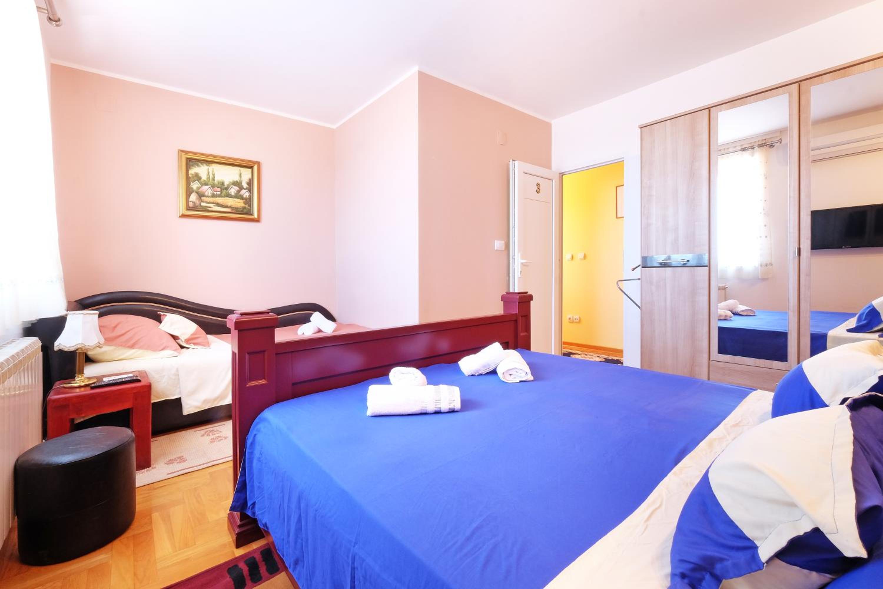 Τα δωμάτια ήταν στο ισόγειο και δυστυχώς είχαν μια μυρωδιά που ήταν άσχημη. Ακόμη, δεν ήταν ιδιαίτερα καθαρά καθώς ήταν λερωμένοι οι τοίχοι και υπήρχαν τρίχες σε κάποια σεντόνια. Βέβαια, όταν επισκεφτηκαμε ένα δωμάτιο στους πάνω ορόφους ήταν πρόσφατα ανακαινισμένο με μπαλκόνι με υπέροχη θέα στον Δούναβη.