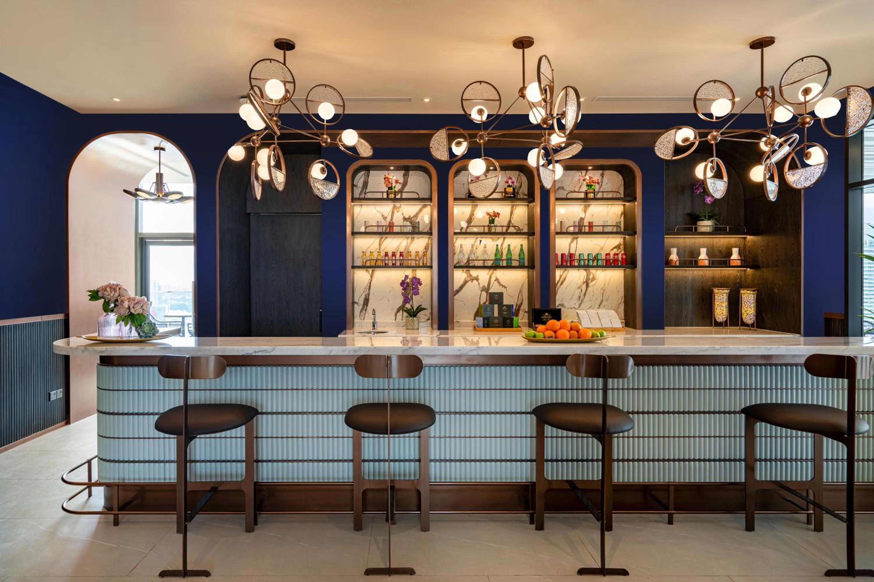 Guests can unwind at the outdoor swimming pool with stunning city views, savor delicious meals at the restaurant, or enjoy drinks at the bar.