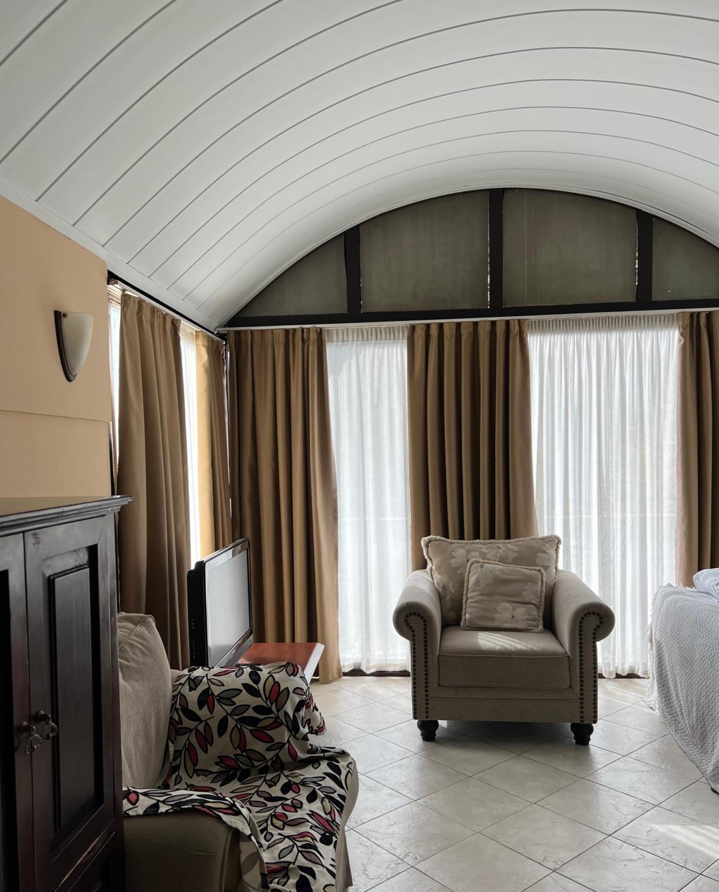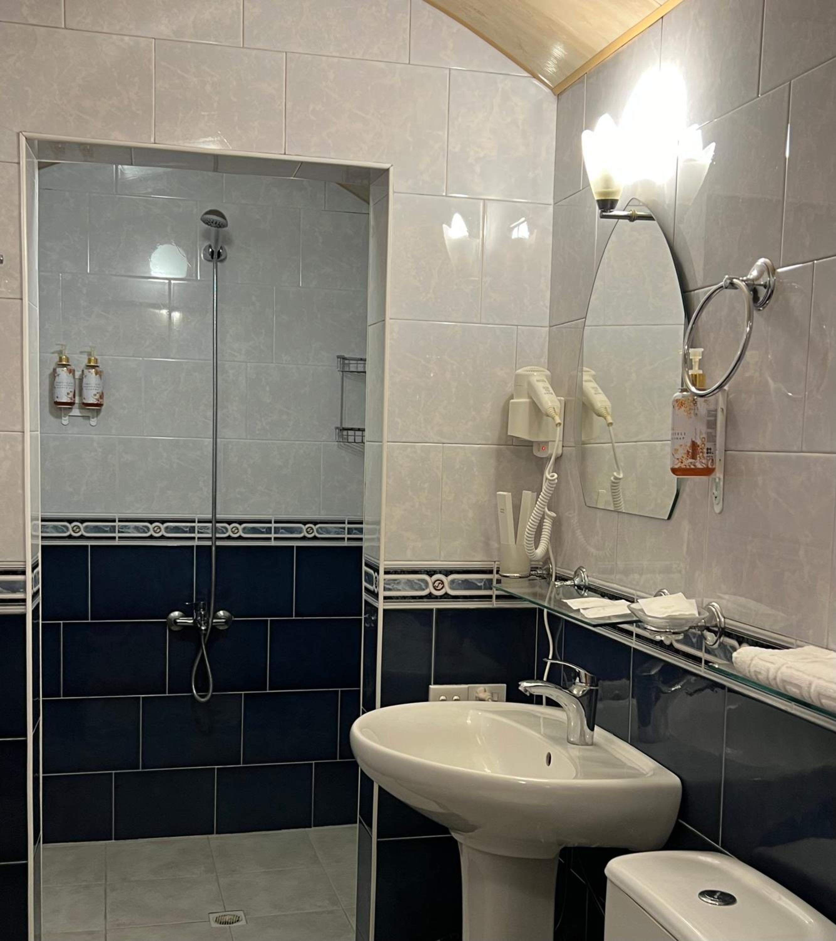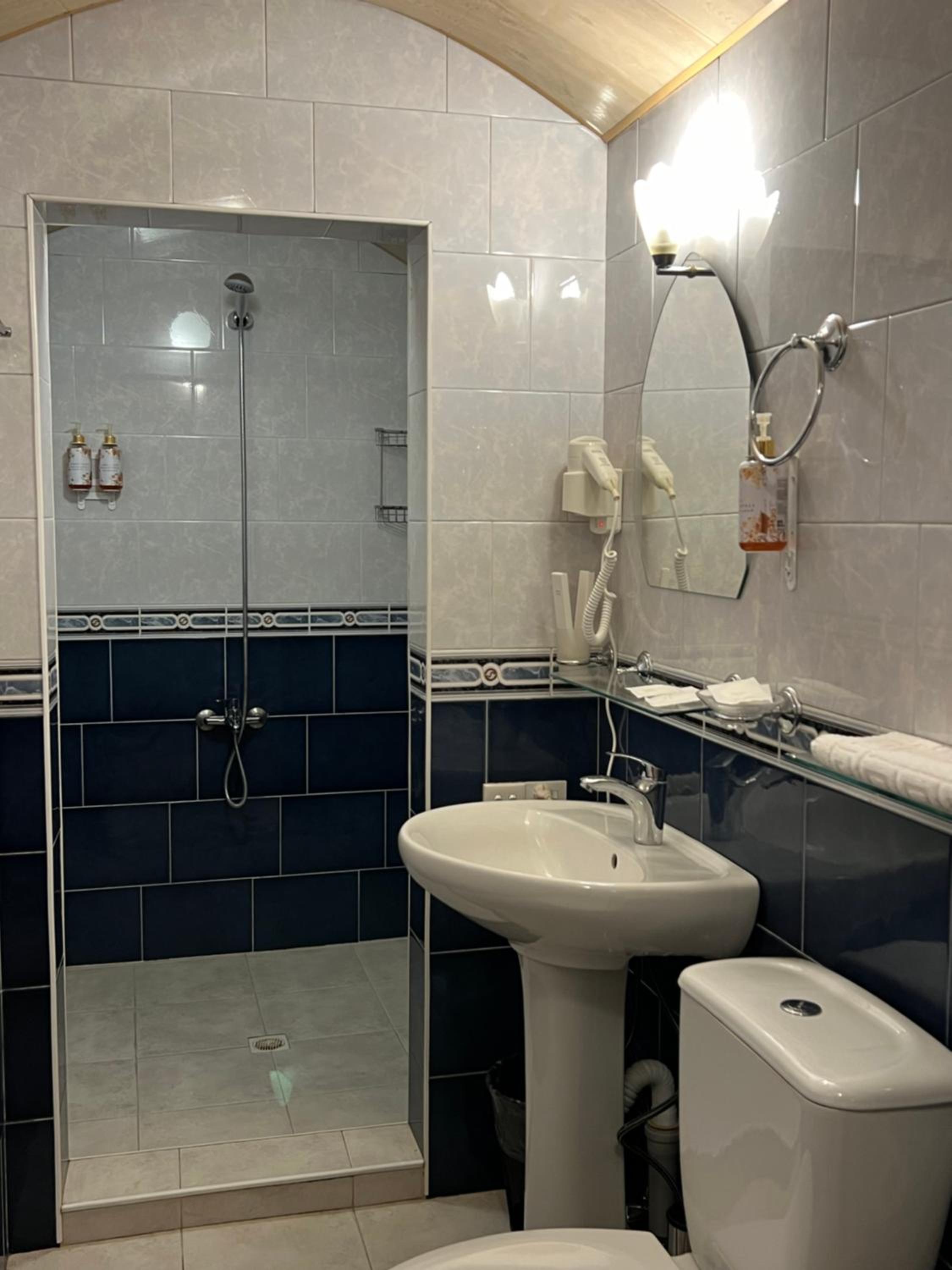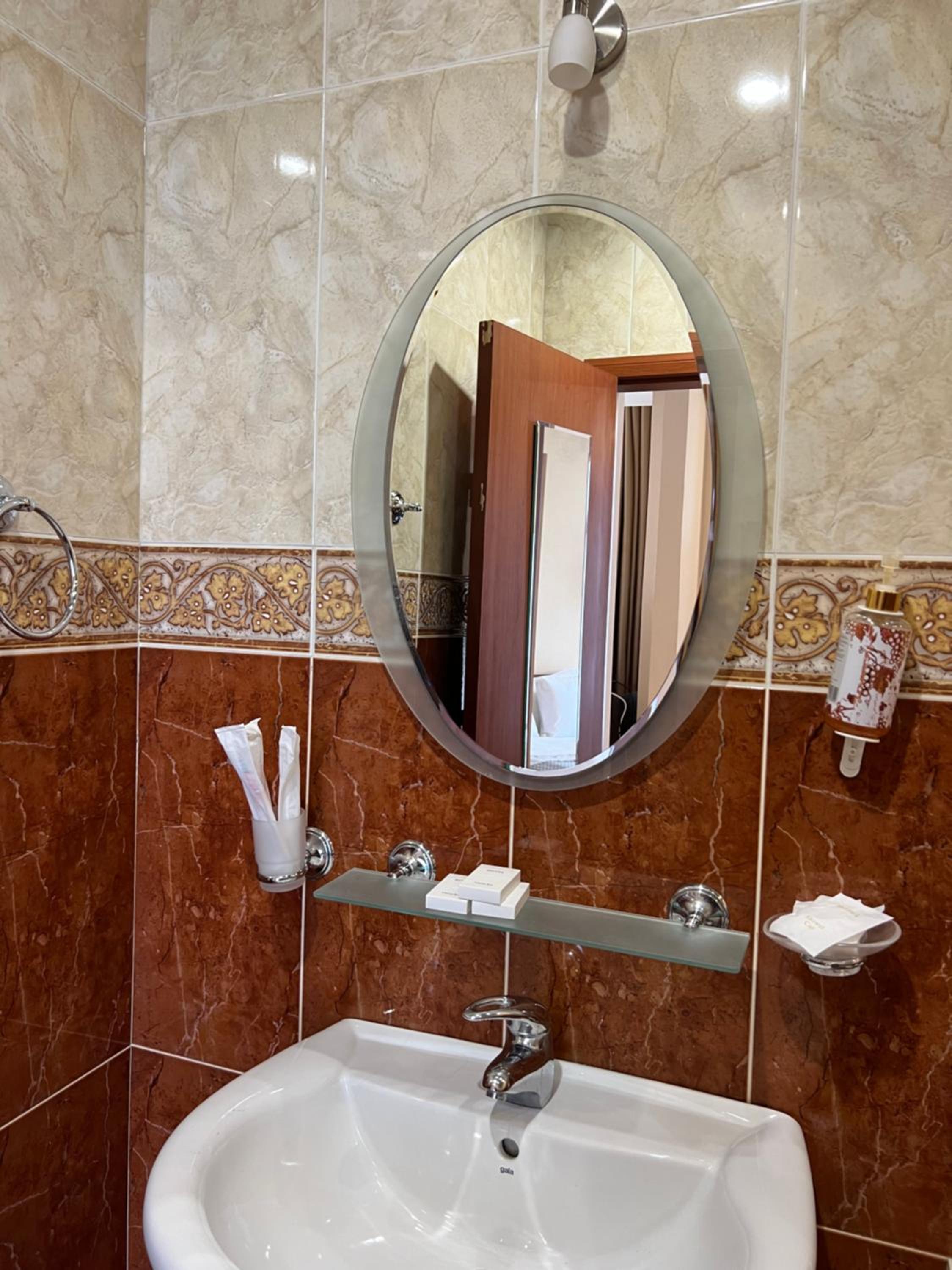 Loved this fantastic hotel. We stayed in the family room and loved the layout. It was really hot outside but the room stayed cool with the help of the A/C and ceiling fan. This hotel had the best bathroom of all the hotels we've stayed in in Georgia - there was no mold and everything worked the way it should. The pool was great and it was nice you could get drinks at the bar (with a daily happy hour!). The views were great and there is a bus stop literally outside the hotel. Our room had two balconies. The breakfasts were quite good and the staff was wonderful and spoke great English. We loved the two cats that would join us outdoors for breakfasts.