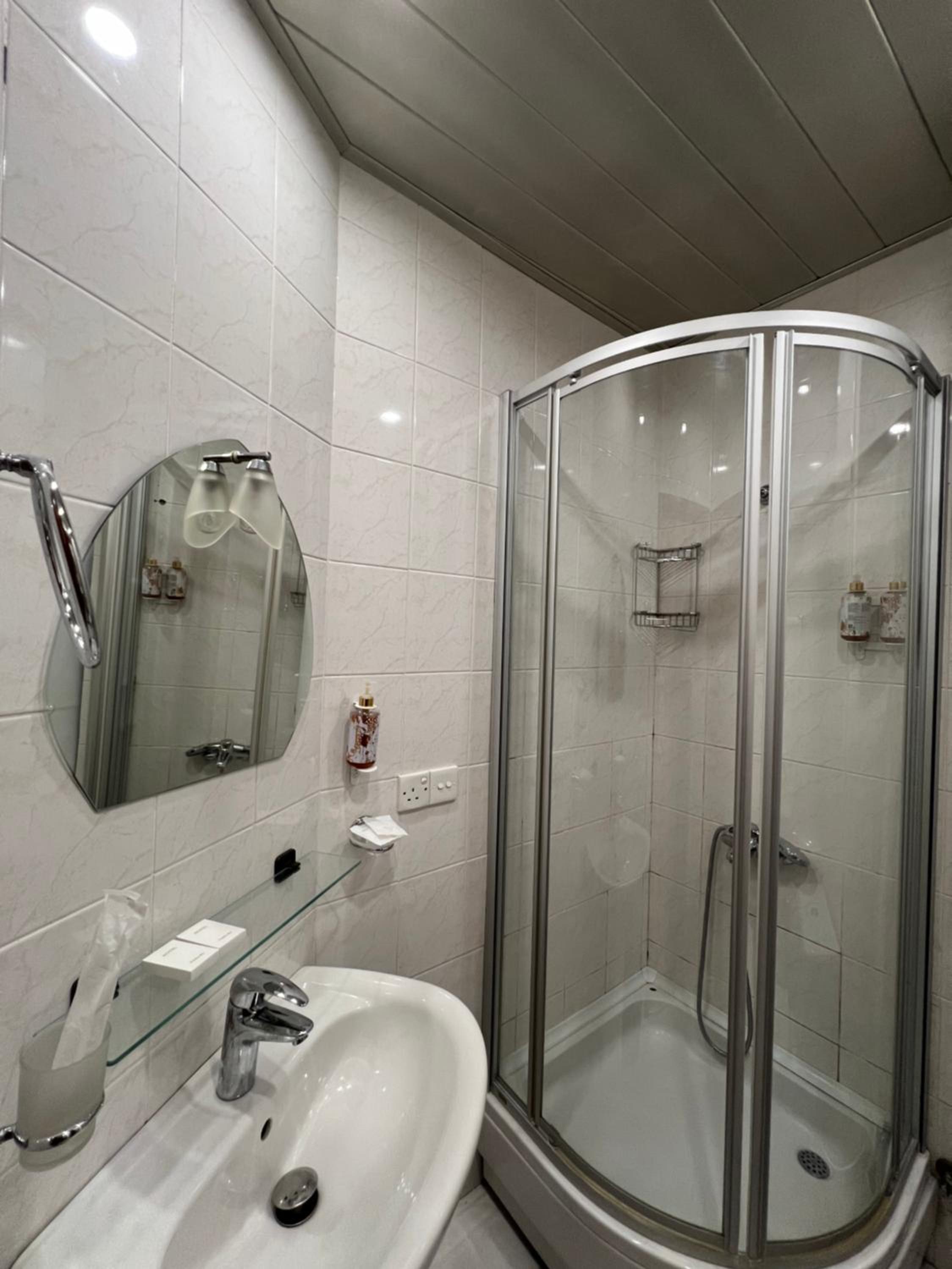 Shower head couldn't be adjusted and water splashed everywhere. Found hair in the bathroom upon arrival. Only instant coffee available for breakfast.