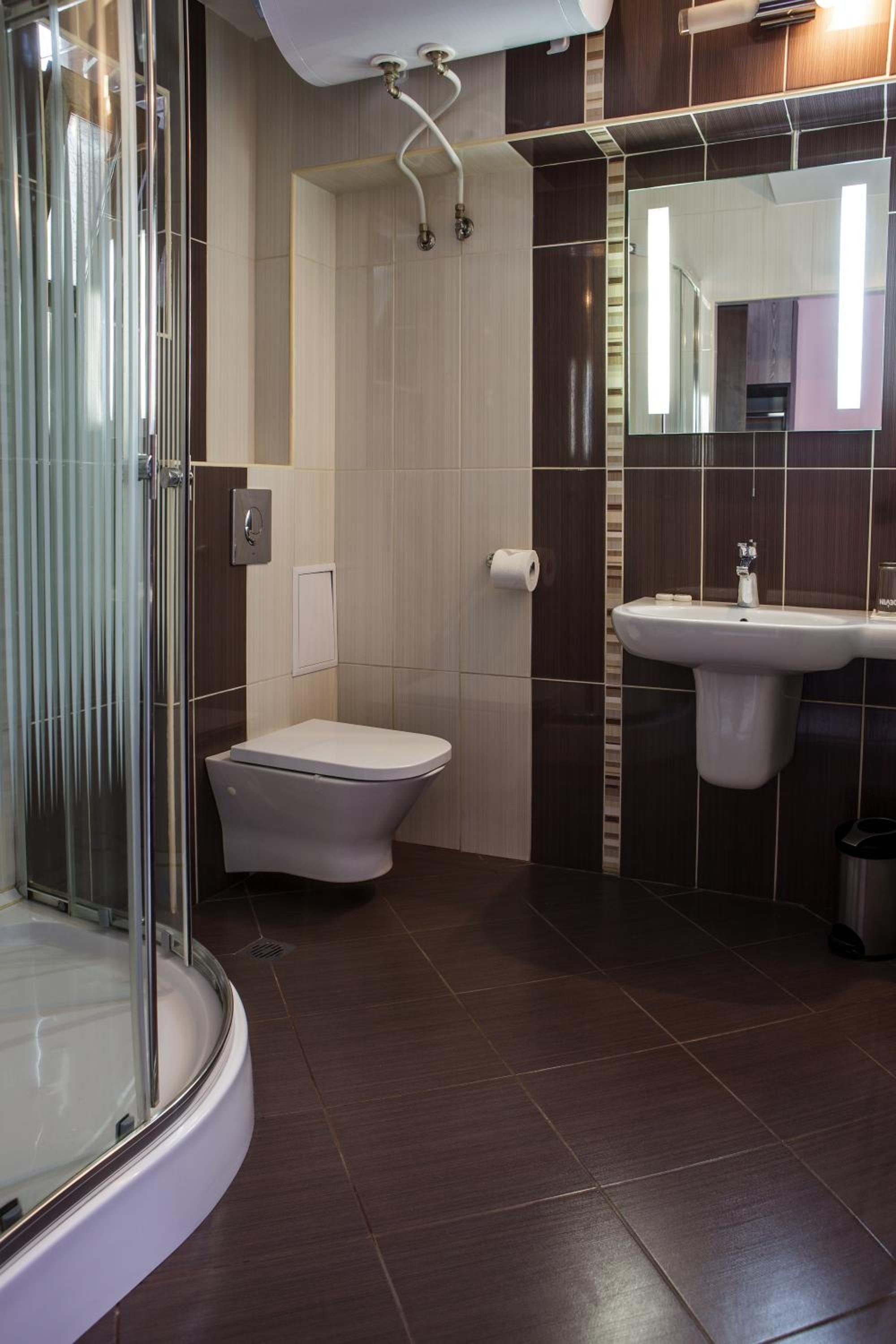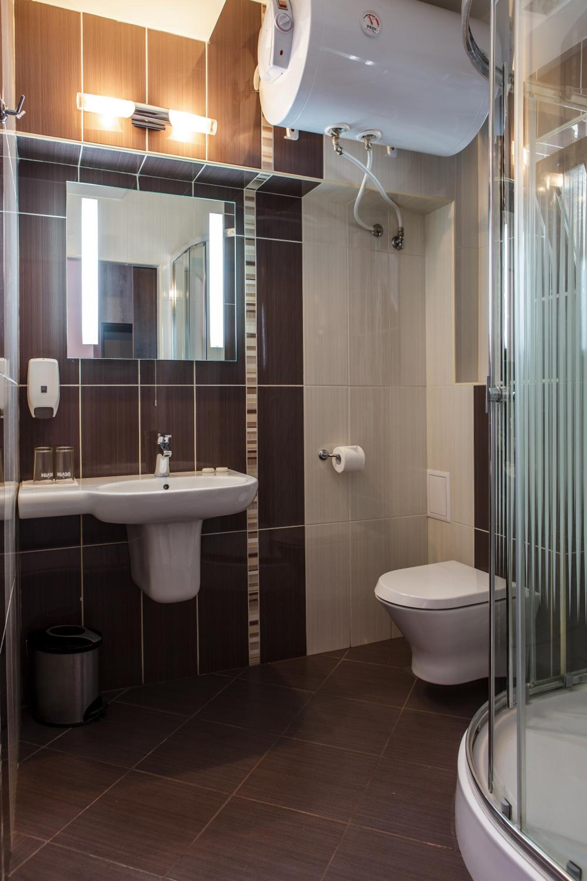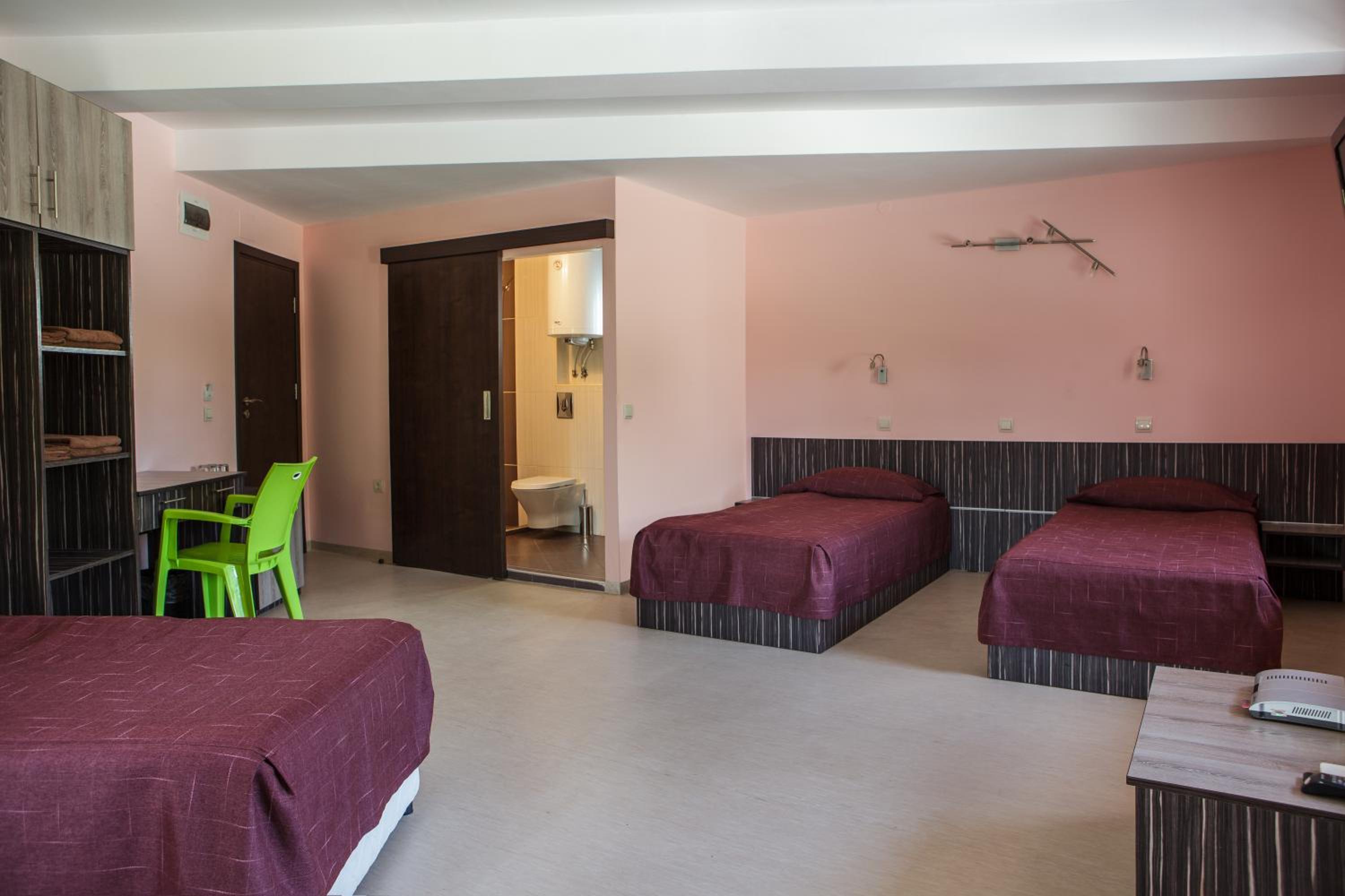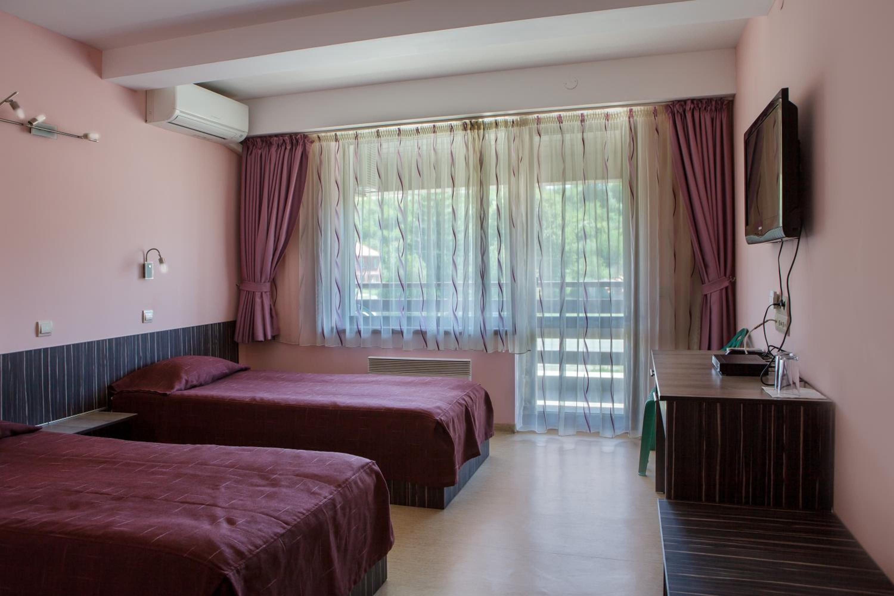 Modern Comforts: Enjoy air-conditioned rooms with free WiFi, private bathrooms, flat-screen TVs, and cozy terraces at Family Hotel Kipra.