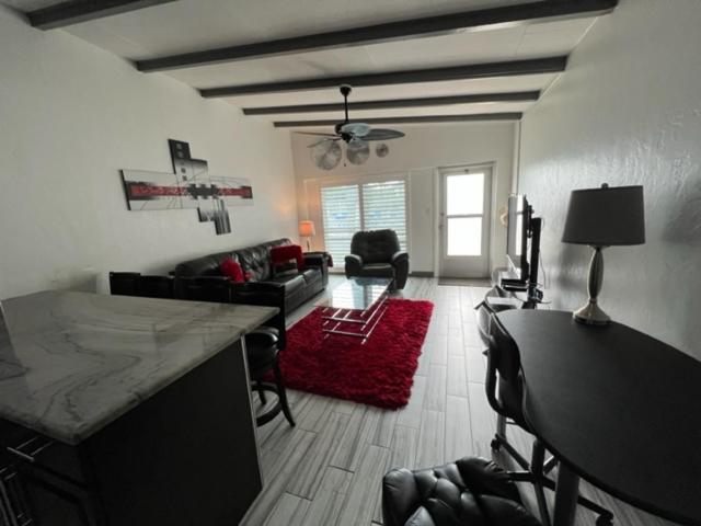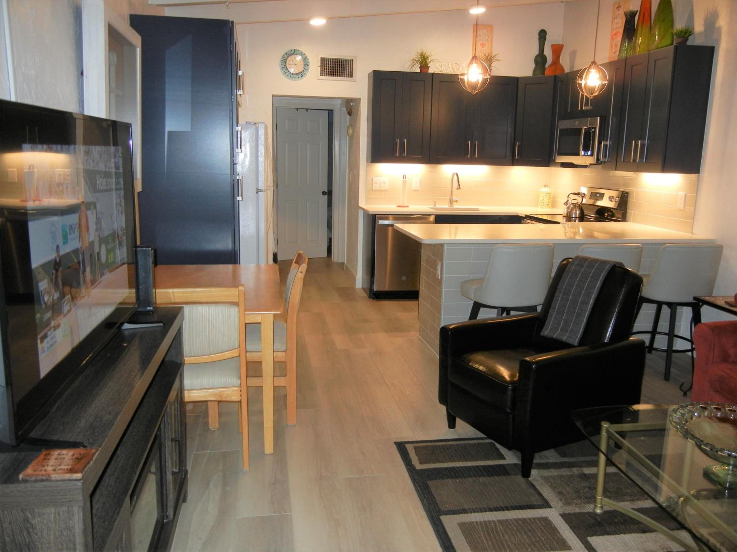 Indulge in the comfort of a fully equipped kitchen, a spacious living room with a flat-screen TV, and a private entrance for added privacy. The 1-bedroom aparthotel also features a walk-in shower, plush towels, and cozy bed linens for a relaxing stay.