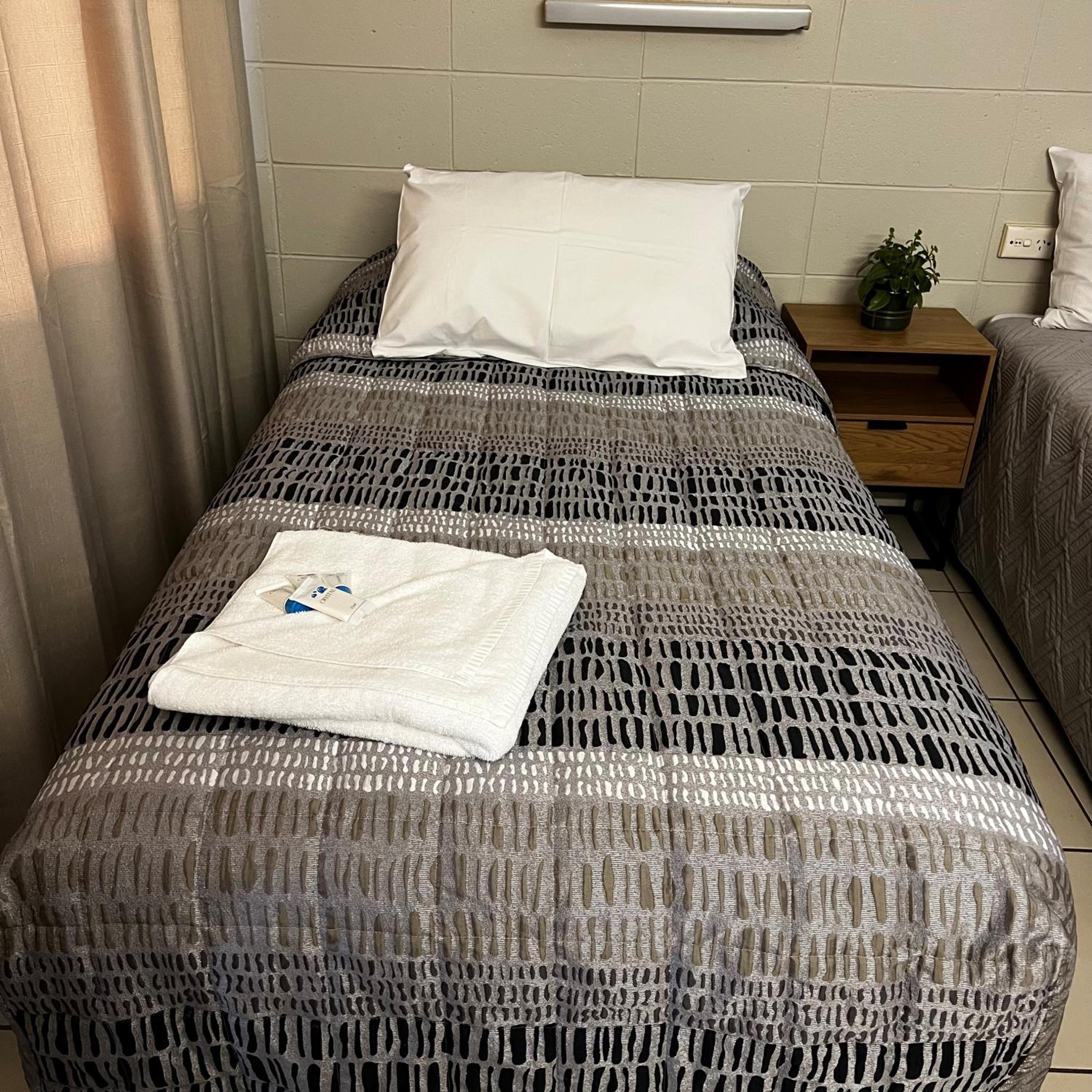 Neither of us slept well as it wasn’t possible to stop the light from the security lights outside from shining under the curtains, plus road noise is pretty bad with trucks passing by even in the small hours.