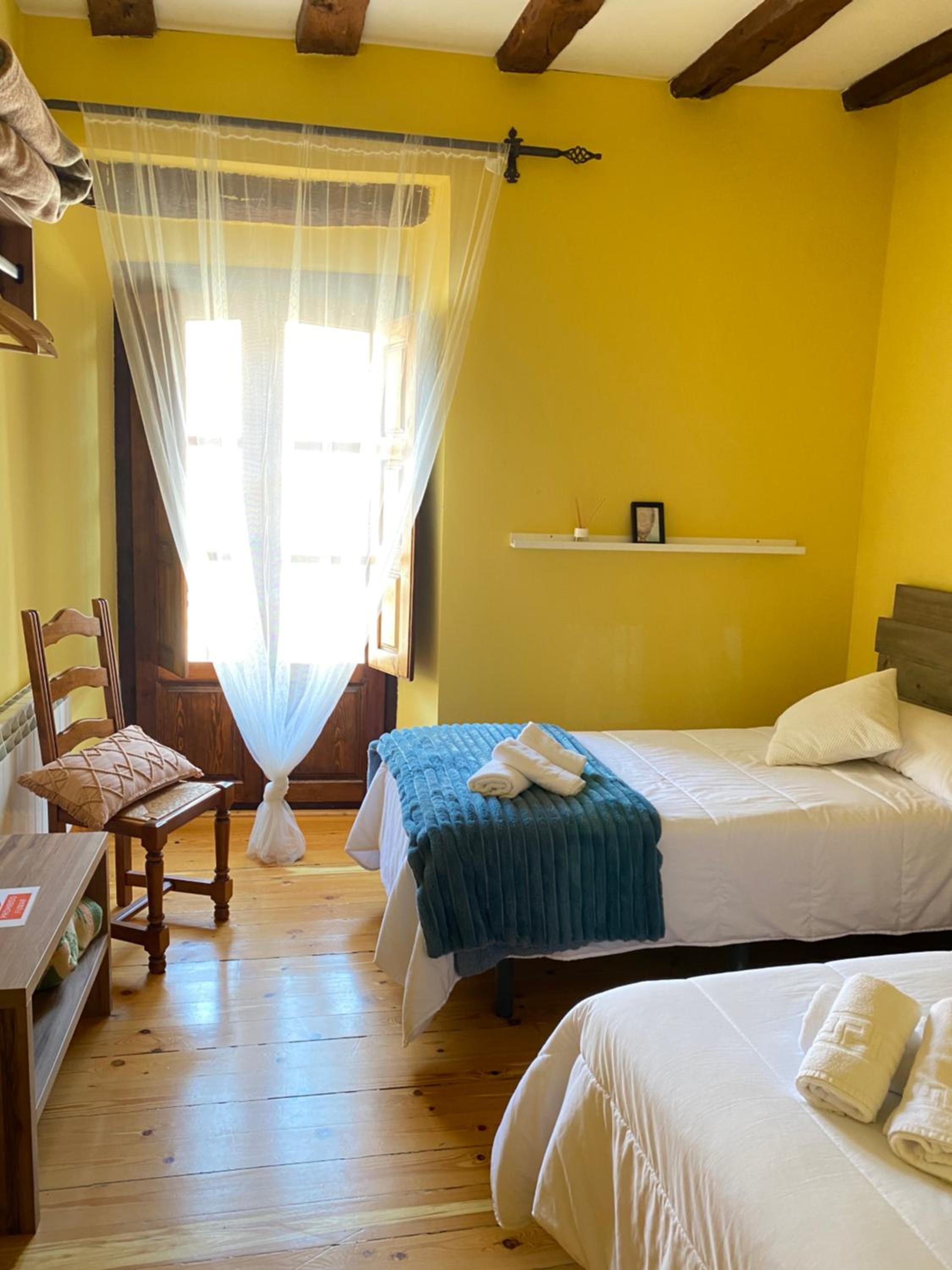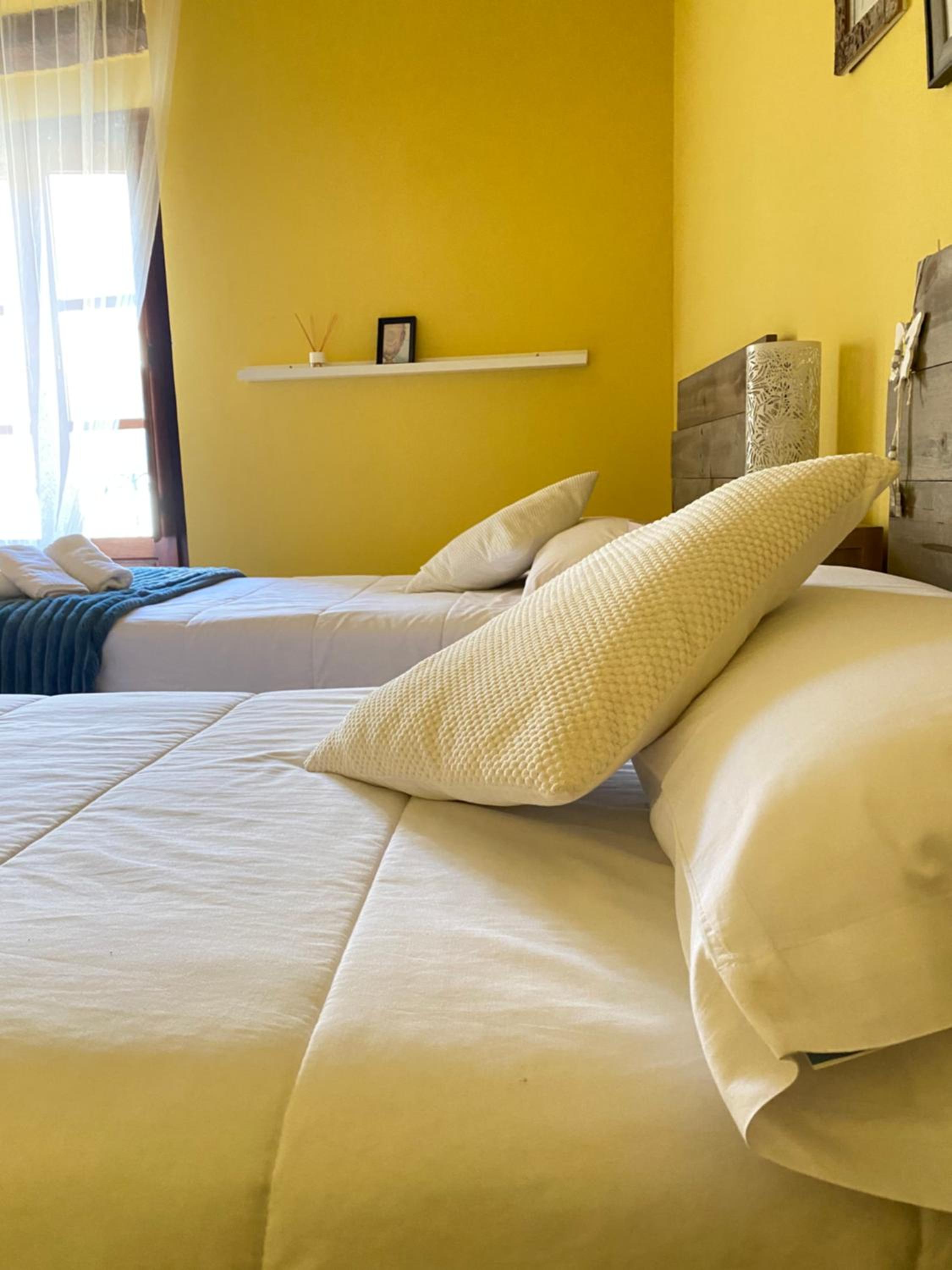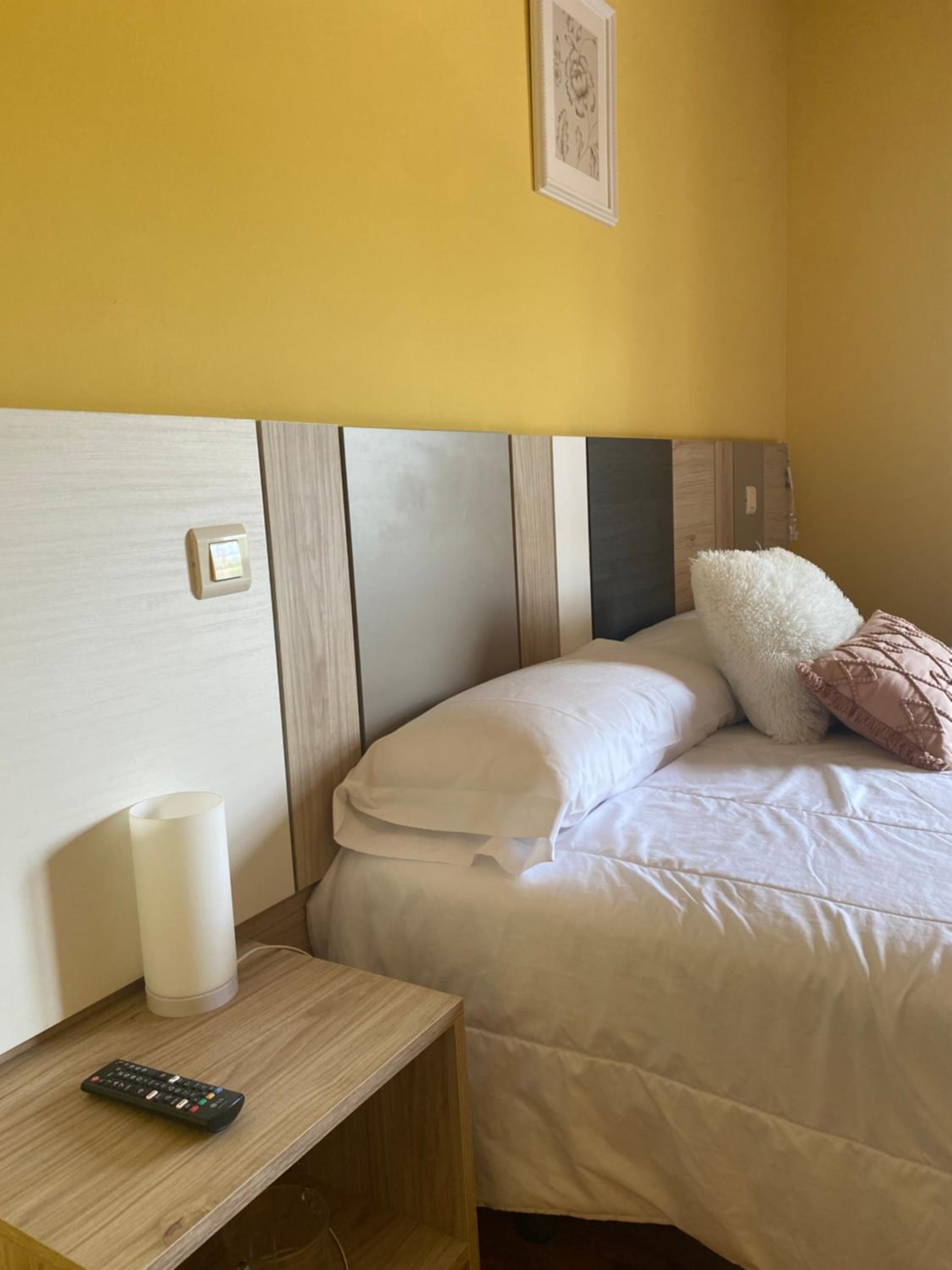 La habitación muy acogedora y cama muy cómoda, tranquilidad para poder descansar.