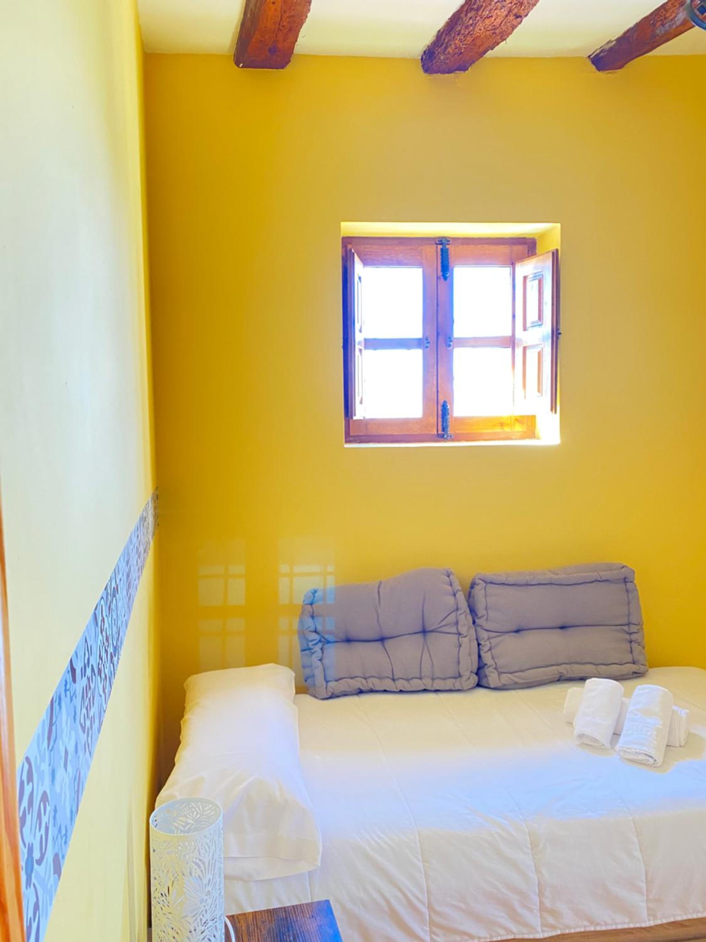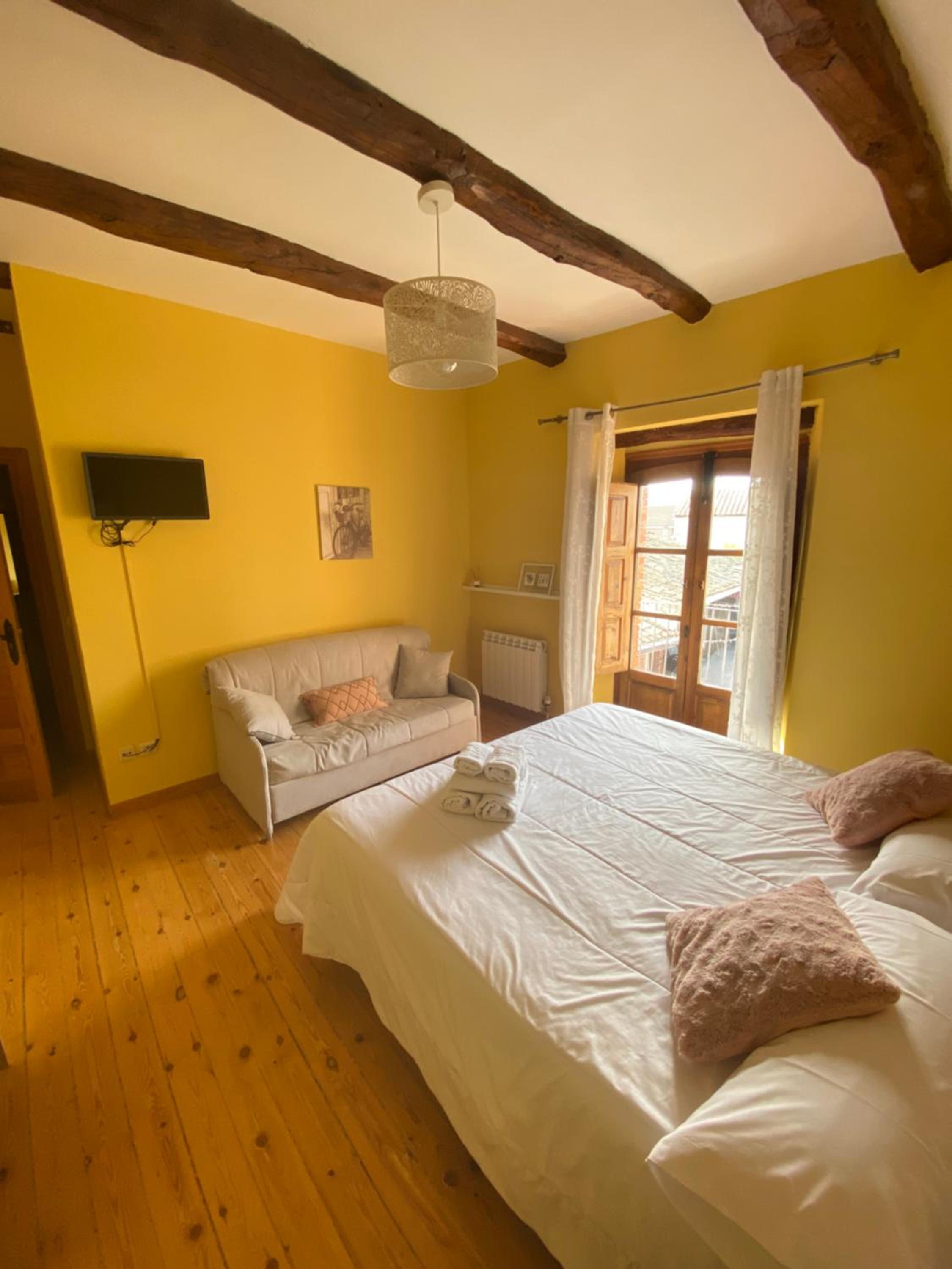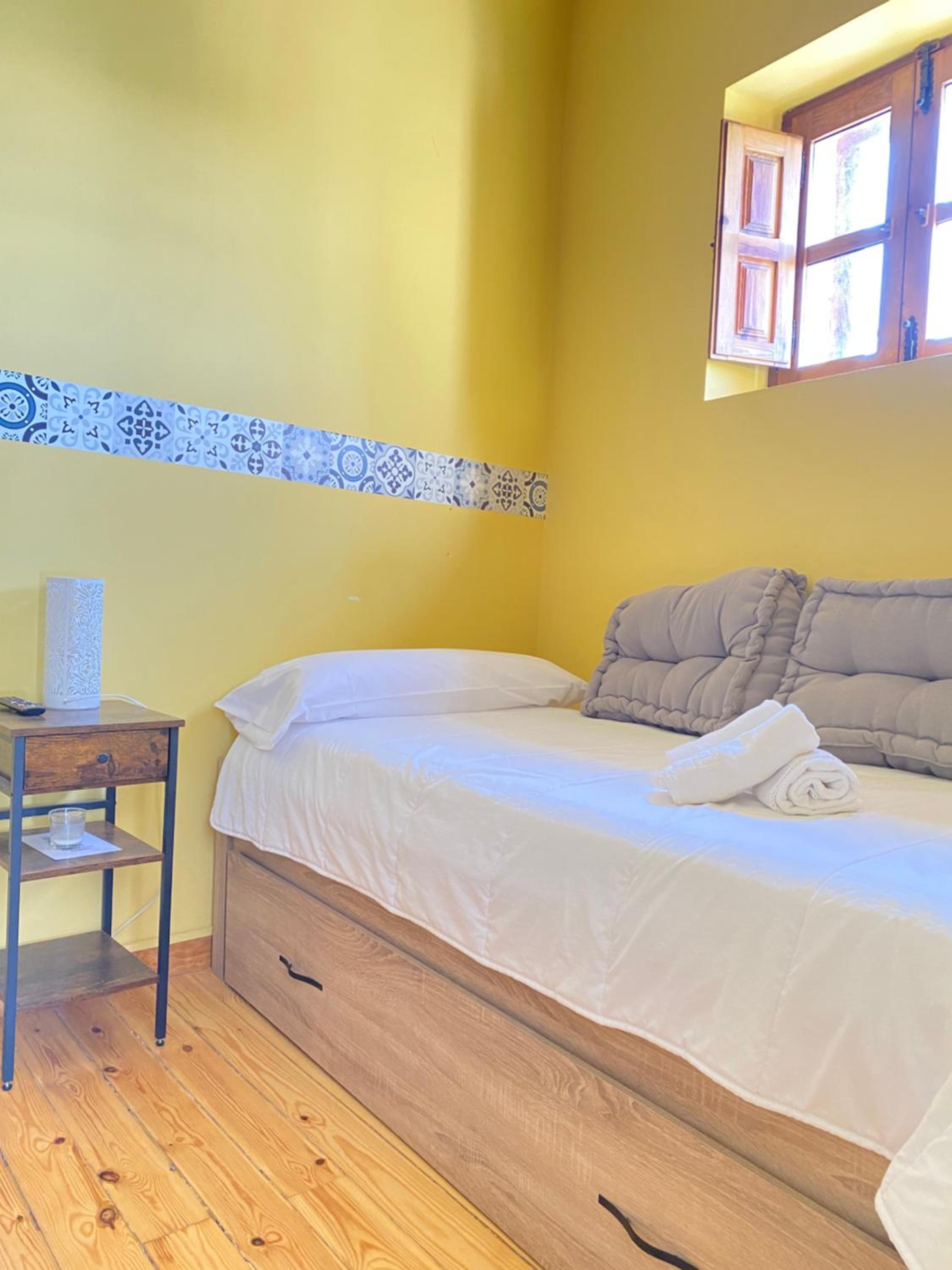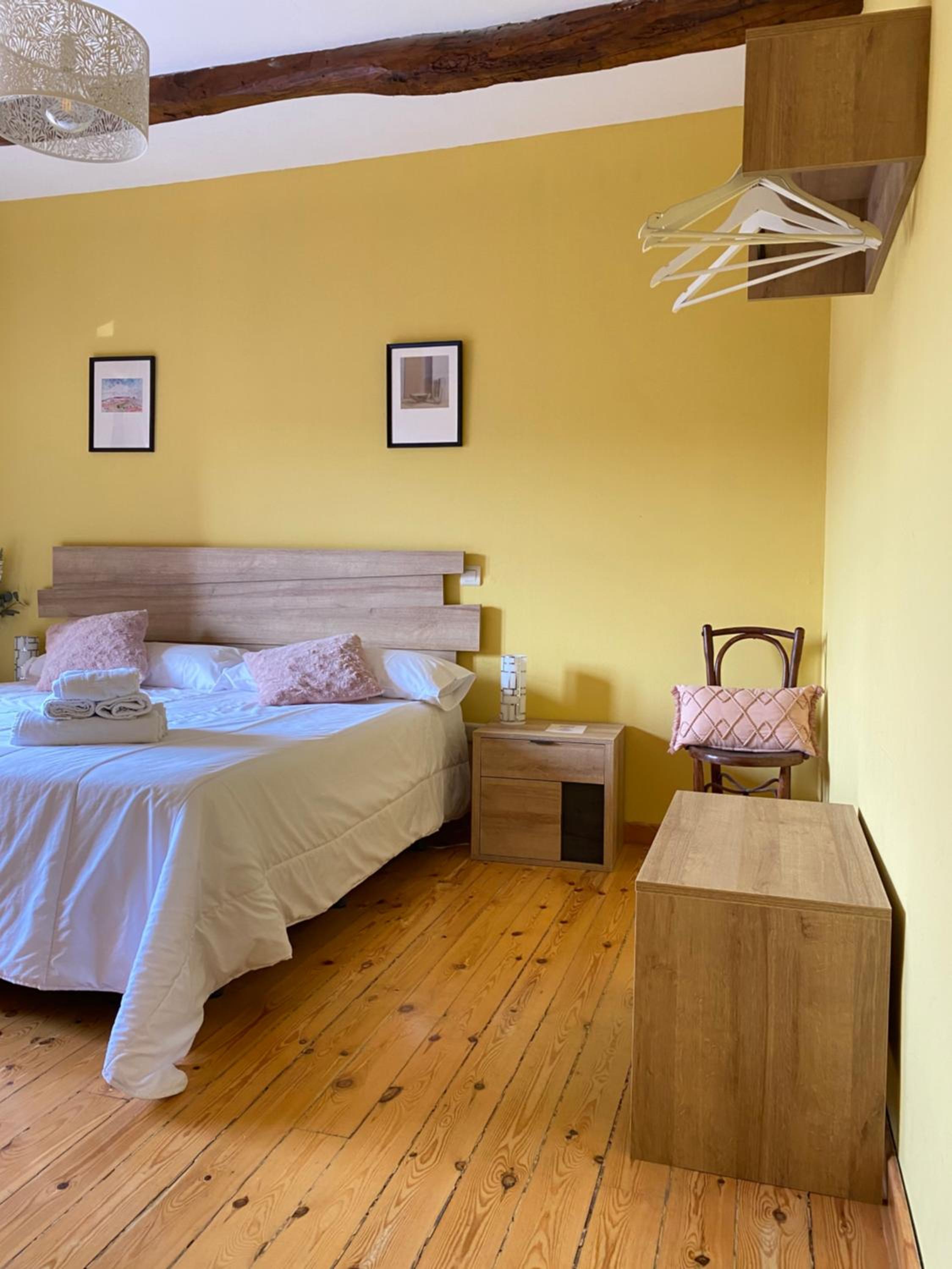 La habitación muy acogedora y cama muy cómoda, tranquilidad para poder descansar.