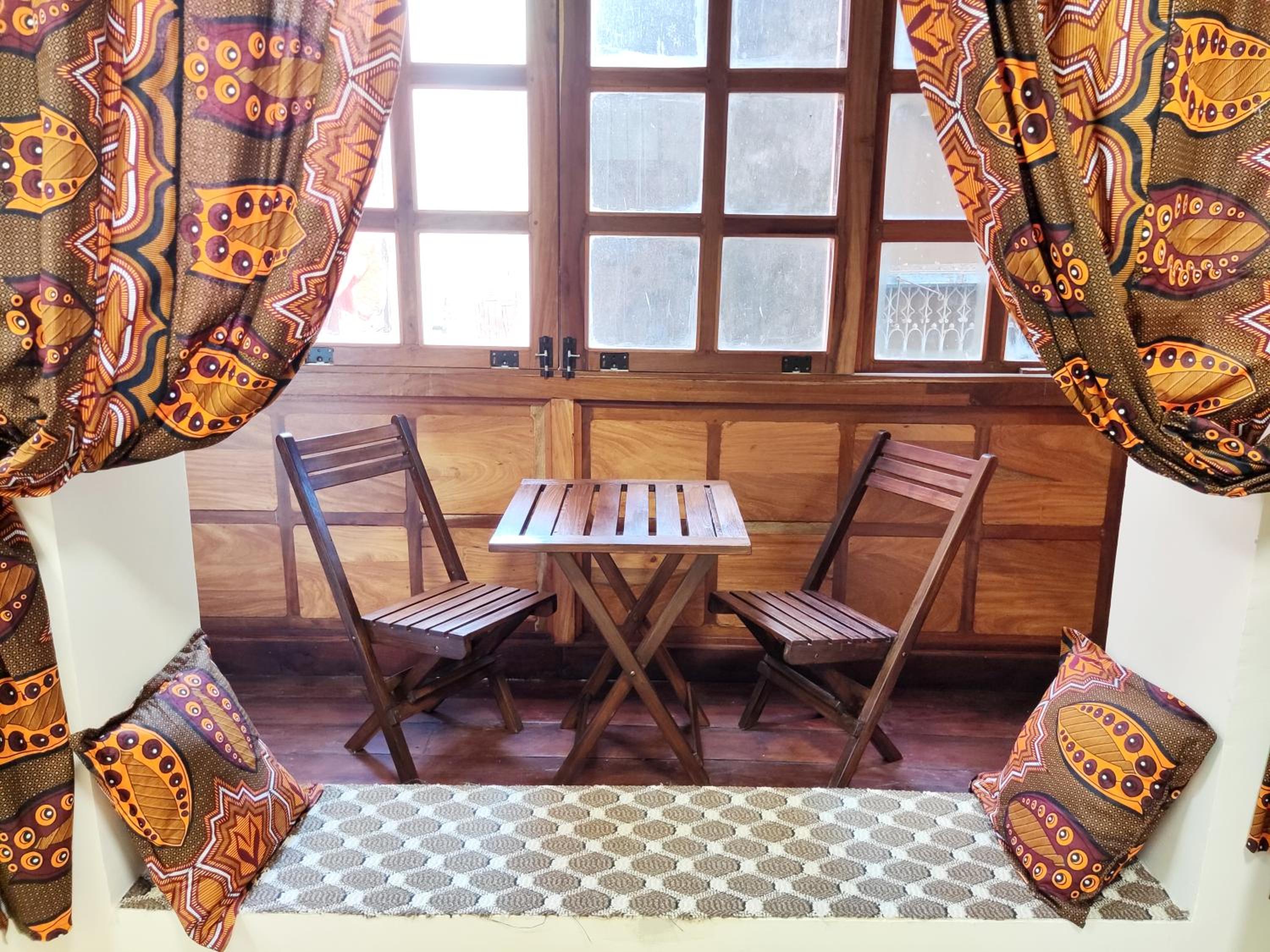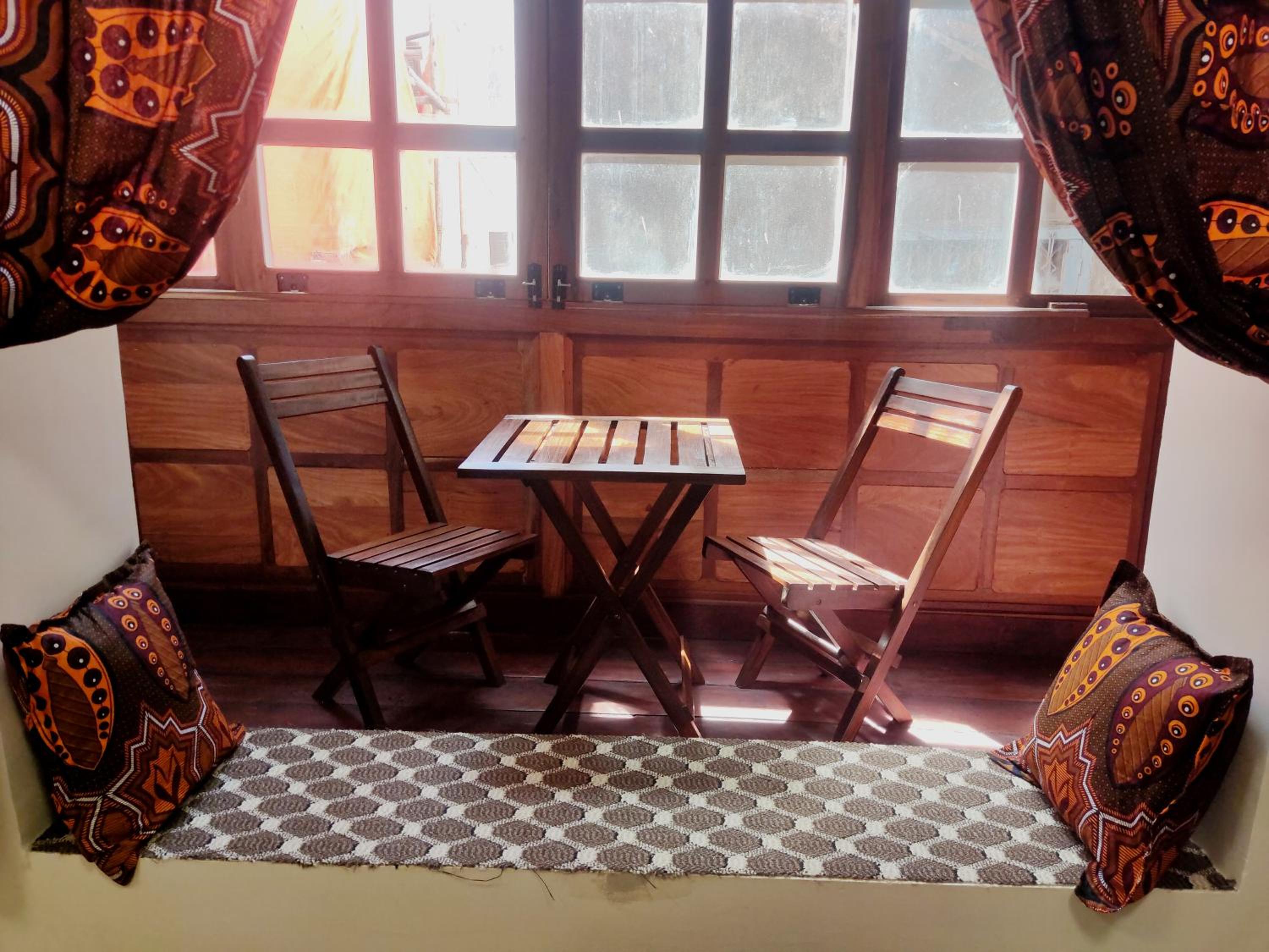 Das Zimmer hatte einen schönen Erker über den schmalen Gassen der Altstadt von Stone Town. Man war mittendrin. Es gibt eine schöne Dachterrasse, auf der das Frühstück serviert wird und man sich zwischendurch oder abends ausruhen kann. Herrlich!