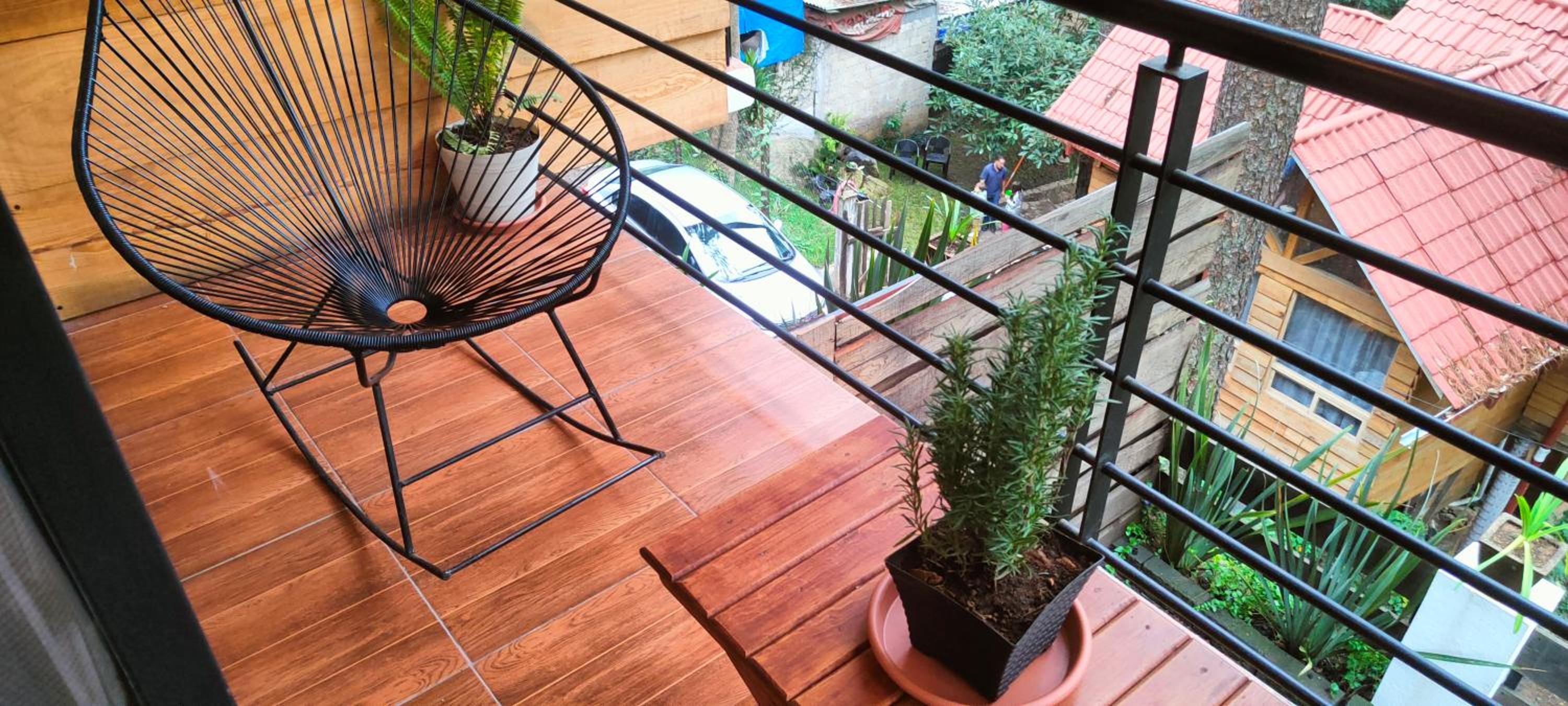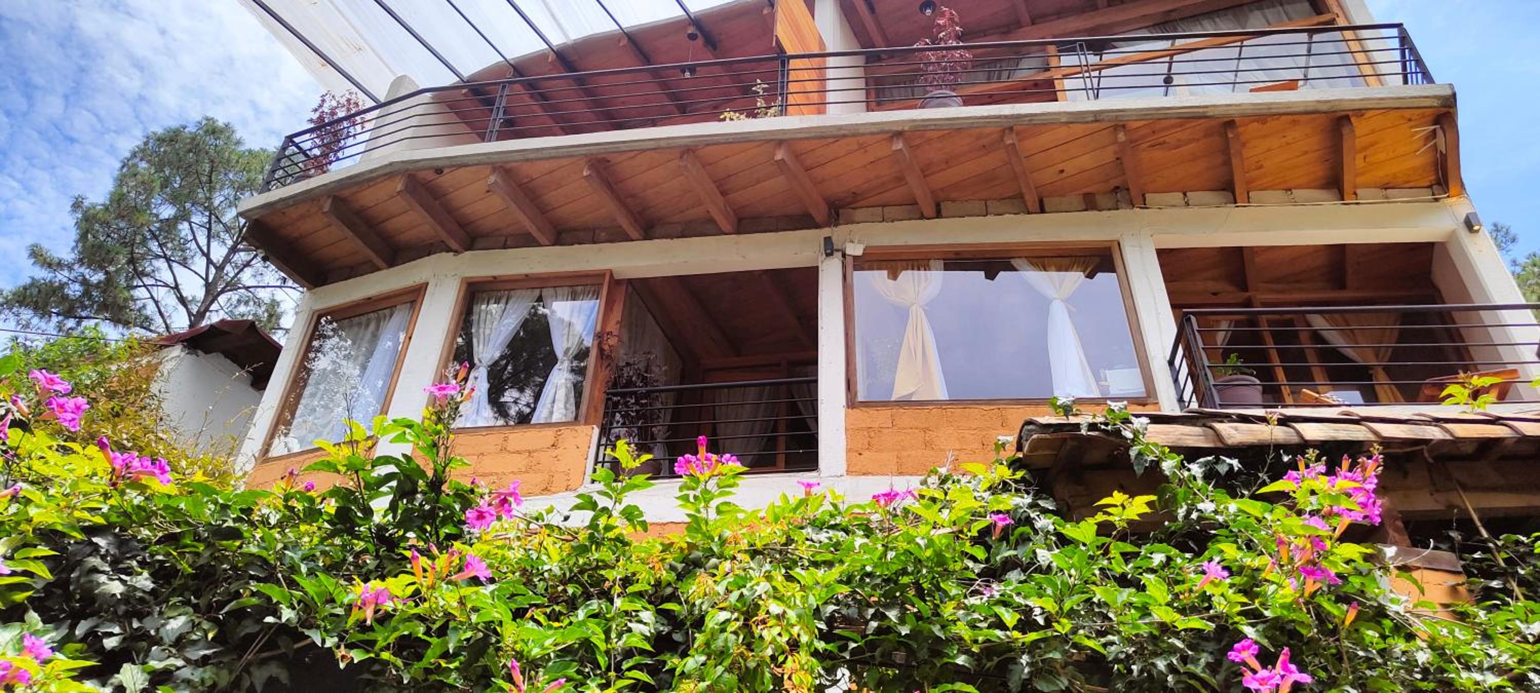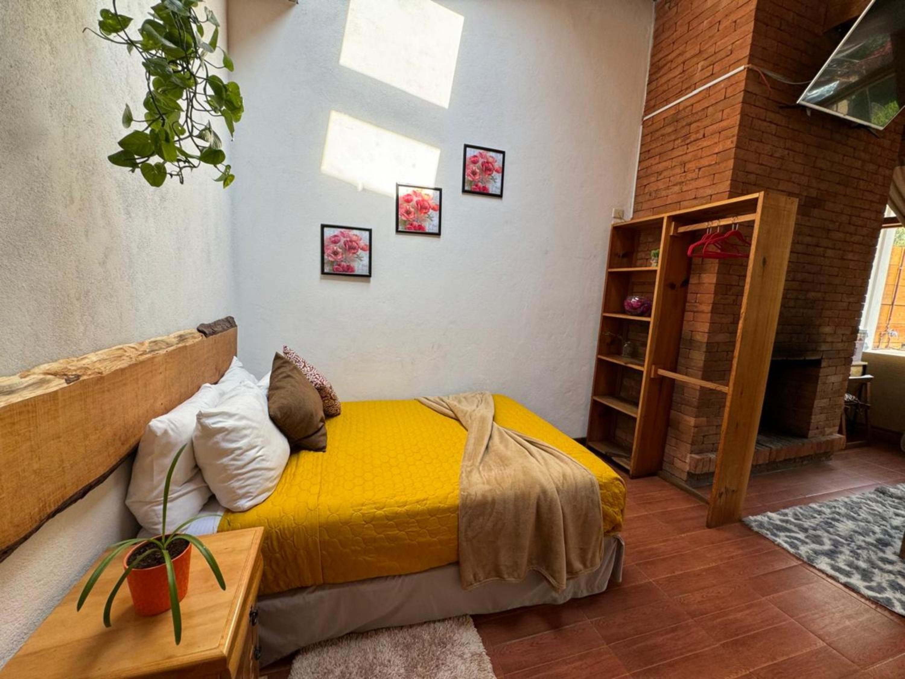 La vista de la habitación 4 es muy bonita, la cama cómoda y el.sillon frente a la fogata. Oedi decoración de cumpleaños y estuvo bonito.