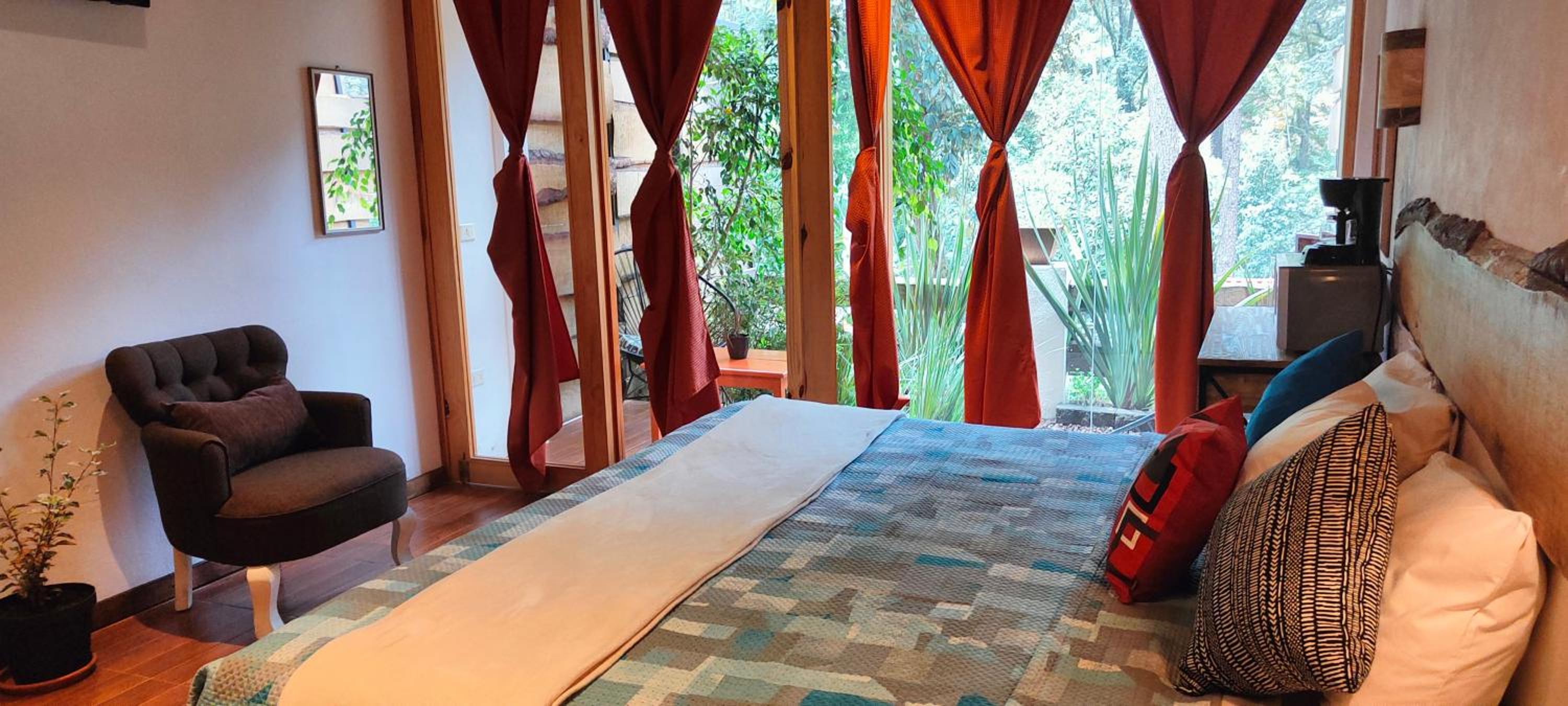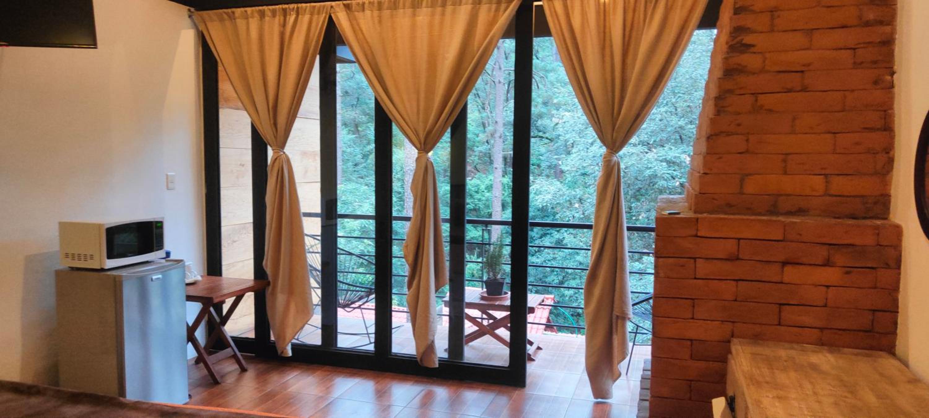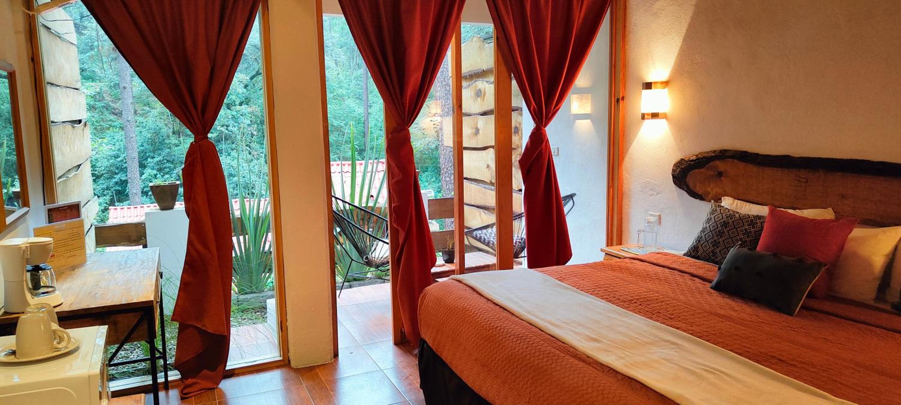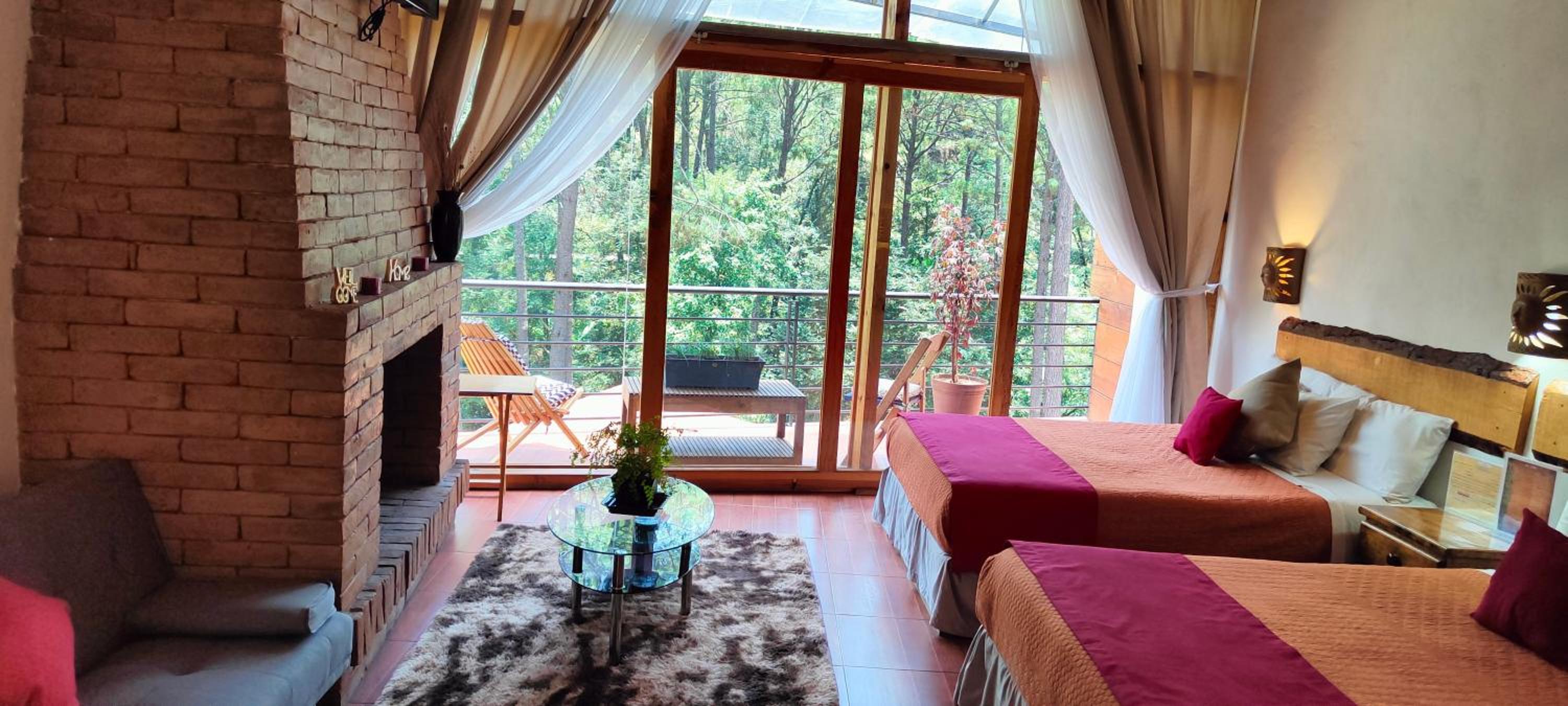 El cuarto es asombroso, tiene una vista muy bonita al bosque con total privacidad. Pasa un rio cerca que se escucha desde la terraza privada que tienen las habitaciones. La decoración general de la habitación está muy bonita. Está súper limpio, super ordenado.