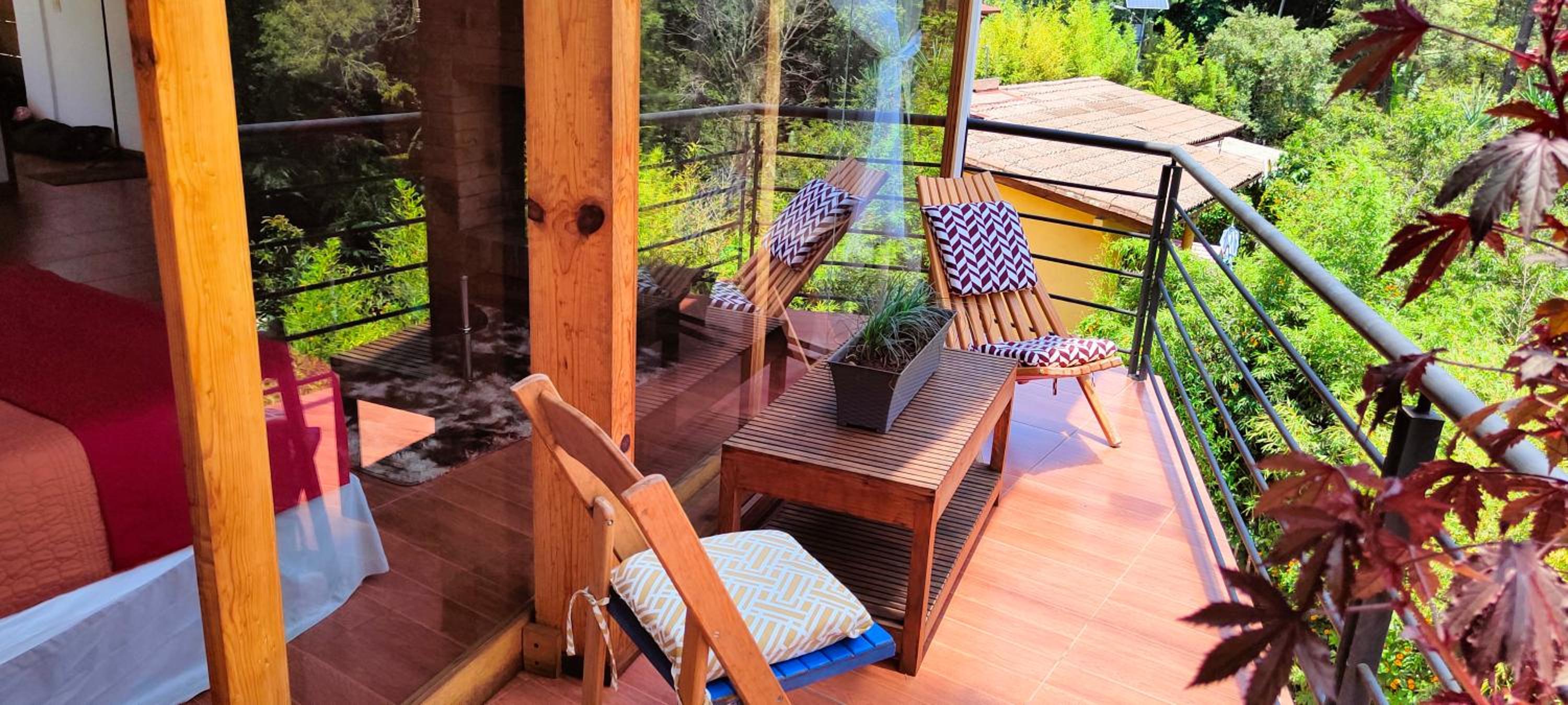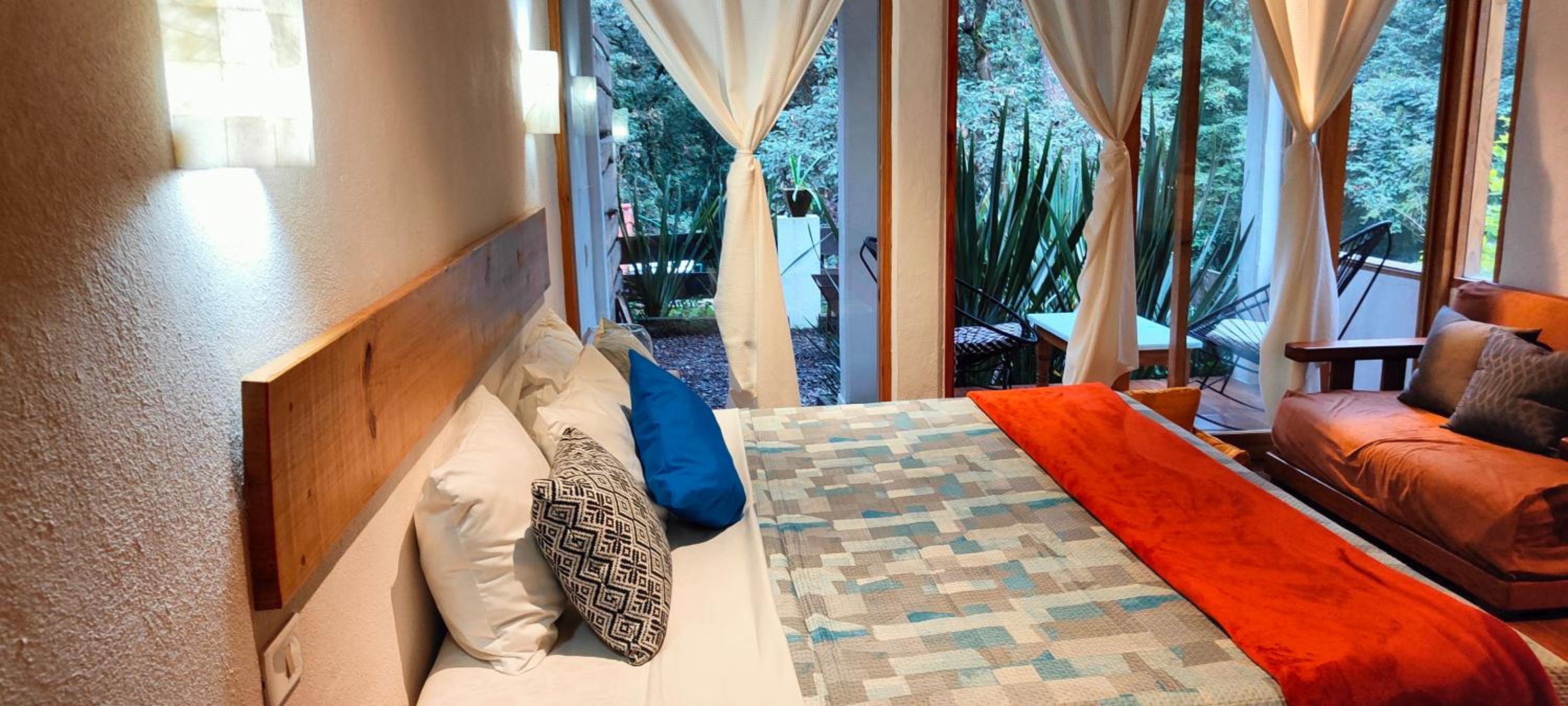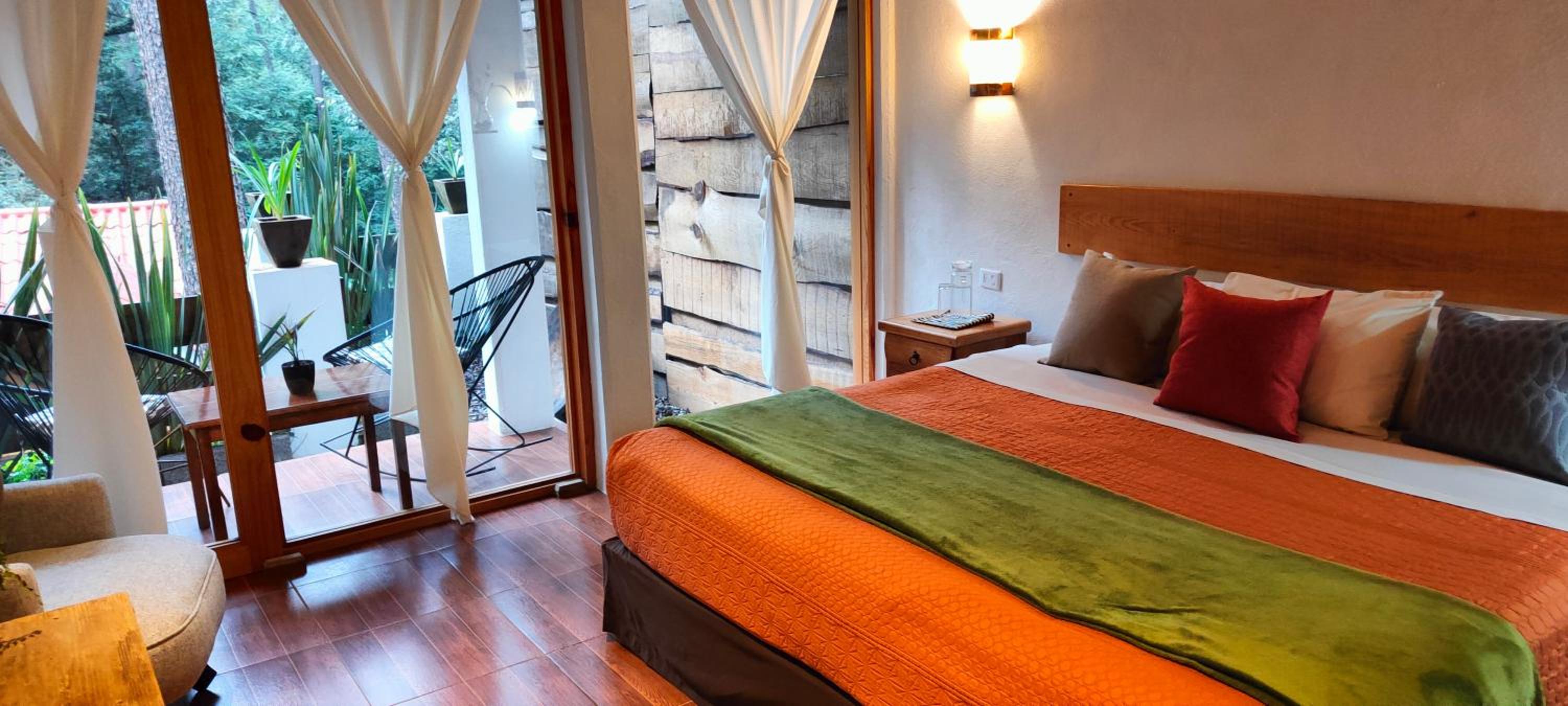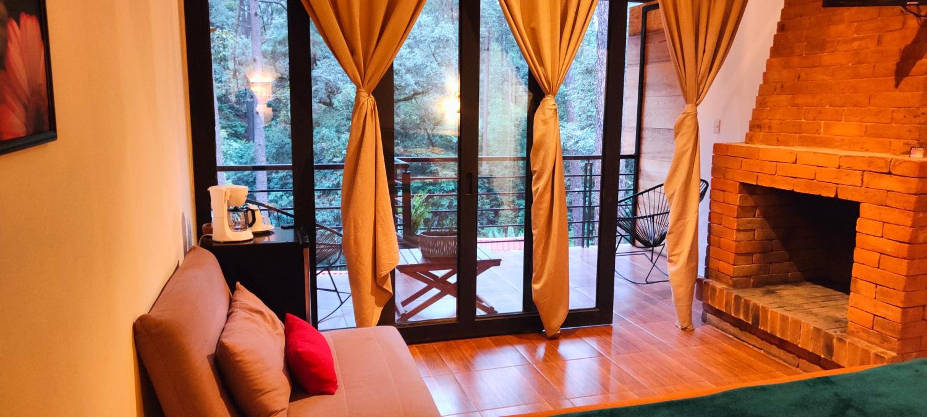 El cuarto es asombroso, tiene una vista muy bonita al bosque con total privacidad. Pasa un rio cerca que se escucha desde la terraza privada que tienen las habitaciones. La decoración general de la habitación está muy bonita. Está súper limpio, super ordenado.