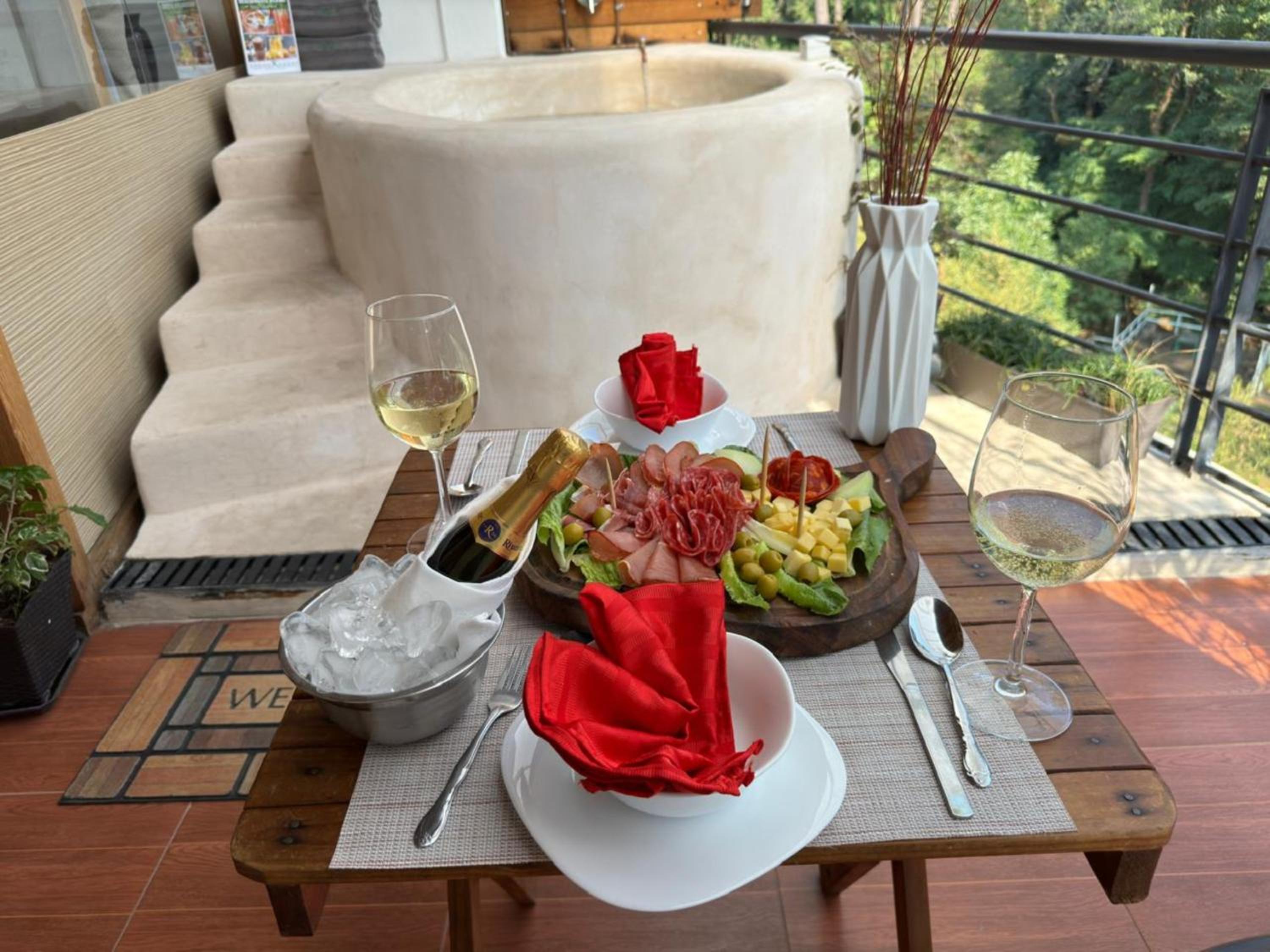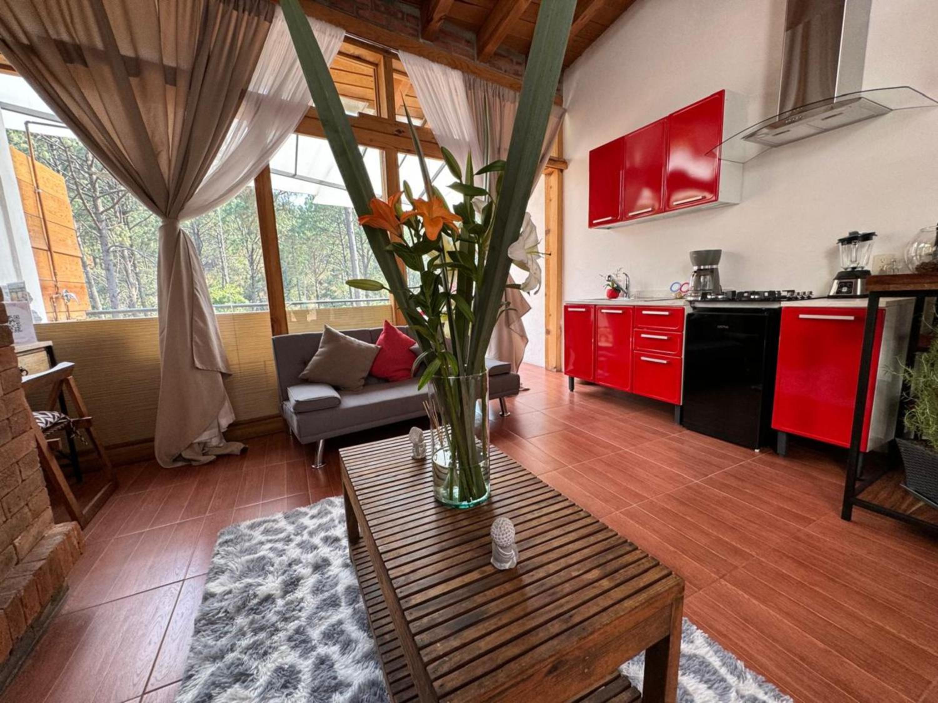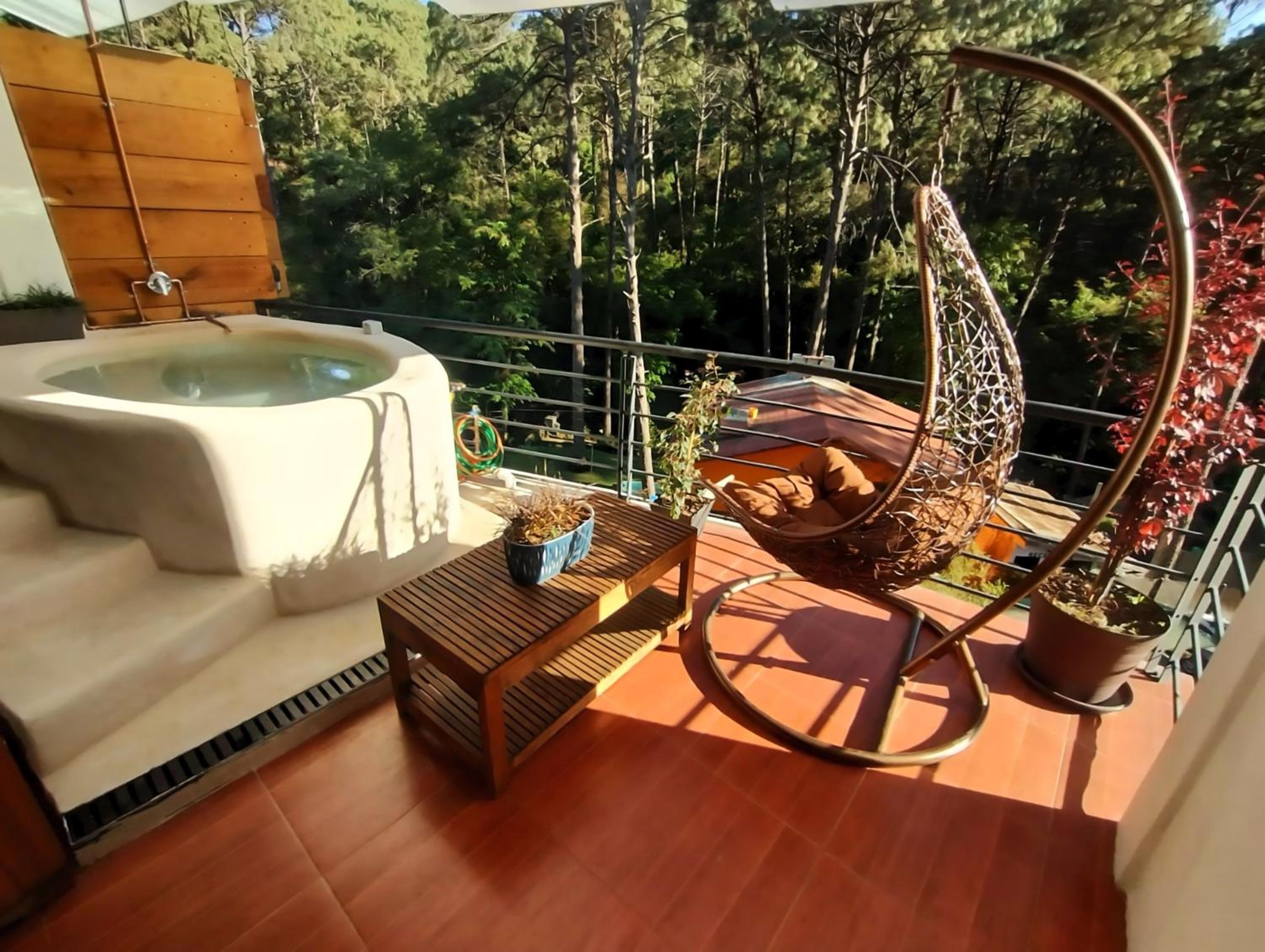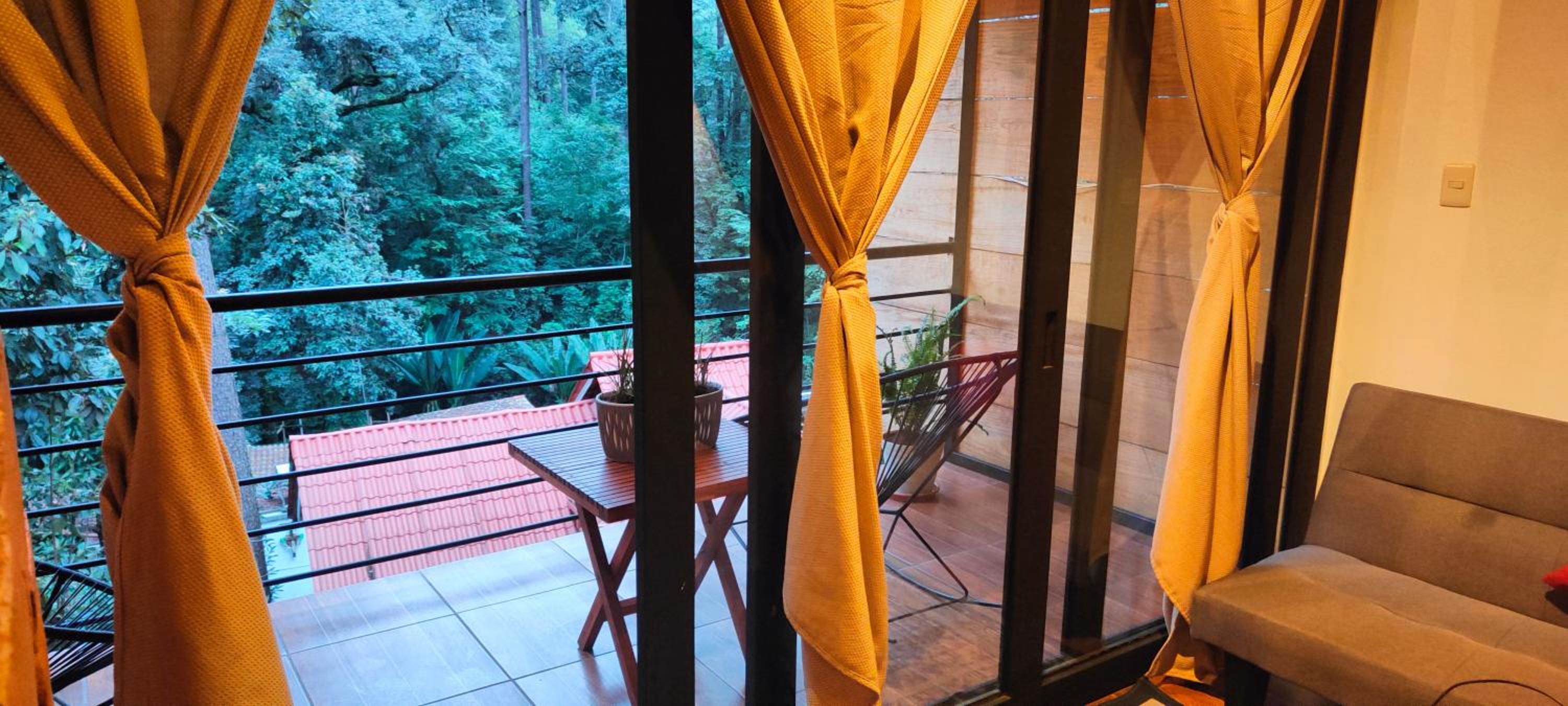 El cuarto es asombroso, tiene una vista muy bonita al bosque con total privacidad. Pasa un rio cerca que se escucha desde la terraza privada que tienen las habitaciones. La decoración general de la habitación está muy bonita. Está súper limpio, super ordenado.