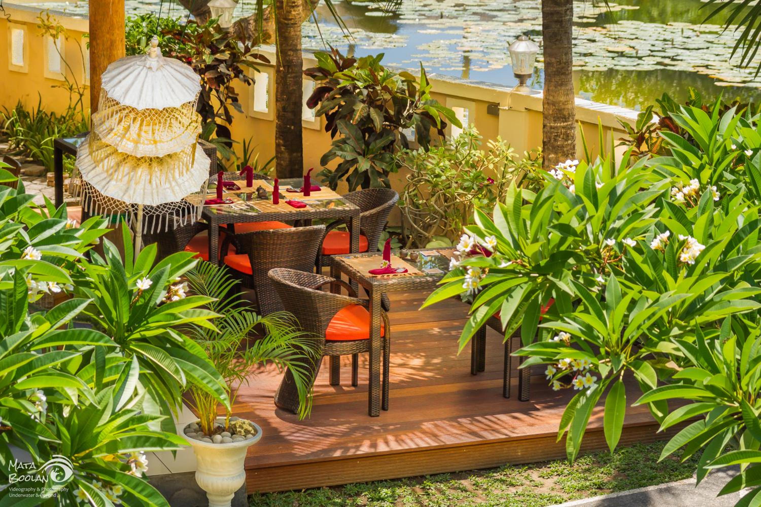 Indulge in a culinary journey at Shinta Restaurant, housed in a traditional Balinese pavilion. Enjoy a variety of local, Indonesian, and Western dishes along with all-day snacks and cocktails. Convenience is key with free Wi-Fi, tour bookings, car rentals, and airport pick-up services all available at your fingertips.