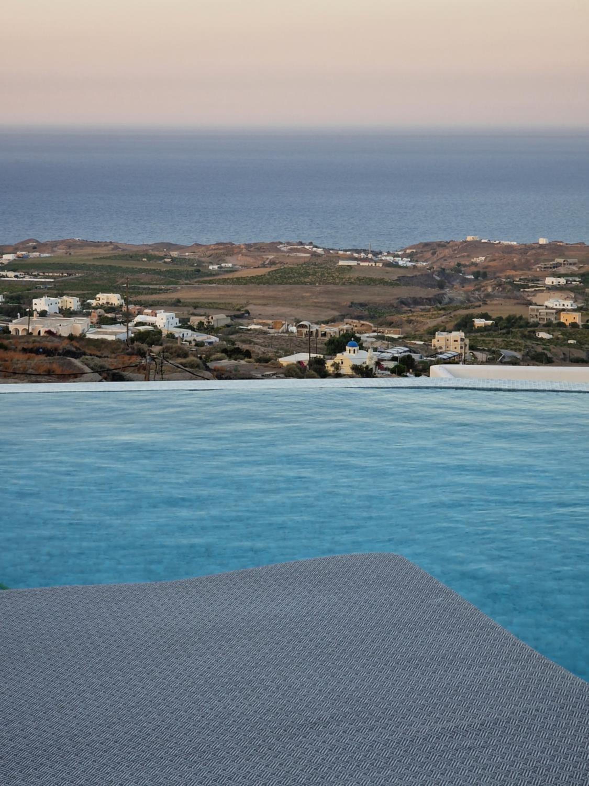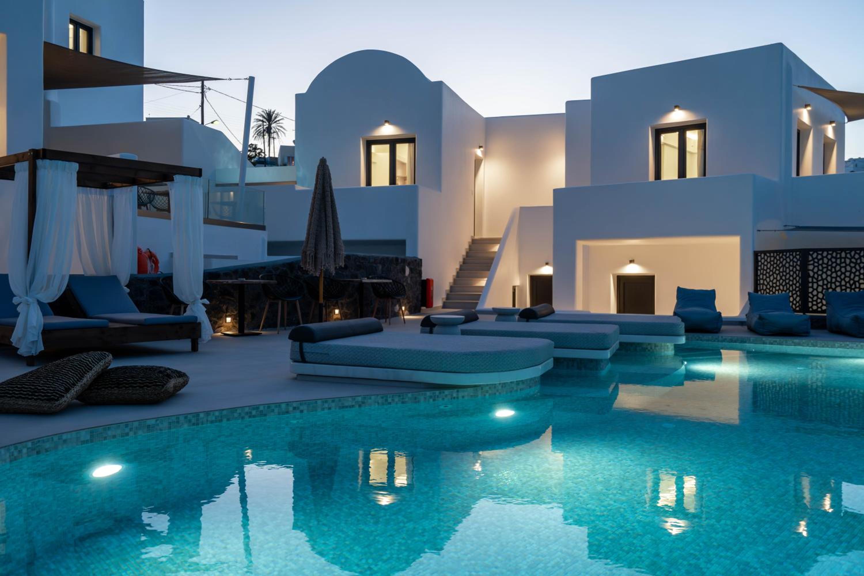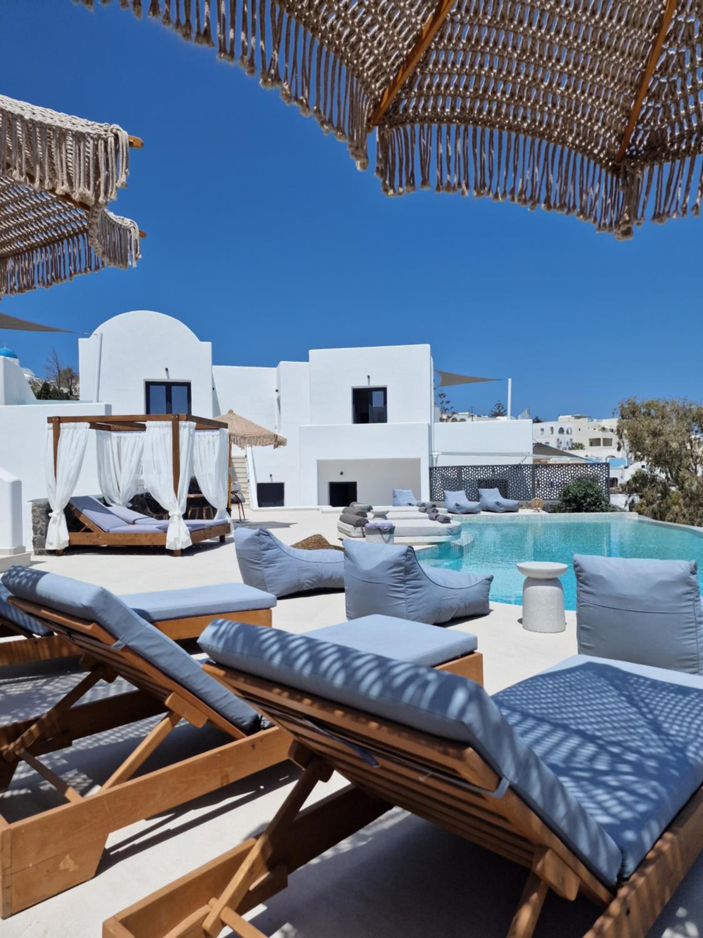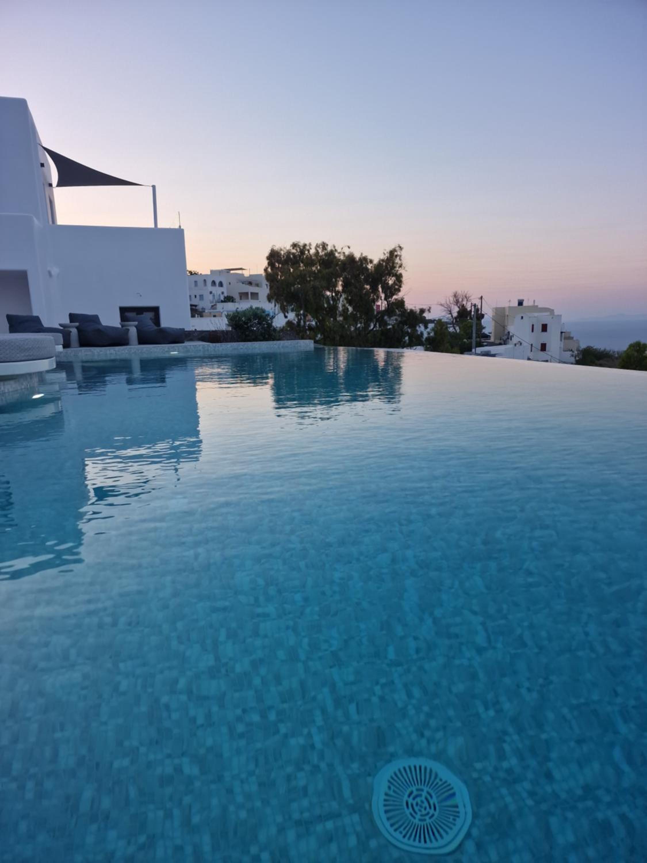 Very high standard of accommodation. Pool area very well furnished and comfortable. The room was immaculate with very comfortable bed and amazing shower. The hot tub on our balcony was a lovely addition and always at the perfect temperature. The staff were incredible especially Eva. She arranged a lovely surprise with my fiancé for my birthday and throughout our stay she was outstanding. She arranged our airport transfers and buggy hire. Property has a great location about a ten minute walk to the center of Fira but lovely restaurants next to the property and a mini market across the road. There was a very reasonably priced selection of drinks at reception and Eva always had ice, glasses, snacks on hand which was a lovely touch. I cannot recommend this property highly enough. You will not be disappointed. We are already planning our return visit.