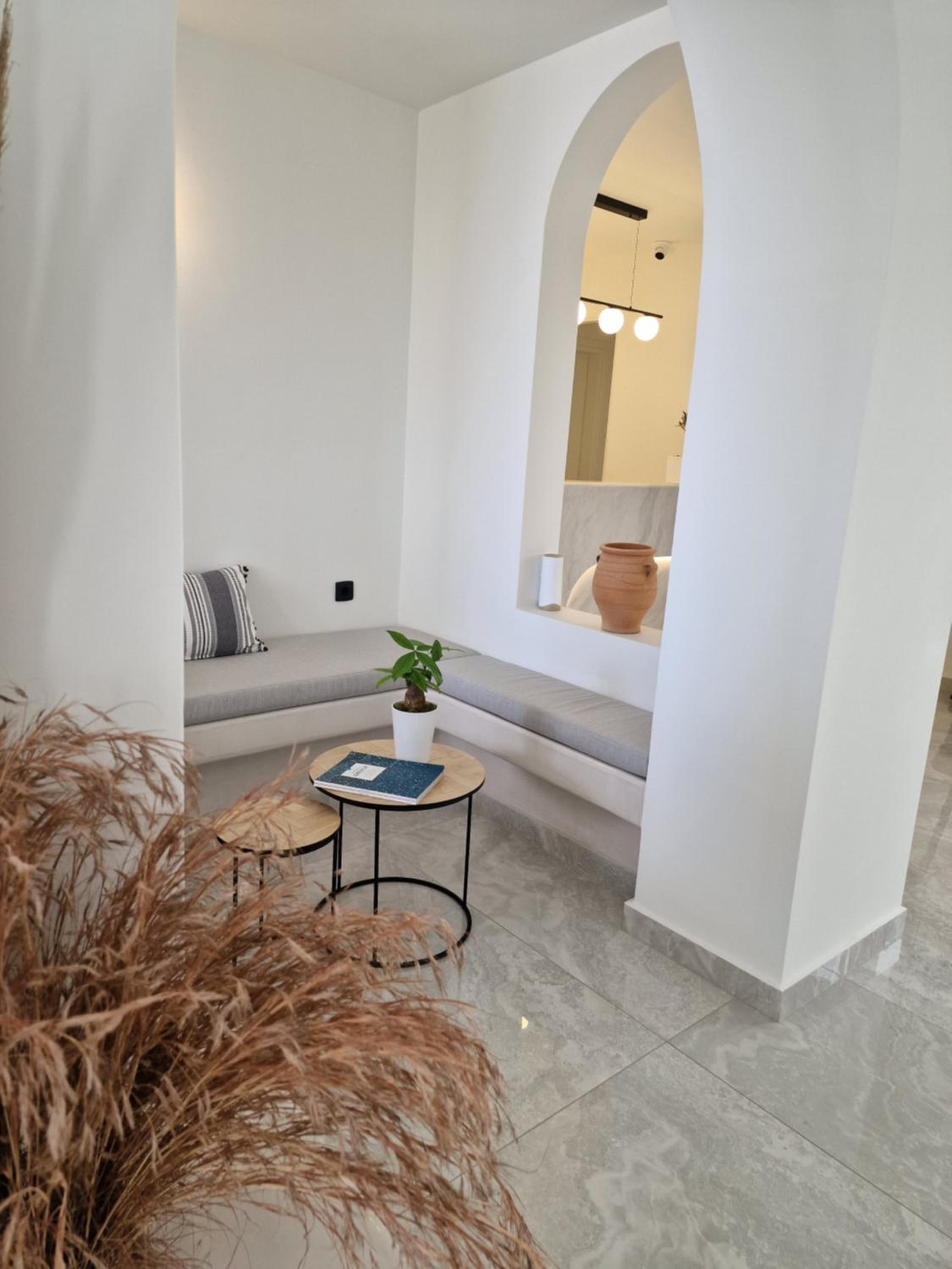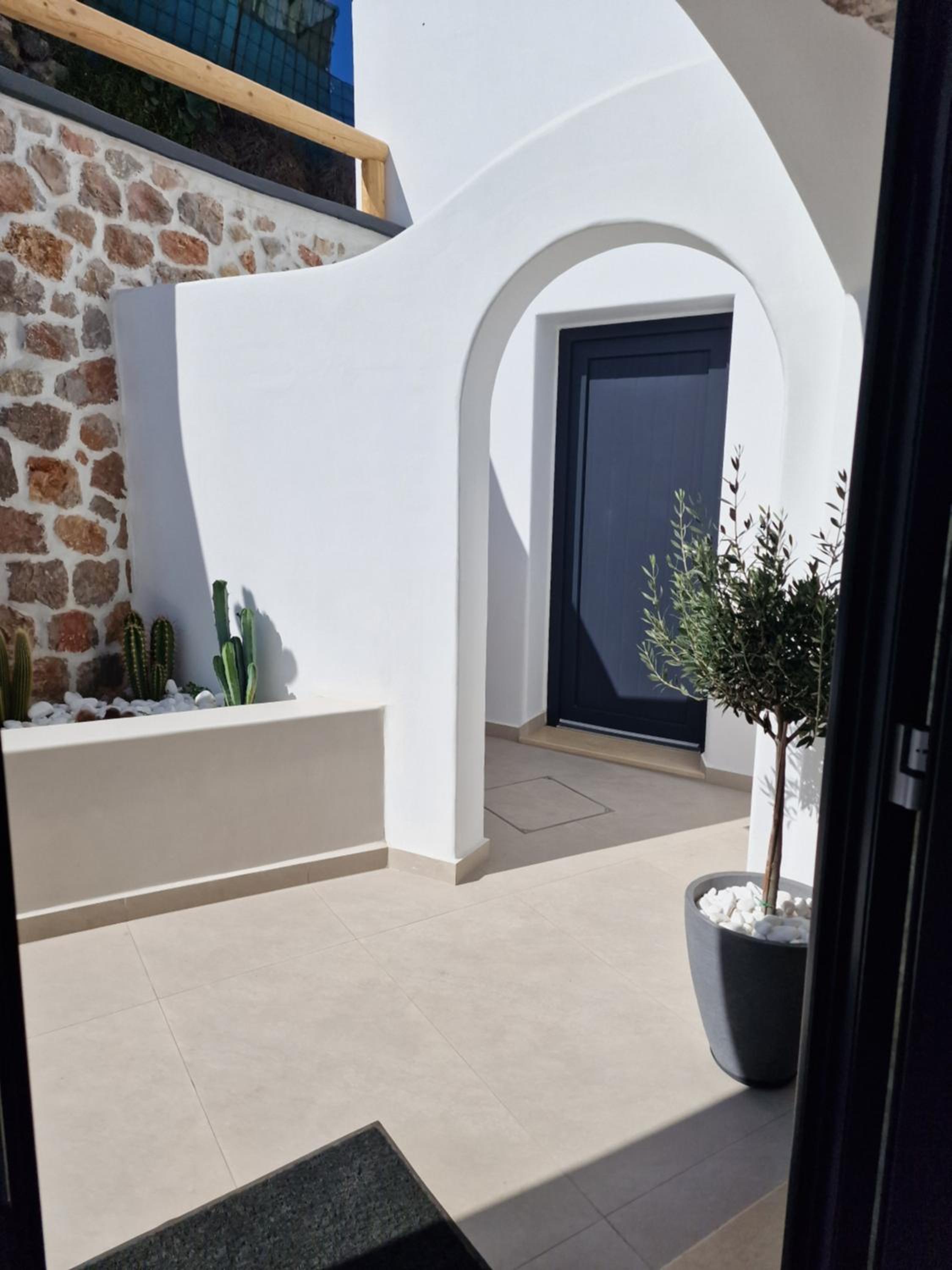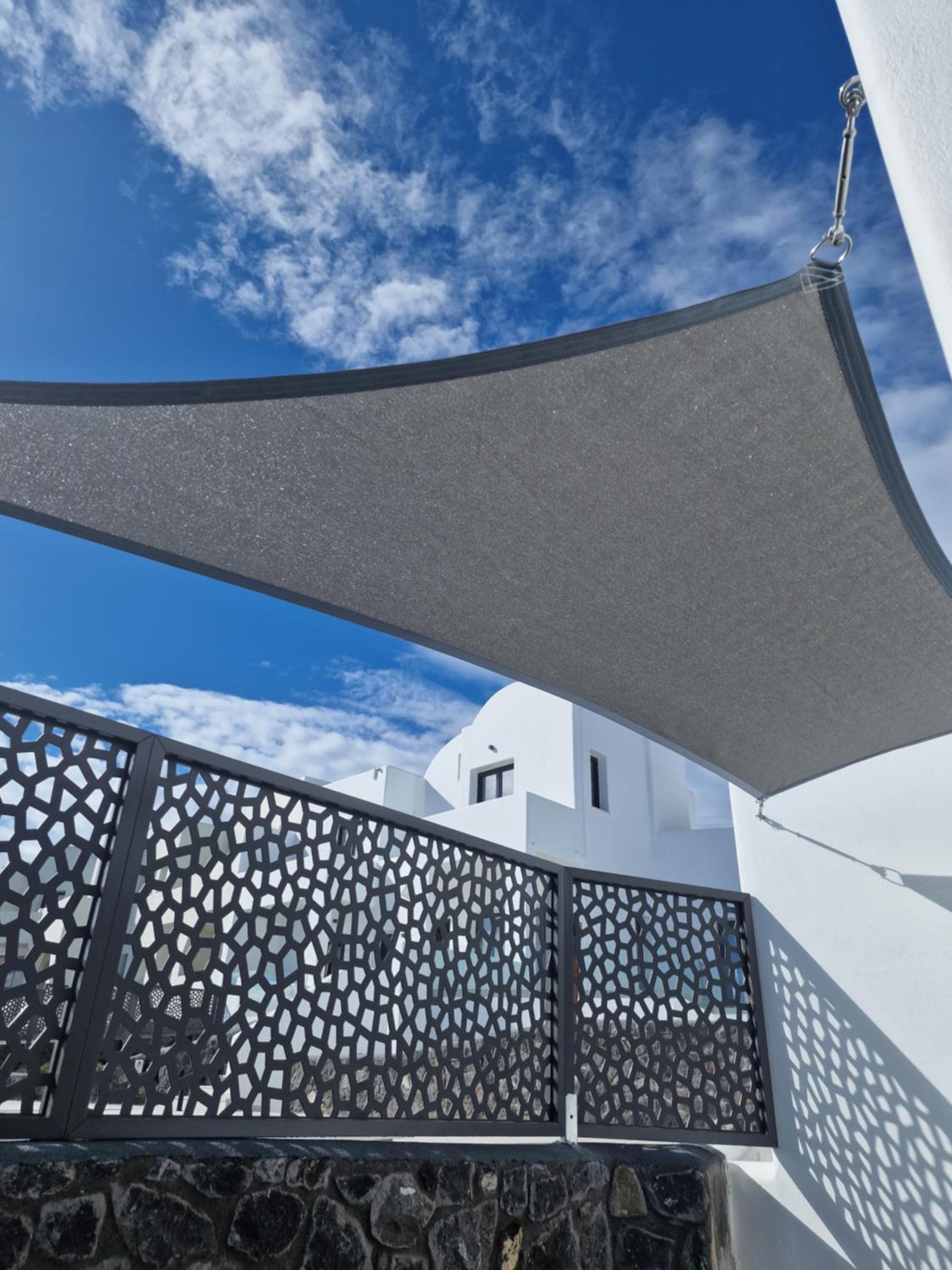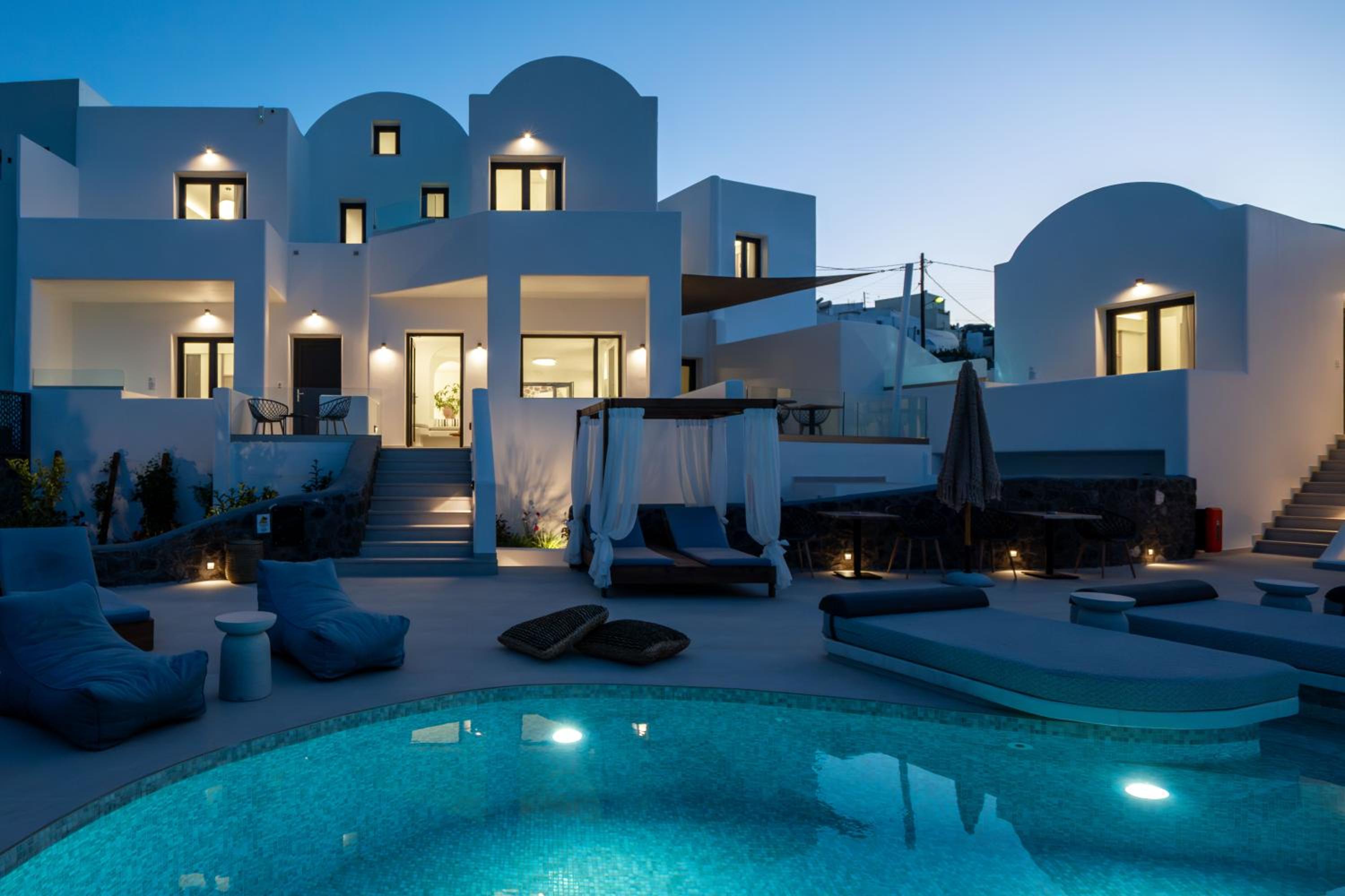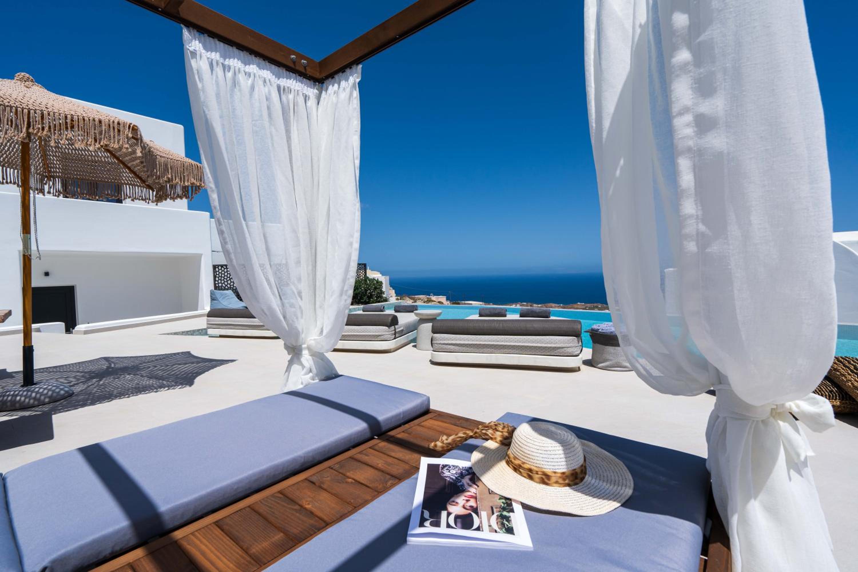 Very high standard of accommodation. Pool area very well furnished and comfortable. The room was immaculate with very comfortable bed and amazing shower. The hot tub on our balcony was a lovely addition and always at the perfect temperature. The staff were incredible especially Eva. She arranged a lovely surprise with my fiancé for my birthday and throughout our stay she was outstanding. She arranged our airport transfers and buggy hire. Property has a great location about a ten minute walk to the center of Fira but lovely restaurants next to the property and a mini market across the road. There was a very reasonably priced selection of drinks at reception and Eva always had ice, glasses, snacks on hand which was a lovely touch. I cannot recommend this property highly enough. You will not be disappointed. We are already planning our return visit.