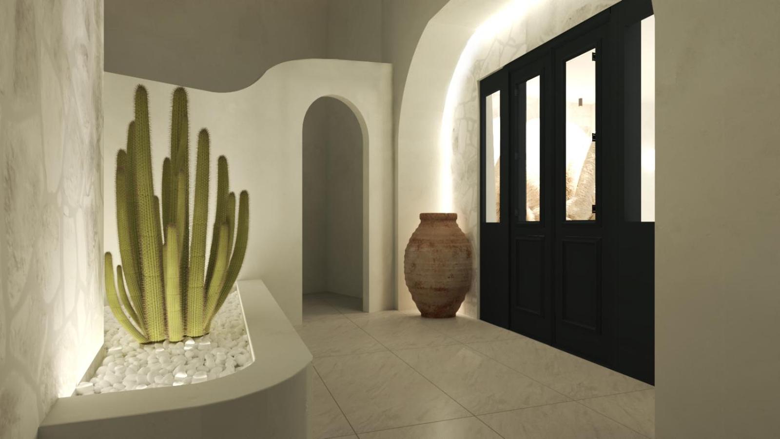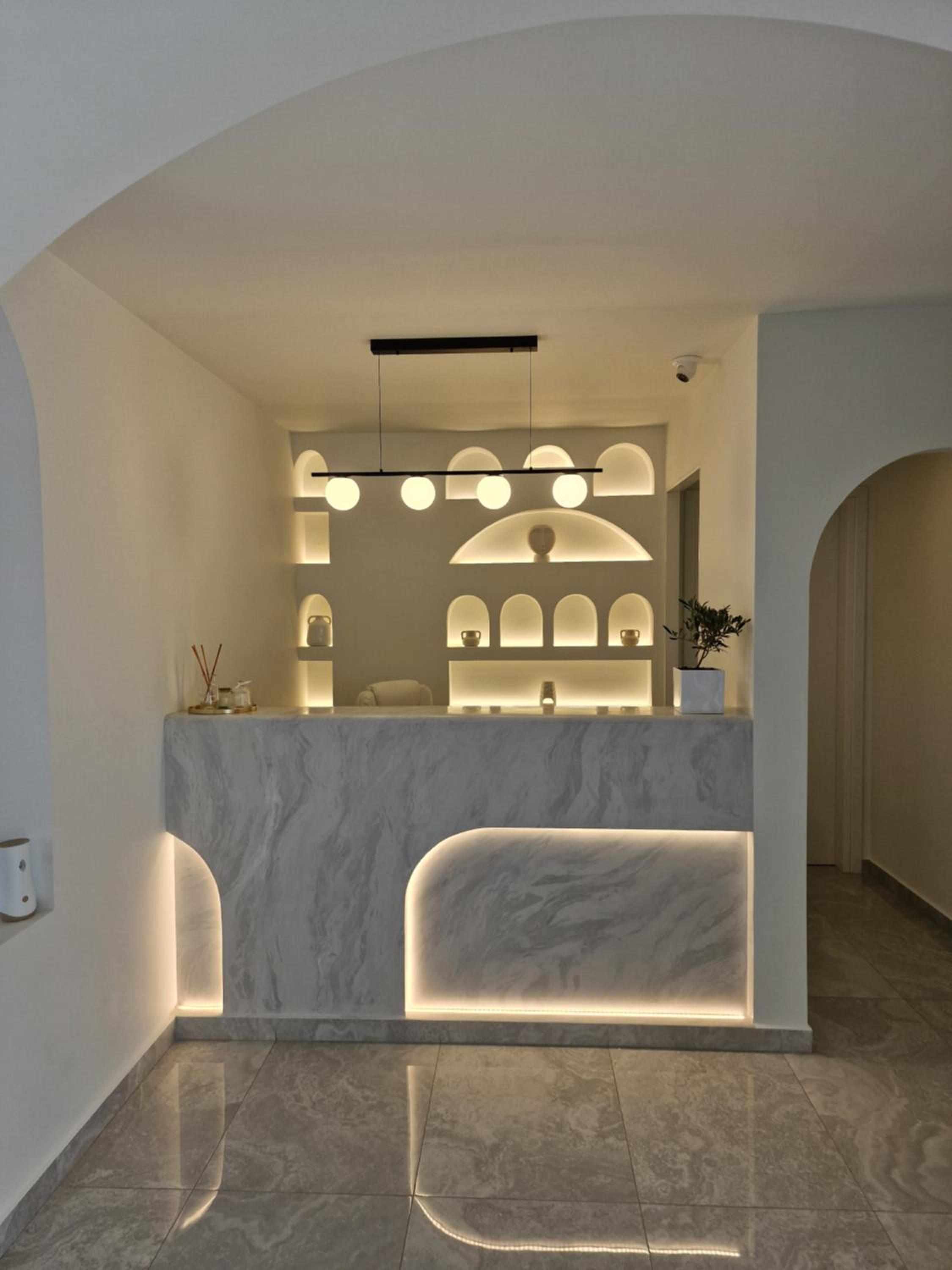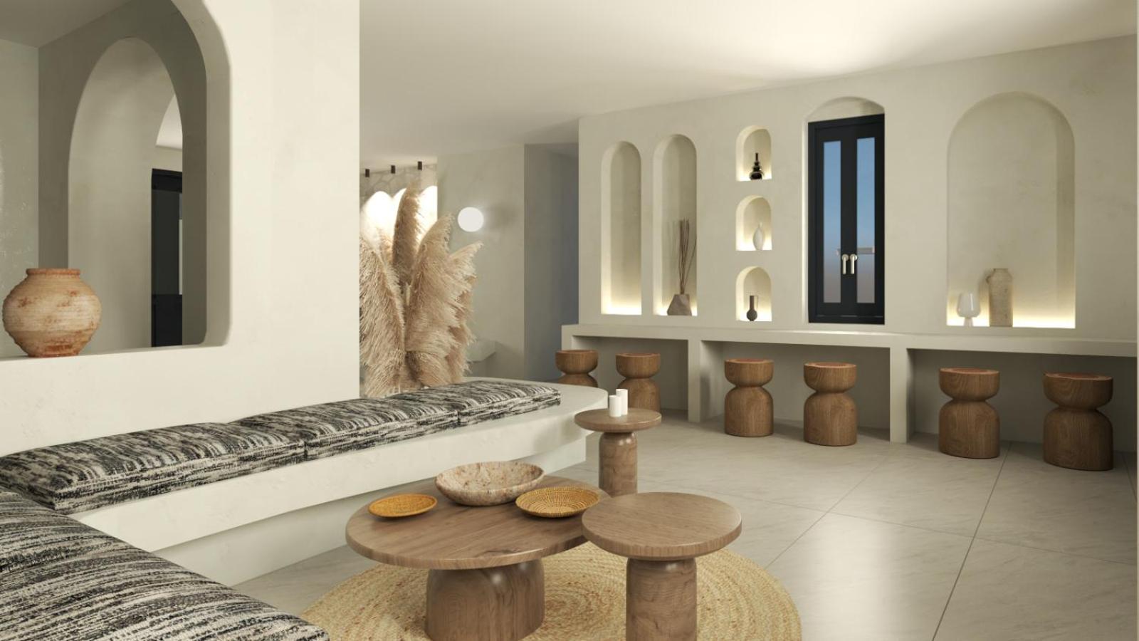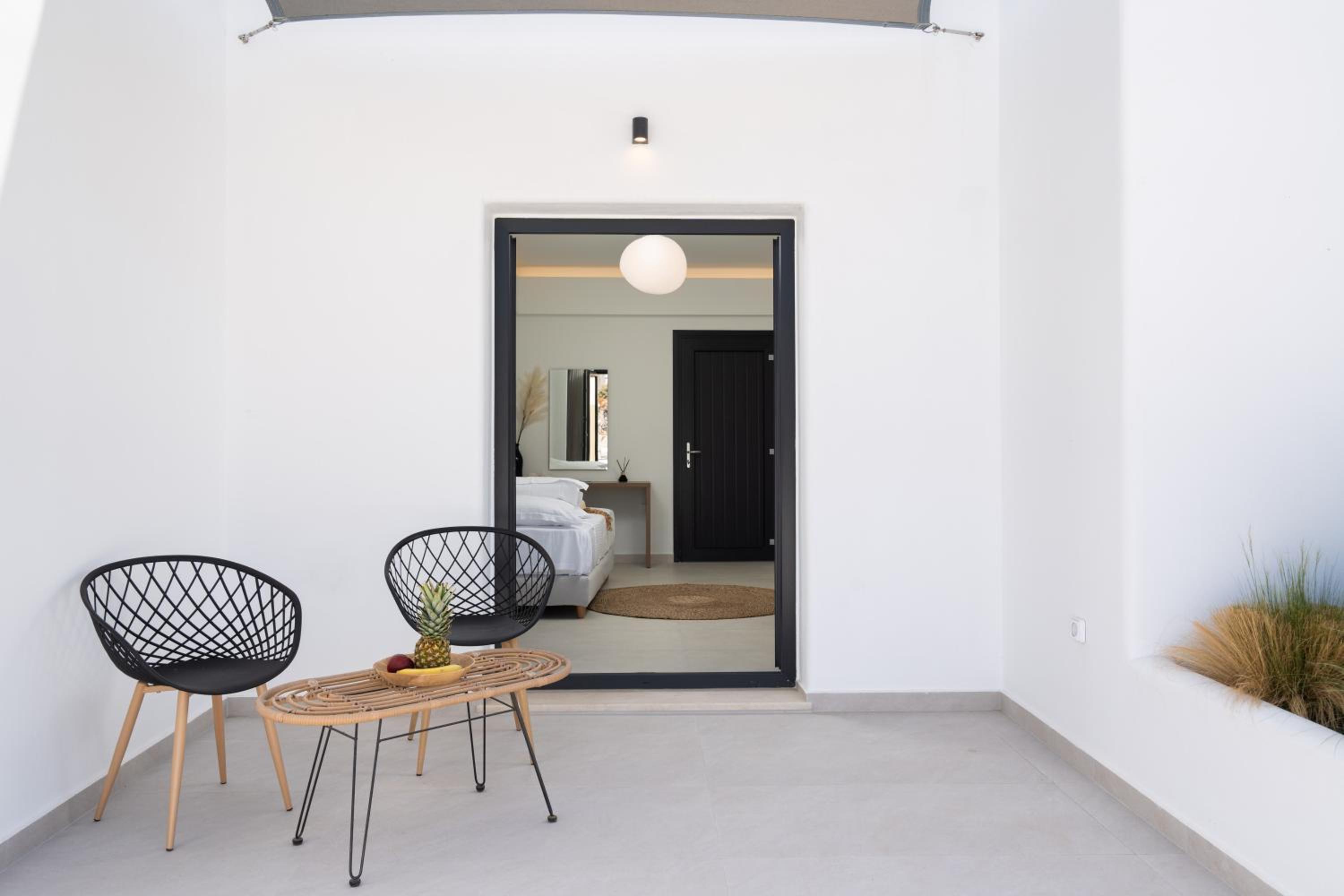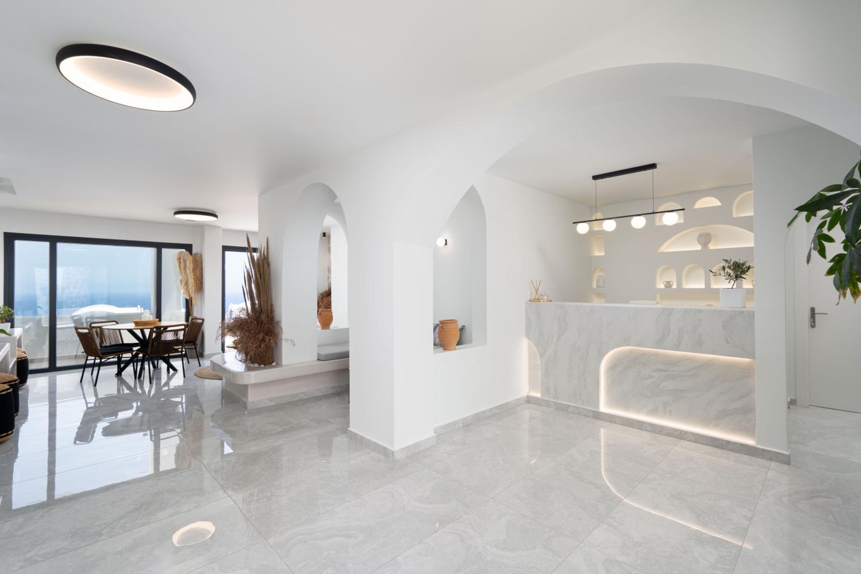Very high standard of accommodation. Pool area very well furnished and comfortable. The room was immaculate with very comfortable bed and amazing shower. The hot tub on our balcony was a lovely addition and always at the perfect temperature. The staff were incredible especially Eva. She arranged a lovely surprise with my fiancé for my birthday and throughout our stay she was outstanding. She arranged our airport transfers and buggy hire. Property has a great location about a ten minute walk to the center of Fira but lovely restaurants next to the property and a mini market across the road. There was a very reasonably priced selection of drinks at reception and Eva always had ice, glasses, snacks on hand which was a lovely touch. I cannot recommend this property highly enough. You will not be disappointed. We are already planning our return visit.
