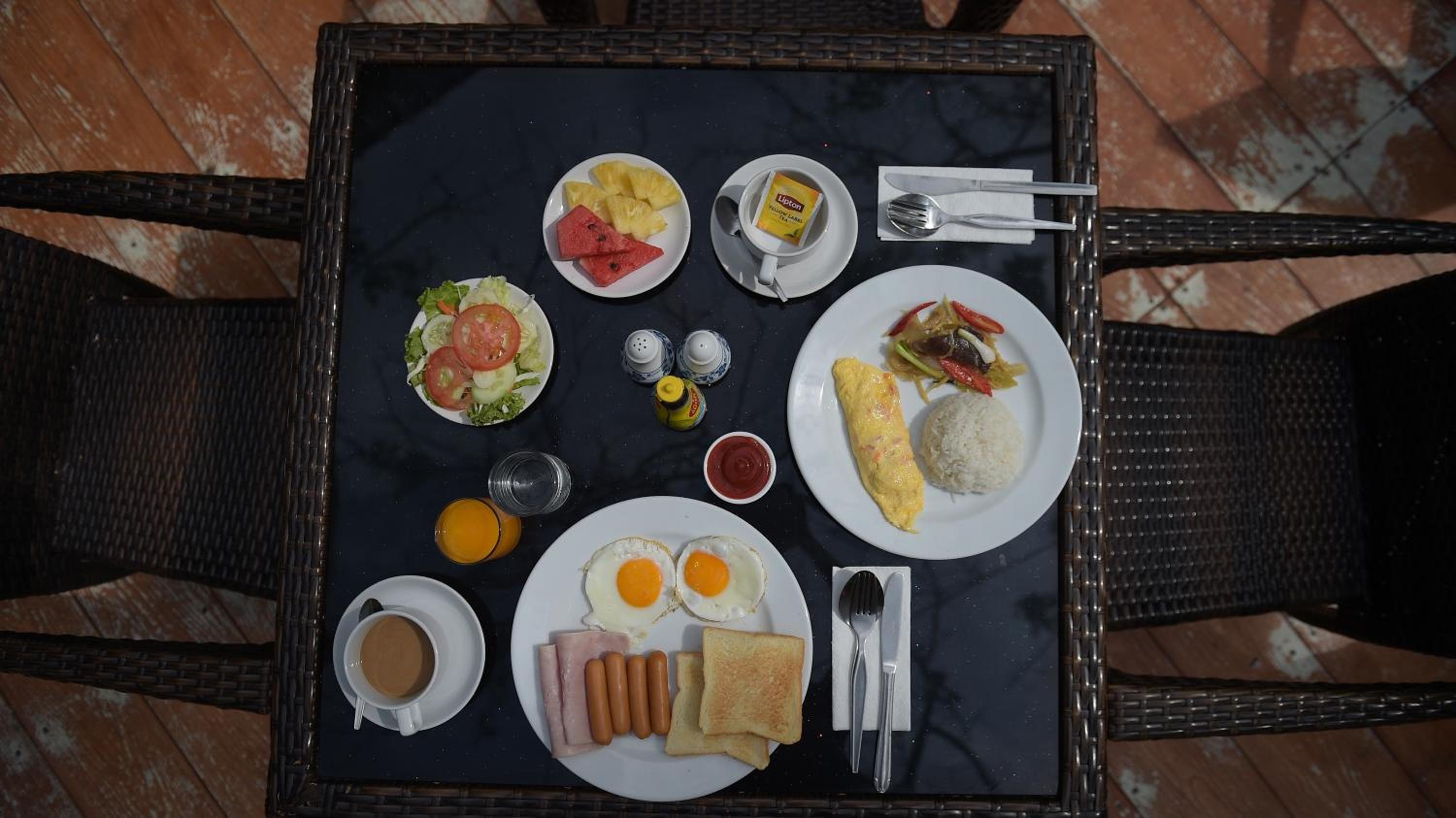 Очень много муравьев. Они ползали прямо в номере по столу, по кровати. Вздутые от воды двери и грязное зеркало. Маленькое окно в номер с выходом на общую территорию, поэтому приходилось закрывать, чтобы в номер не заглядывали, поэтому всегда без солнечного света