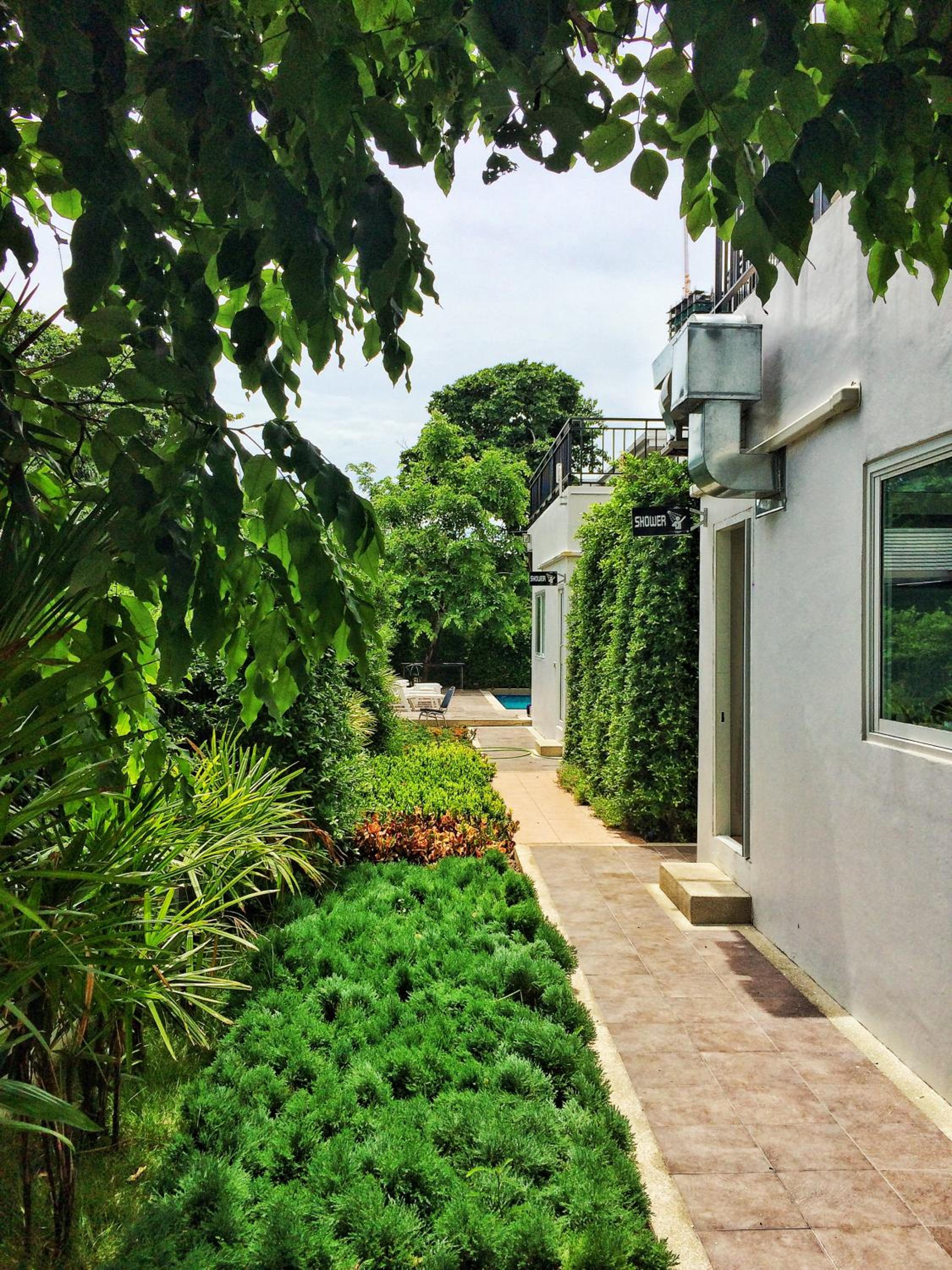 La terrasse et la verdure .literie confortable.pas loin du marché de nuit et de la plage
