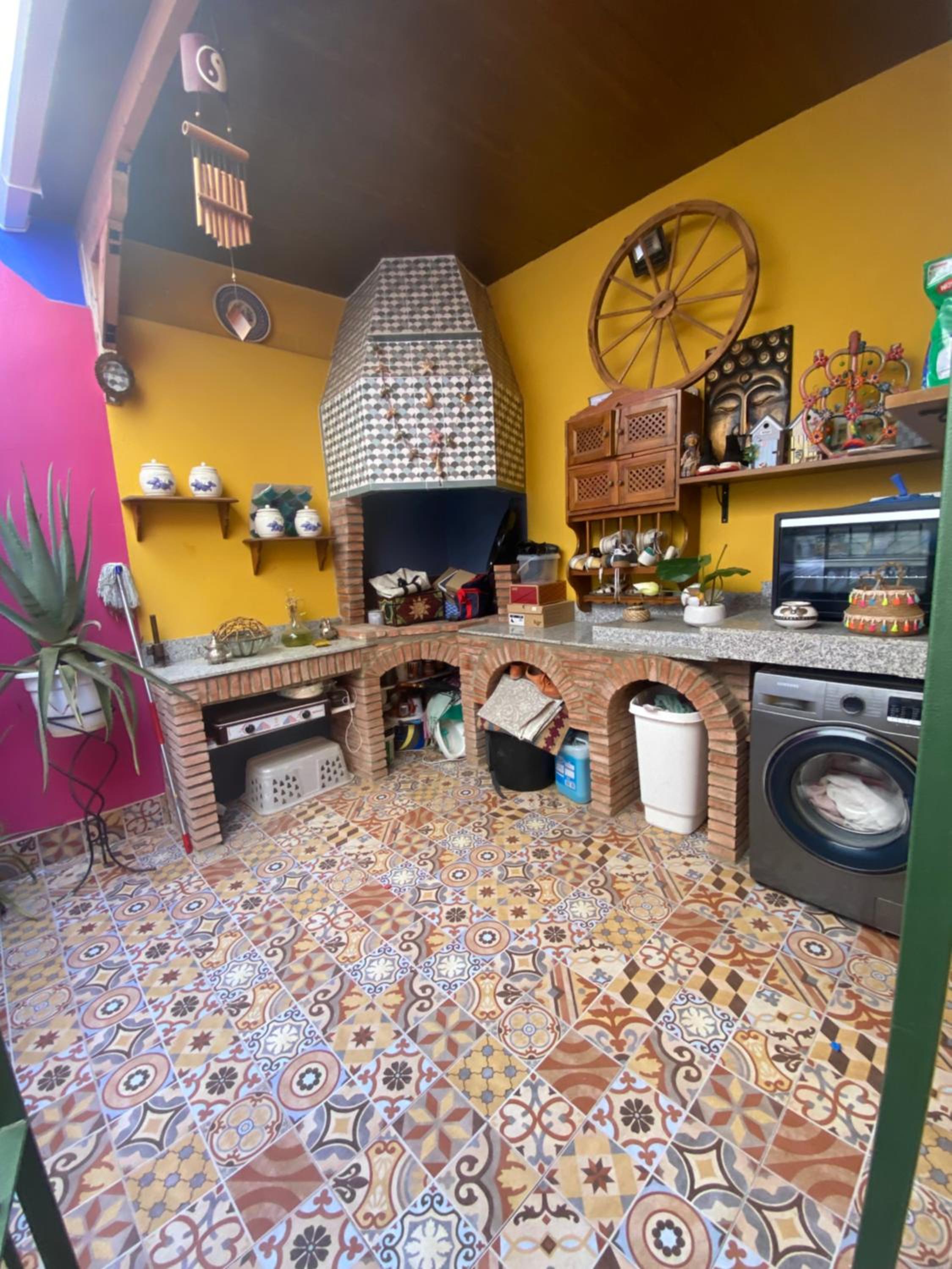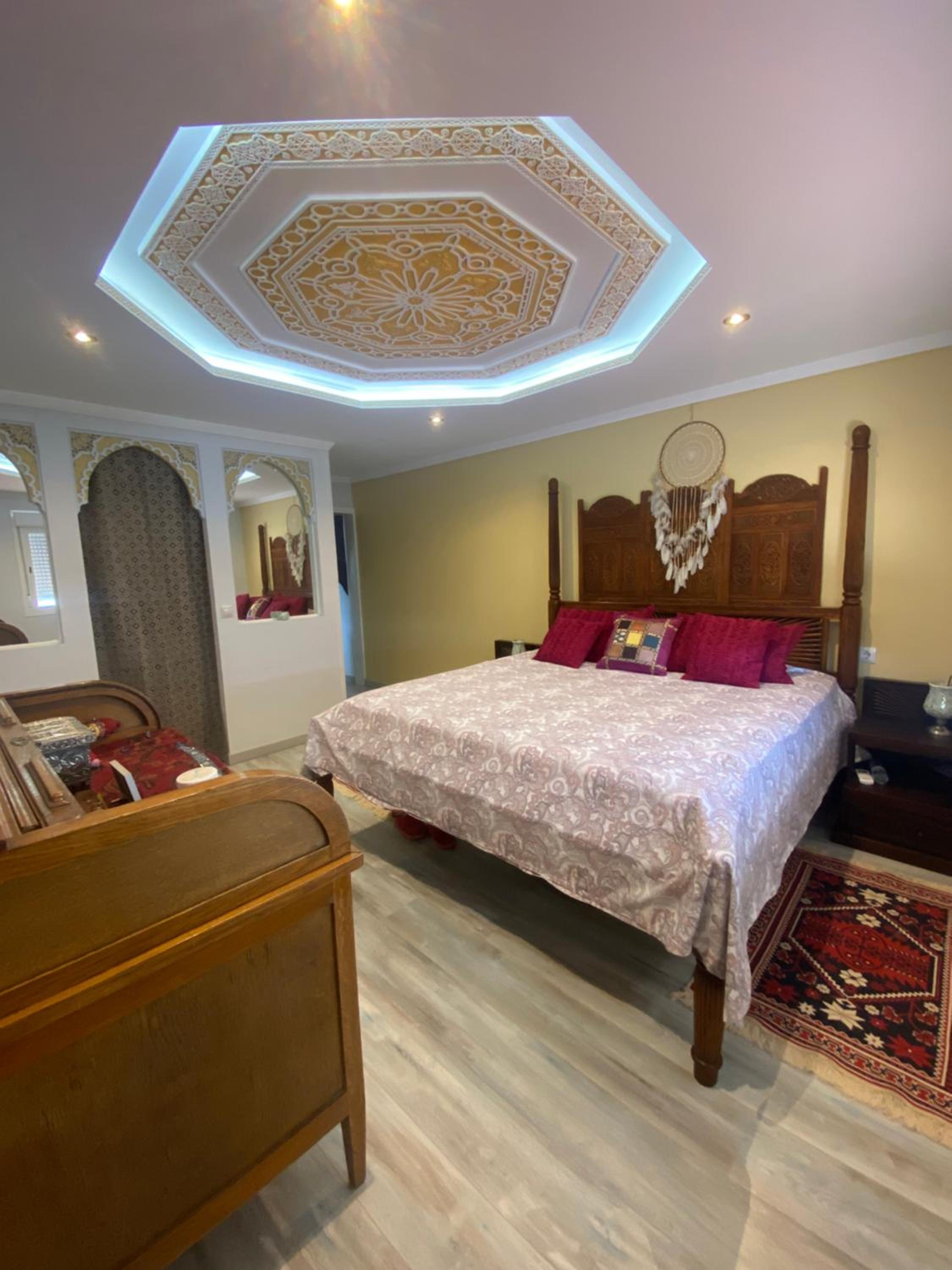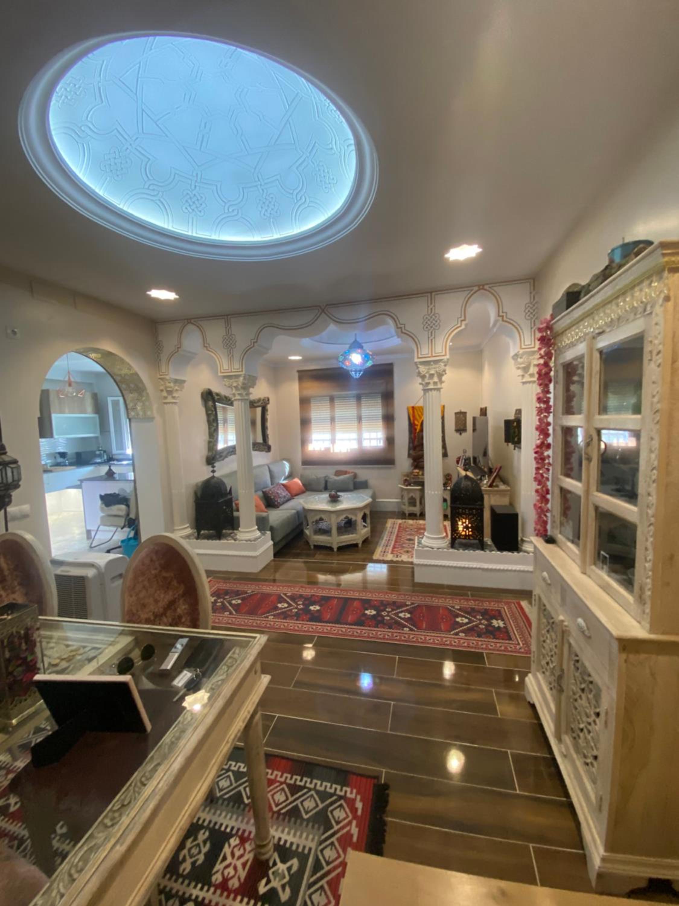 Tenían una terraza muy acogedora. Una casa que invita a la paz con su decoración y libros budistas, también contaban con decoración estilo árabe para pasar las mil y una noches descansando. La cama de la planta de arriba era enorme y muy cómoda, con baño propio. En la habitación de abajo el baño estaba fuera pero justo en frente. A nuestra disposición cocina grande con isleta para comer allí y salón con mesa comedor, Tv grande y minibiblioteca. Tranquilidad en la casa. Libros interesantes al alcance para leer. La habitación de abajo tiene Tv grande, la de arriba cuenta con un escritorio enorme estilo antiguo inspirador para amantes de la escritura. Muchos detalles en la decoración y muebles muy bonitos. Volvería a esta casa.