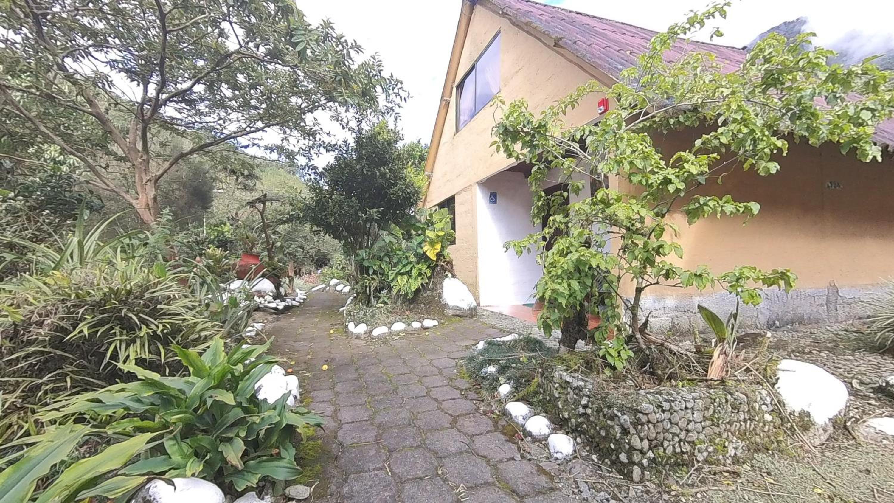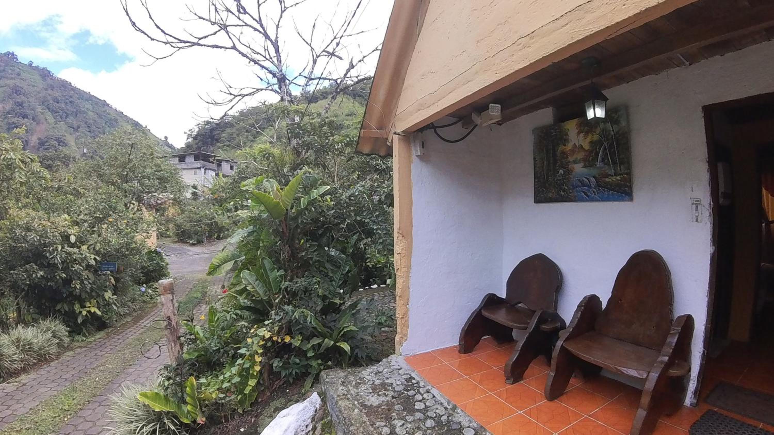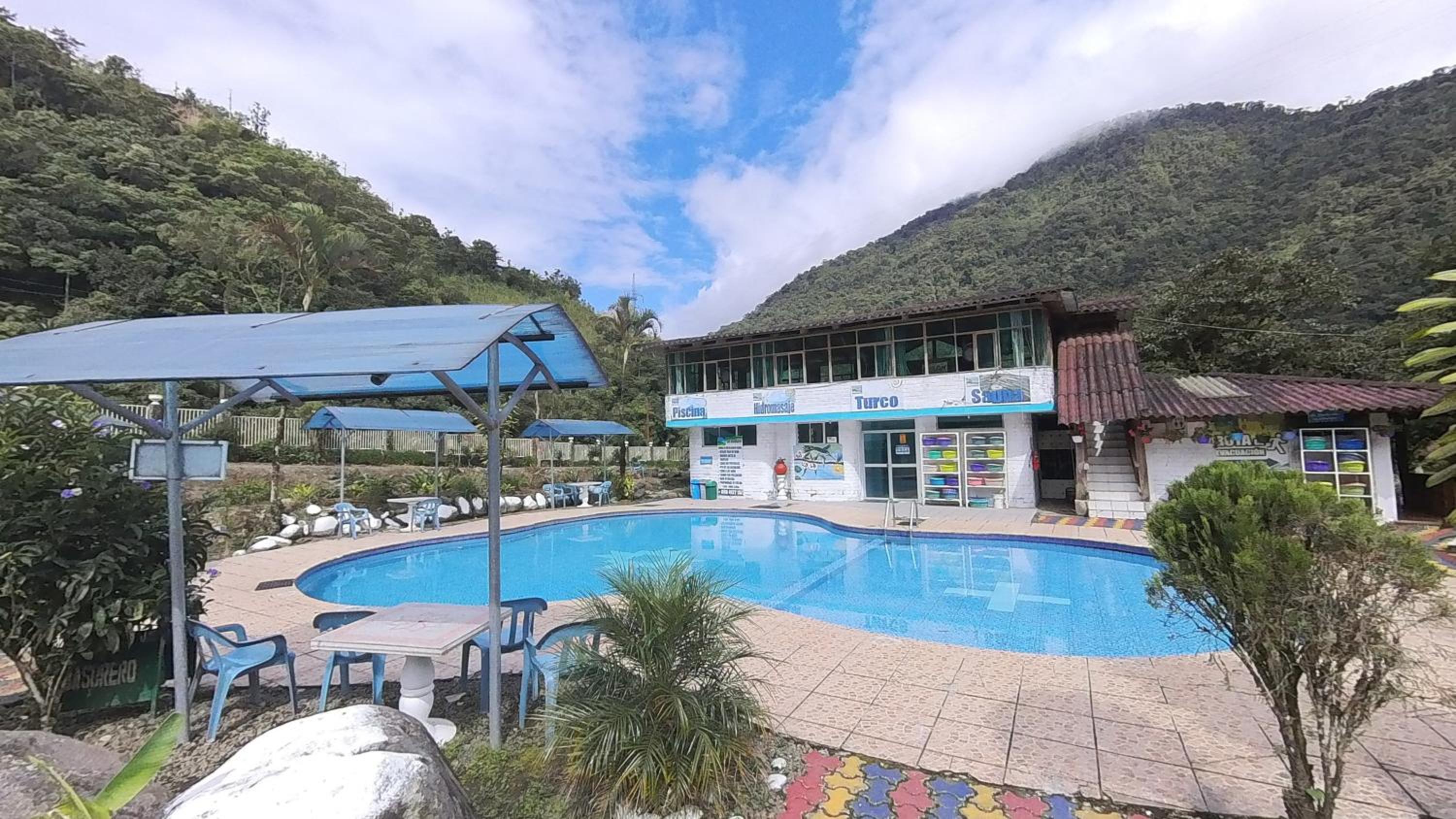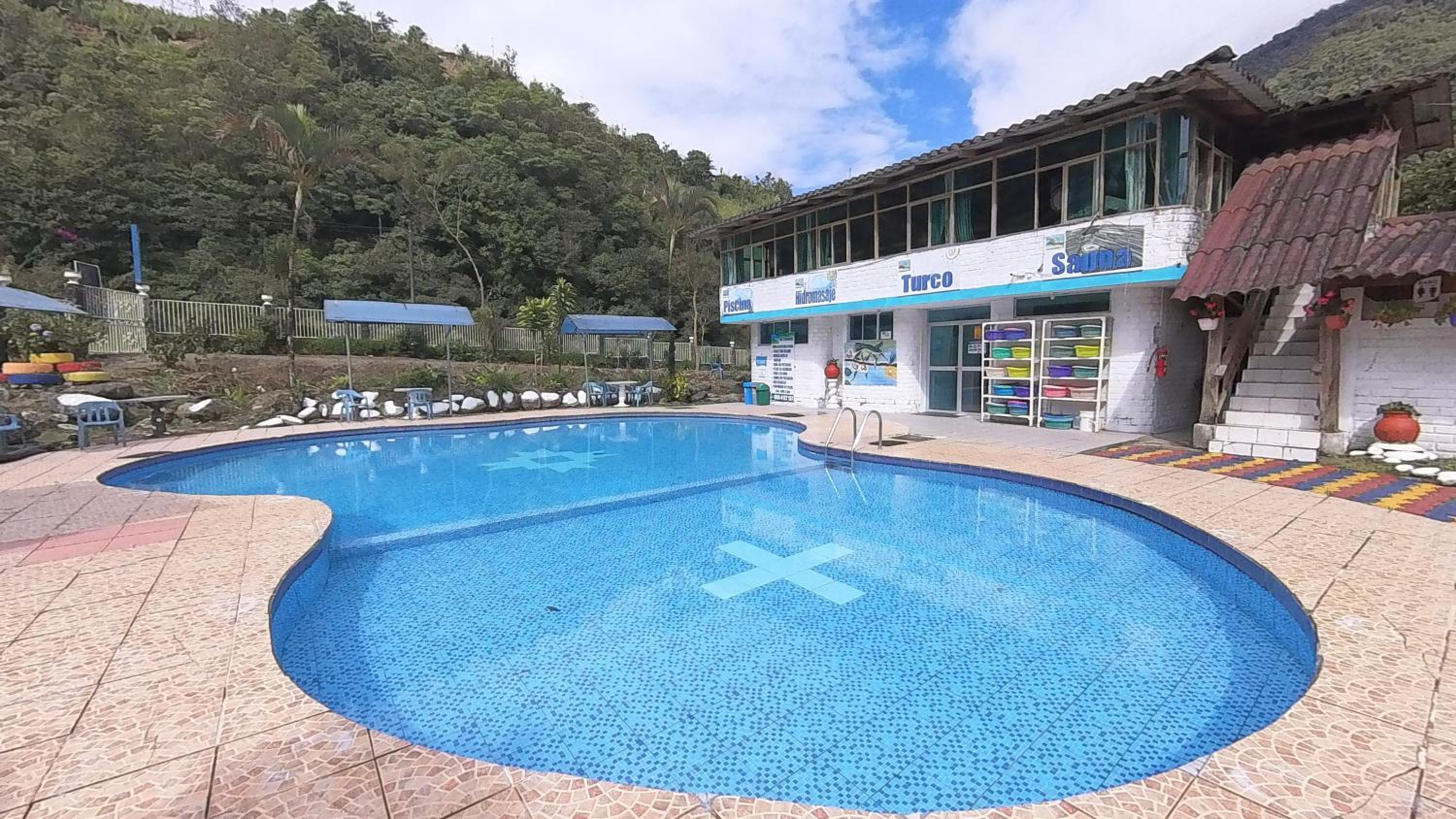 Enjoy a refreshing dip in the outdoor swimming pool or take a leisurely stroll through the lush garden at Hosteria Rio Verde.