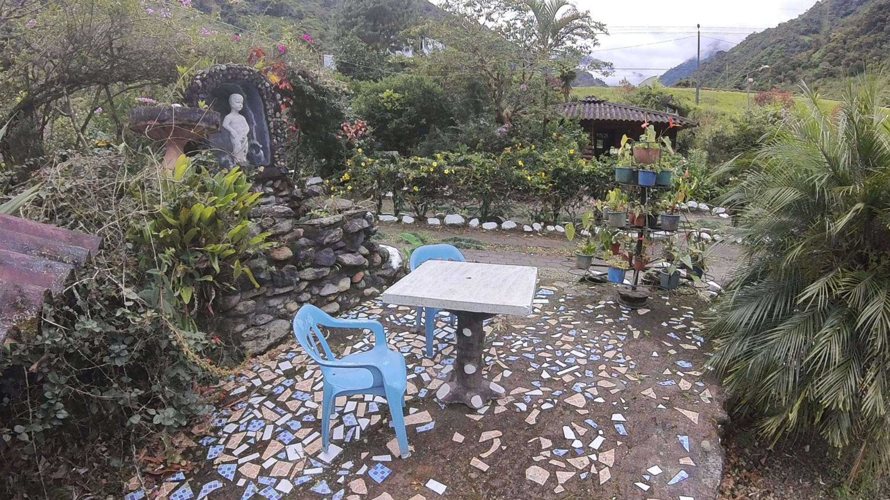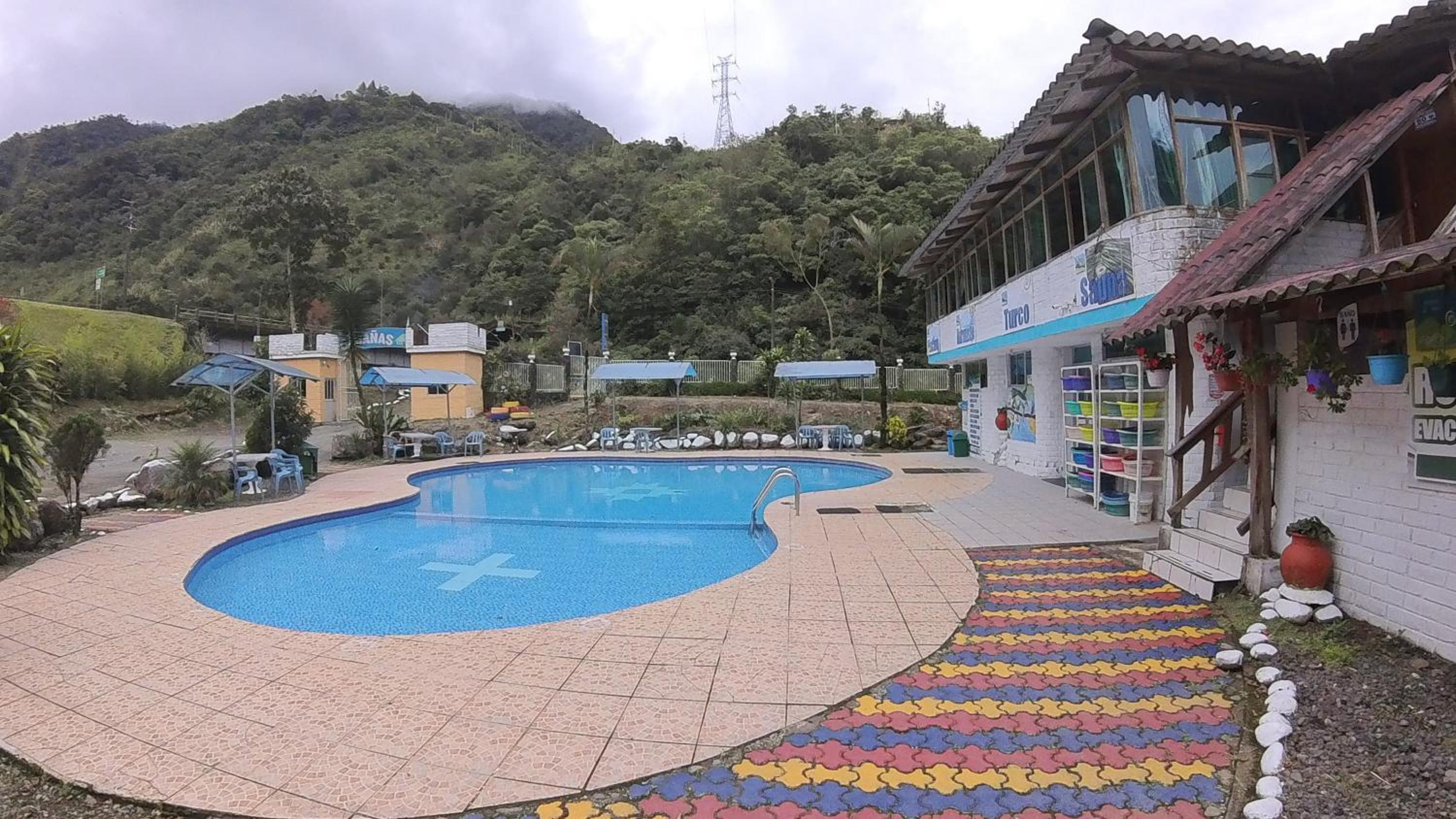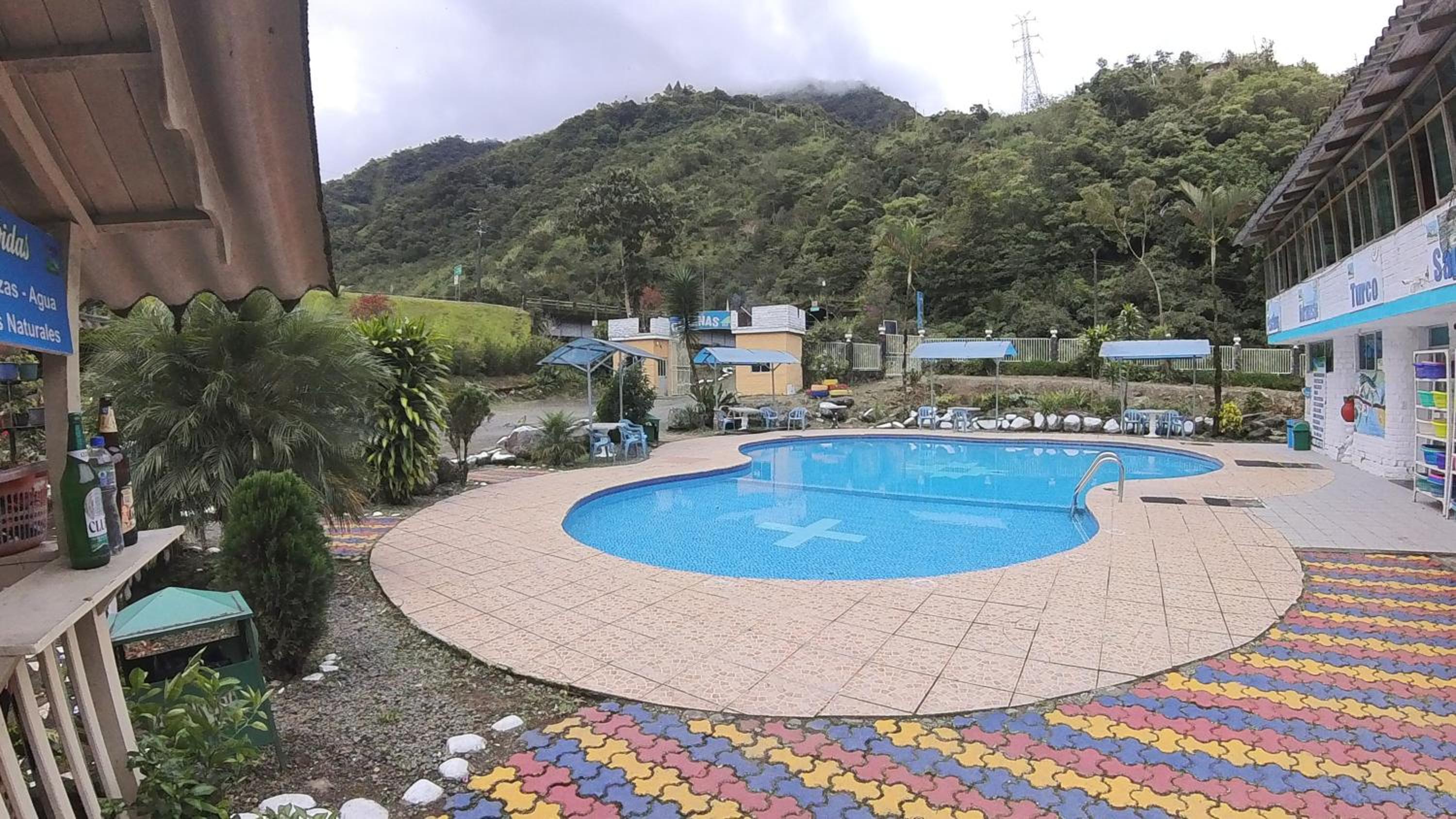 Enjoy a refreshing dip in the outdoor swimming pool or take a leisurely stroll through the lush garden at Hosteria Rio Verde.