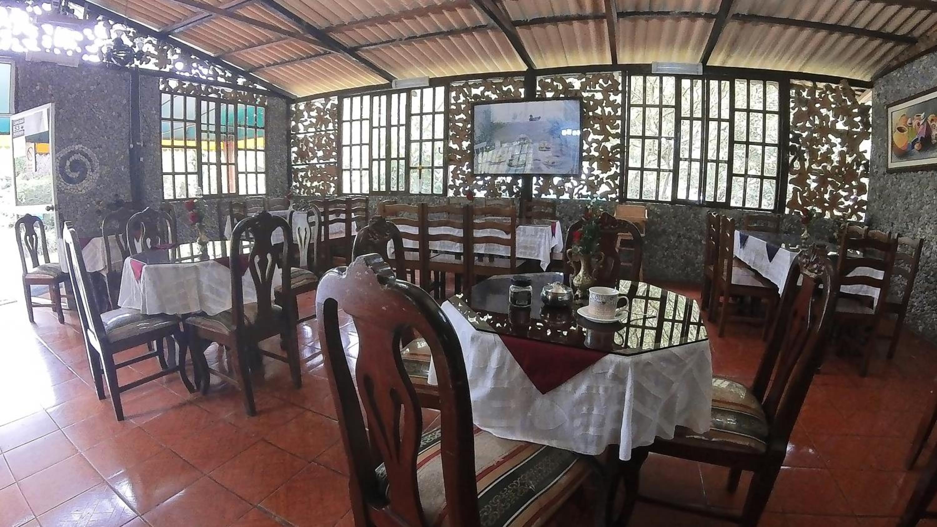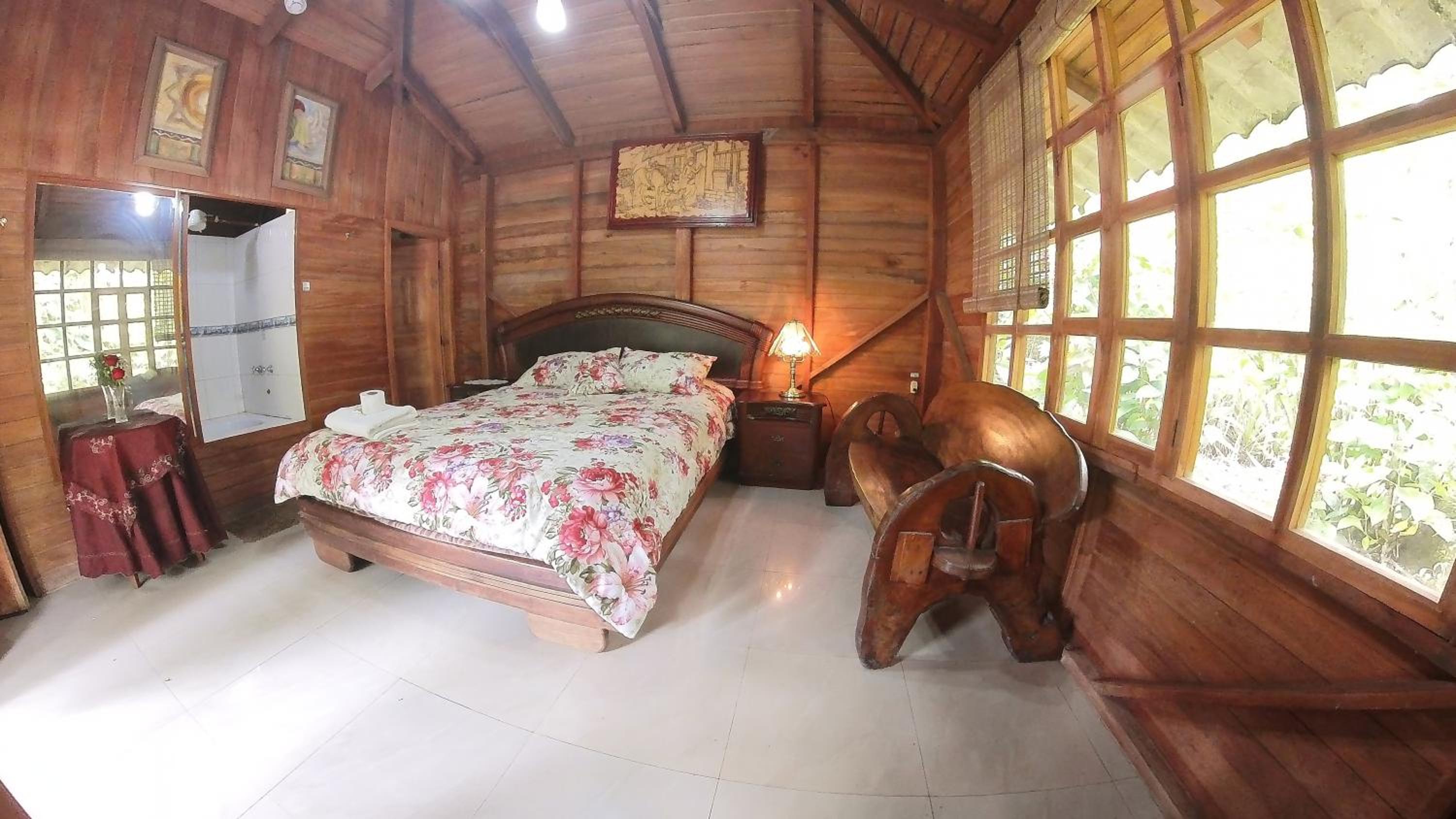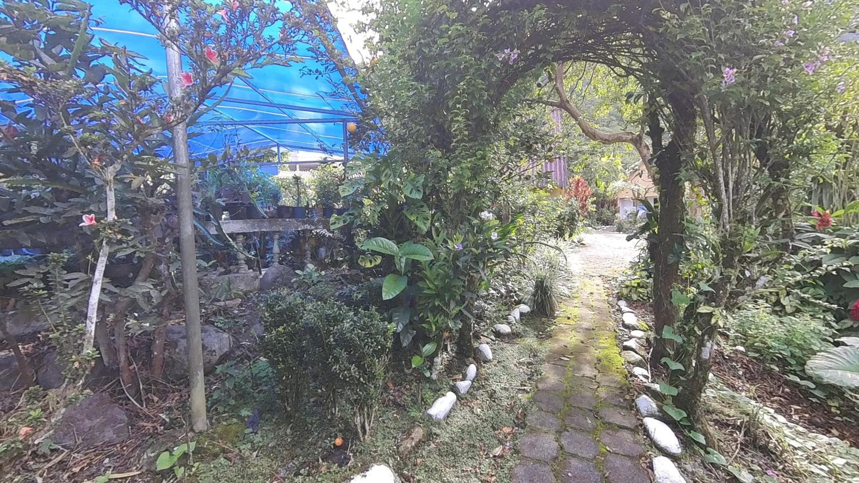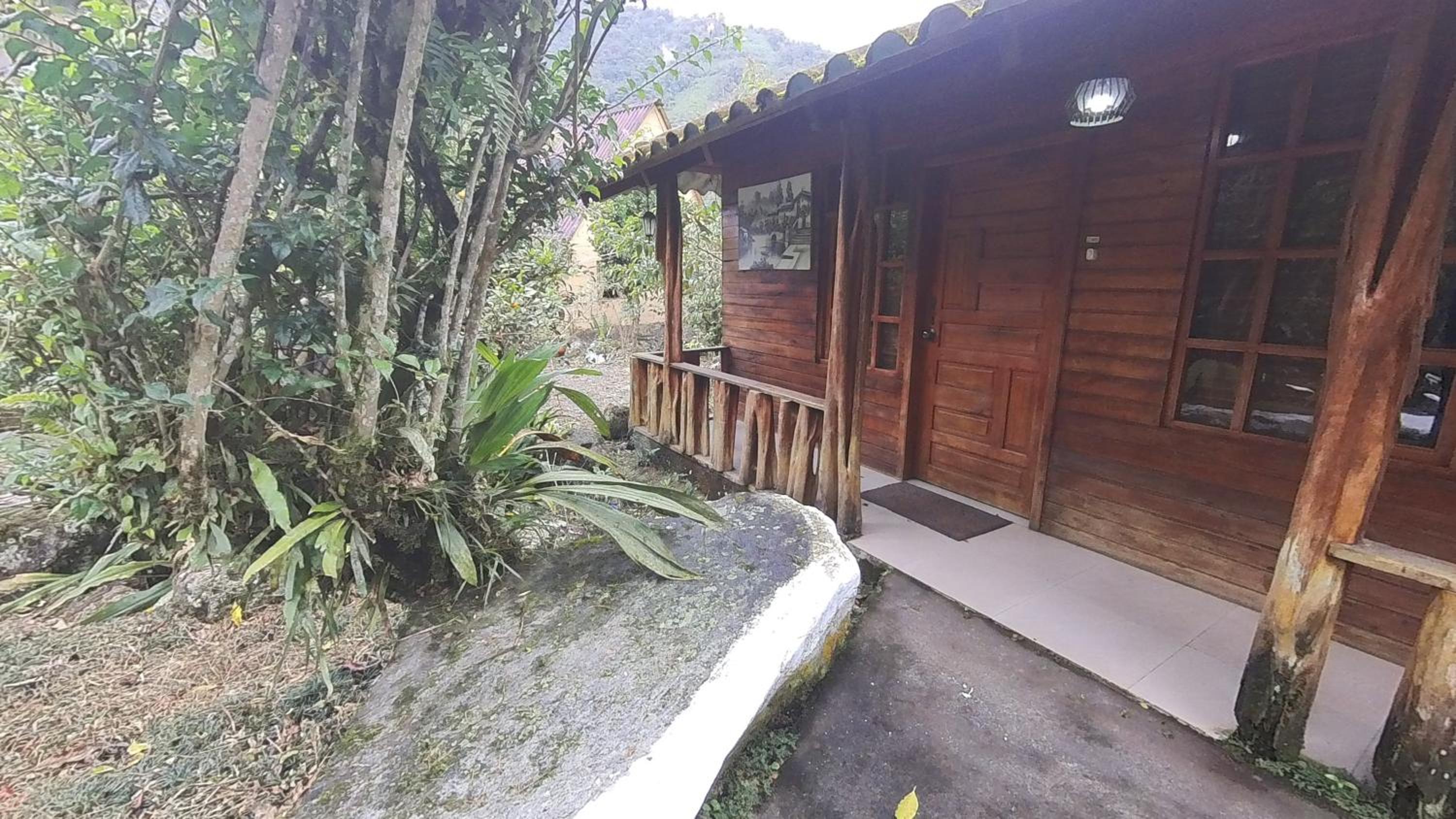 Enjoy a refreshing dip in the outdoor swimming pool or take a leisurely stroll through the lush garden at Hosteria Rio Verde.