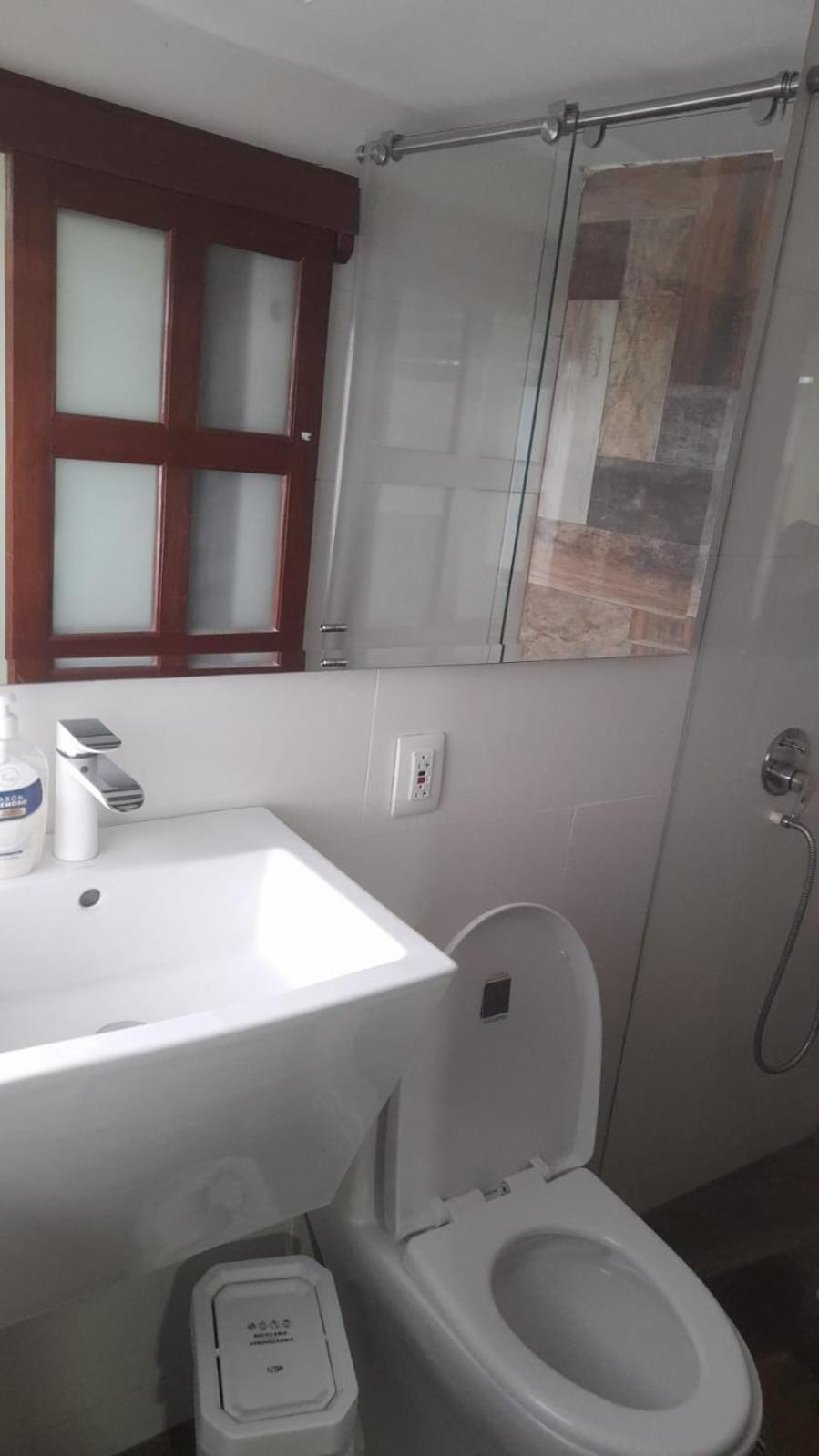 Very small bathroom, nothing to hang up the towl.