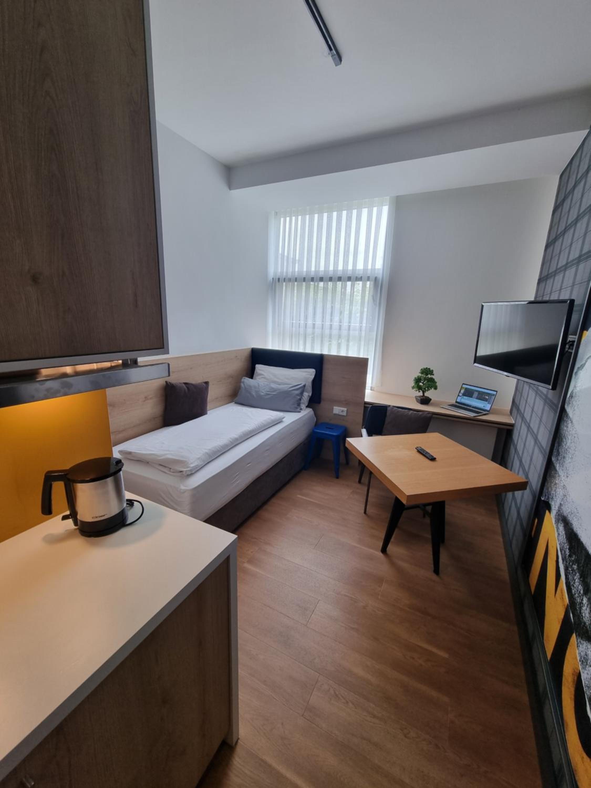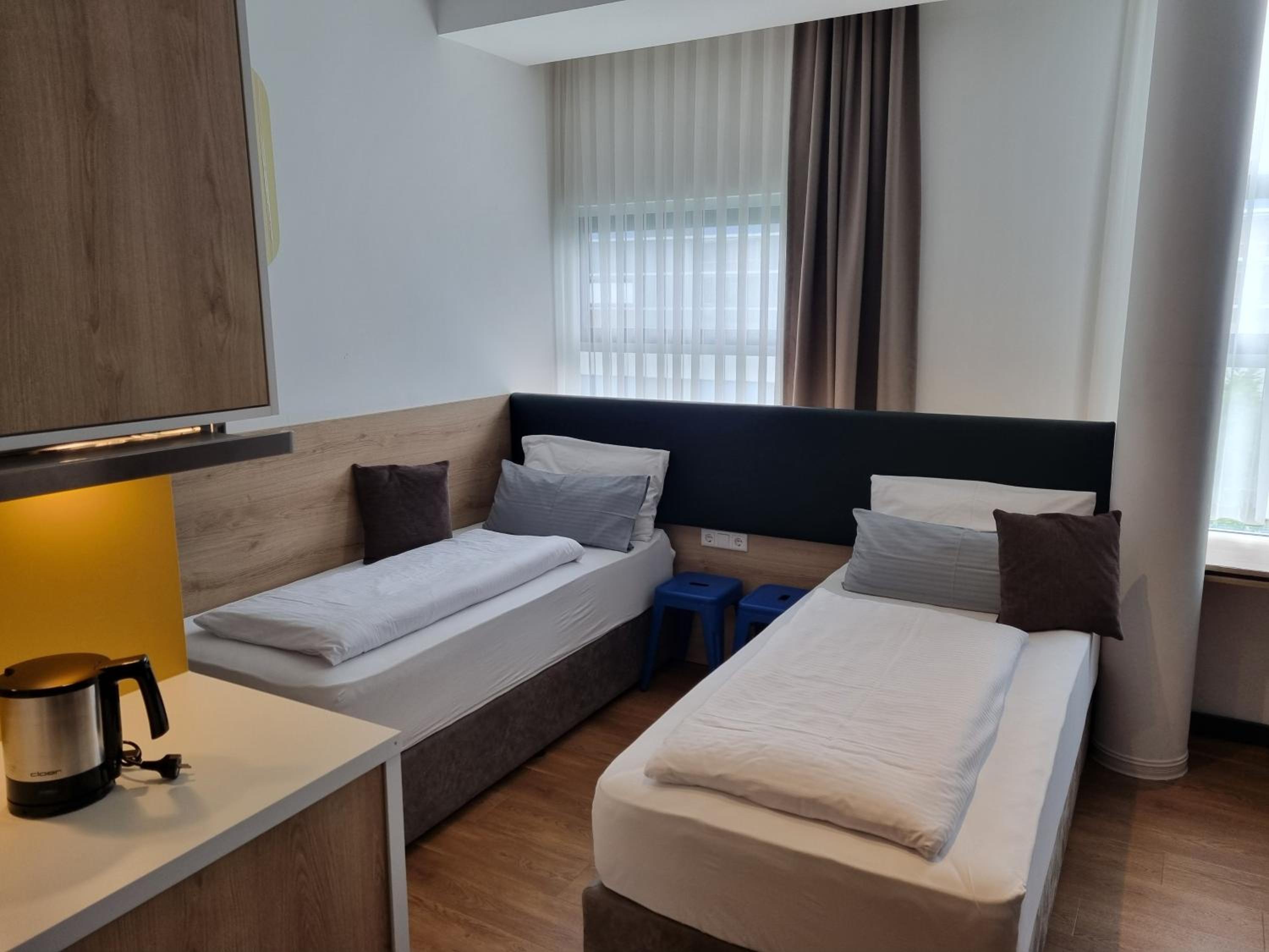 Номер обычный, чистый, до аэропорта ехать на автобусе 5-7 минут и потом поезд тоже минут 10. Очень бюджетно и быстро.